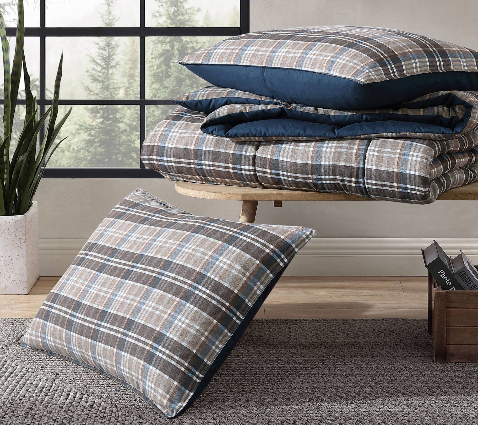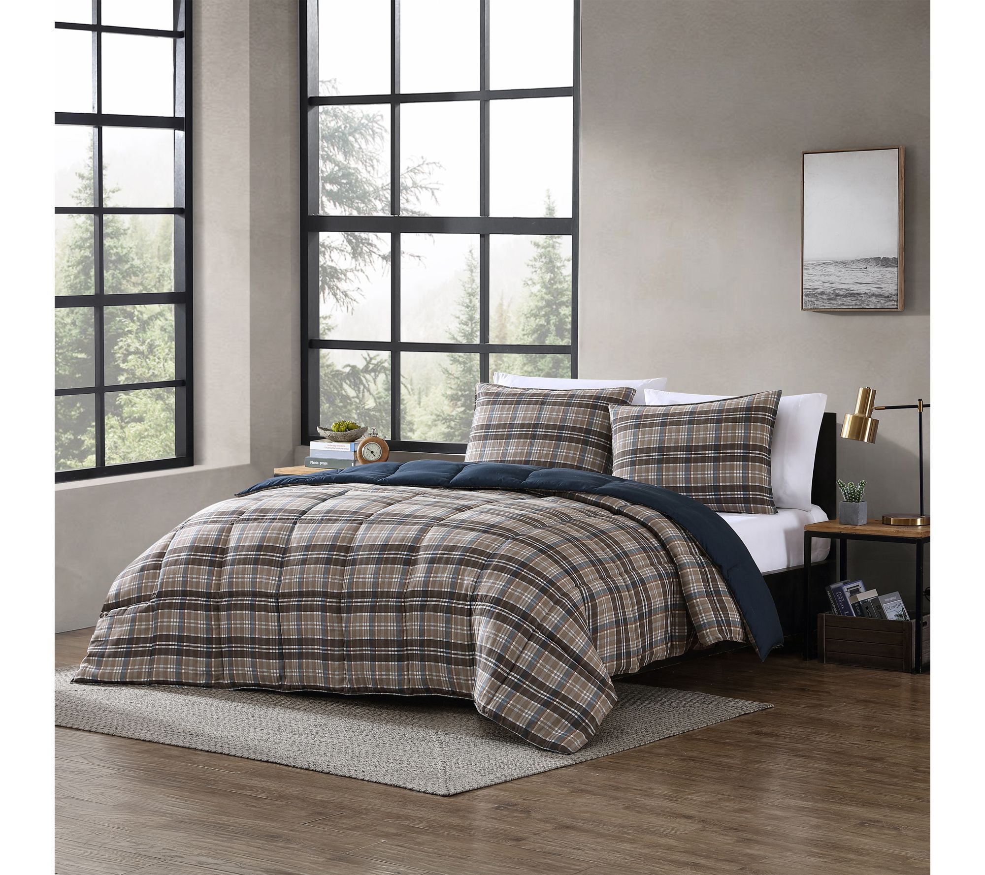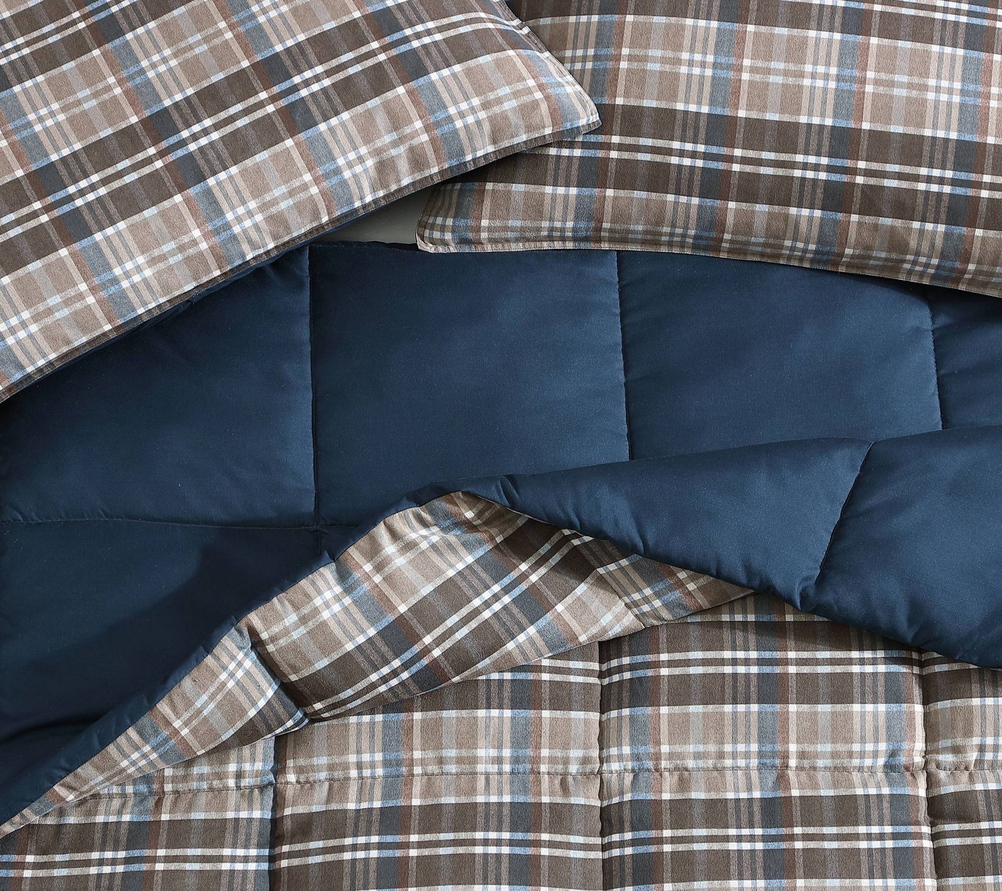 Lazy Sunday mornings just got cozier with this Eddie Bauer plaid comforter set. The buttery soft micro-suede front and plush down alternative fill create a relaxing space for you to unwind, read, or binge your favorite series. One matching sham completes the polished look in your bedroom, bringing warmth and classic style. From Eddie Bauer.