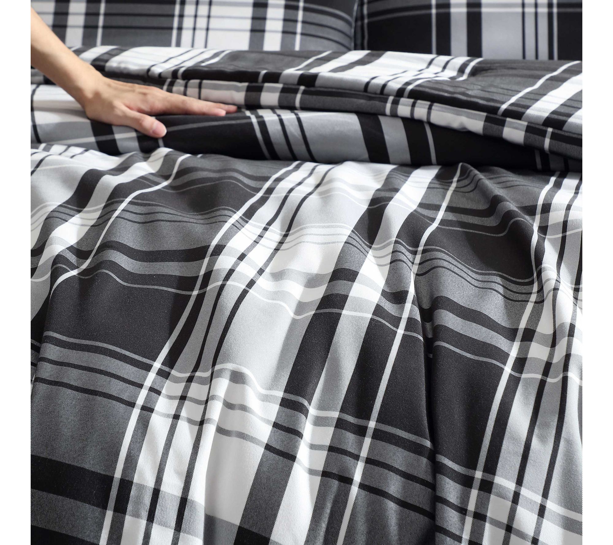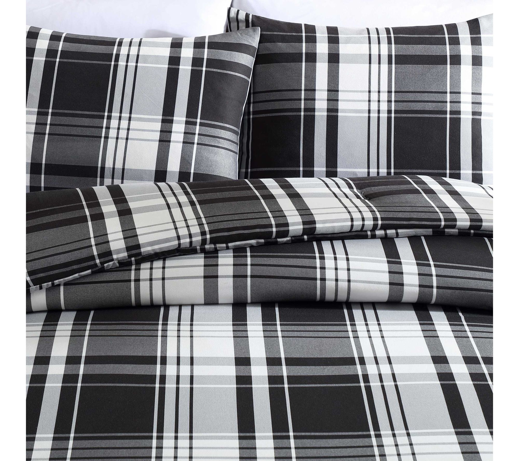 Unwind after a long day with the inviting warmth of this comforter set. The bold black and white plaid adds a touch of cabin-inspired charm, while the plush down alternative fill envelops you in lasting coziness. Transition from chilly nights to mornings filled with comfort, and easily refresh your space thanks to simple machine care. From Eddie Bauer.
