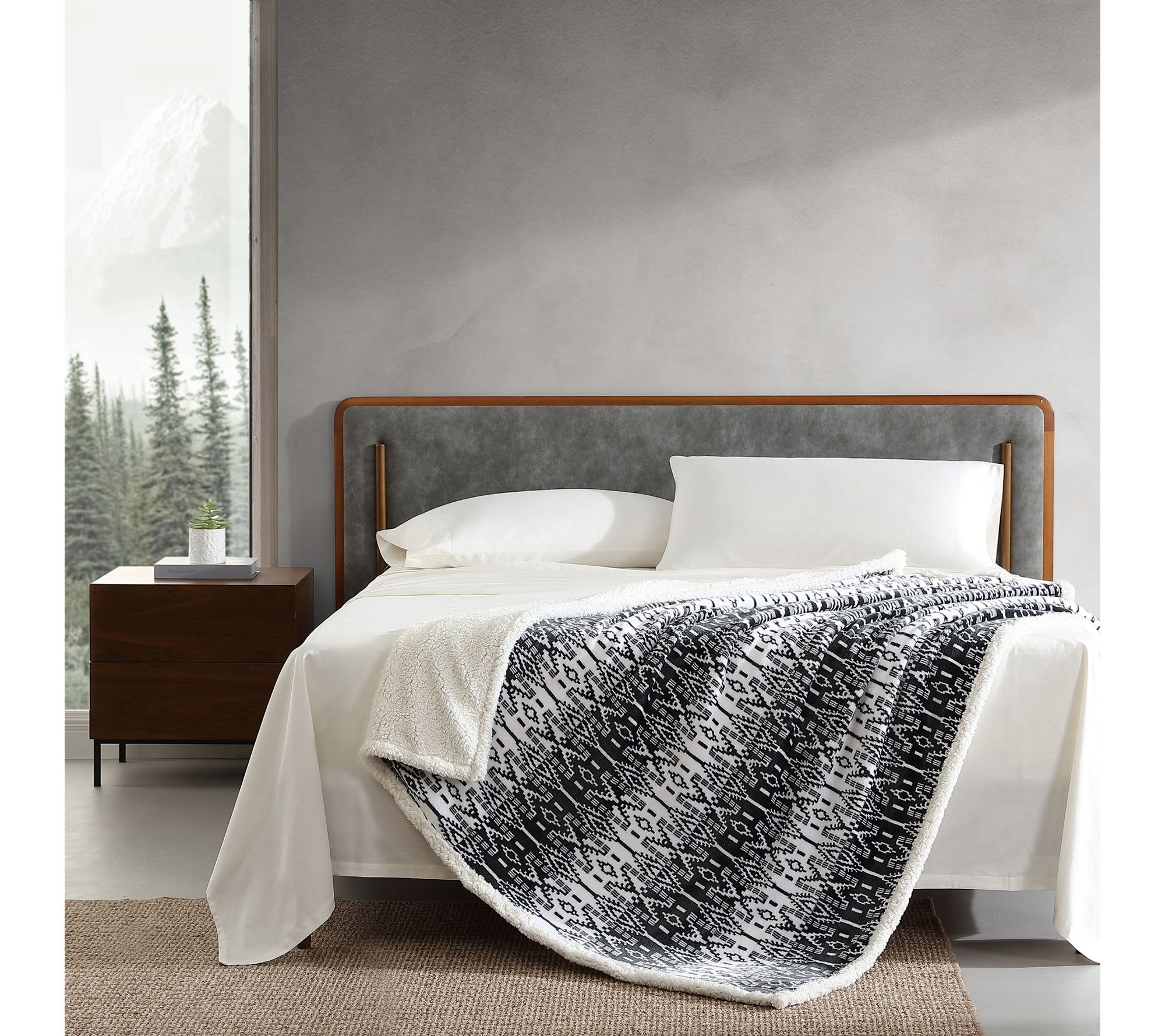 Whether you're curling up on the couch for movie night or adding an extra layer of comfort to your bed, this plush-fleece throw delivers warmth and softness with a timeless Eddie Bauer design. Its cozy faux shearling reverse invites you to relax, while the convenient size makes it ideal for travel and gifting occasions. From Eddie Bauer.