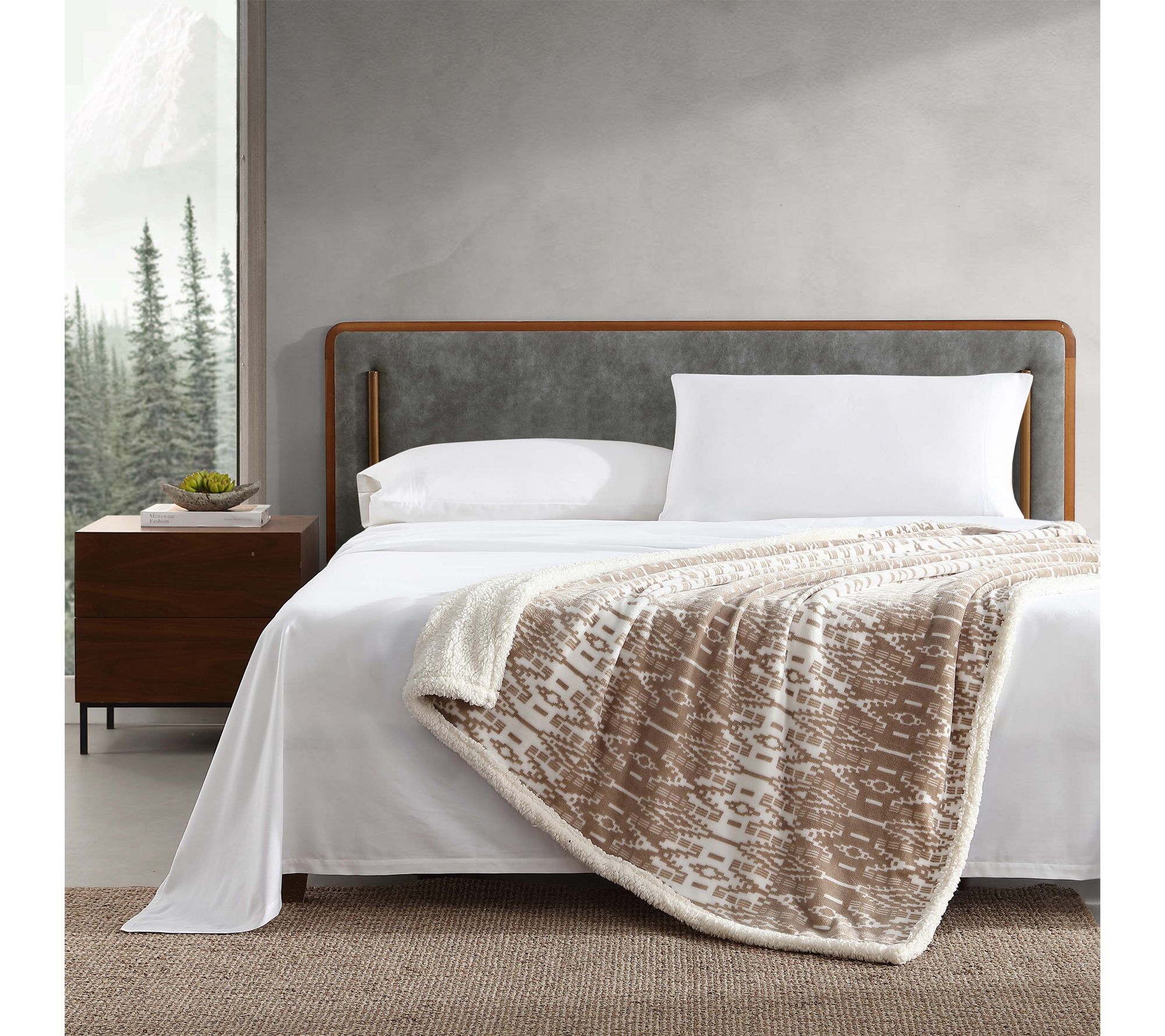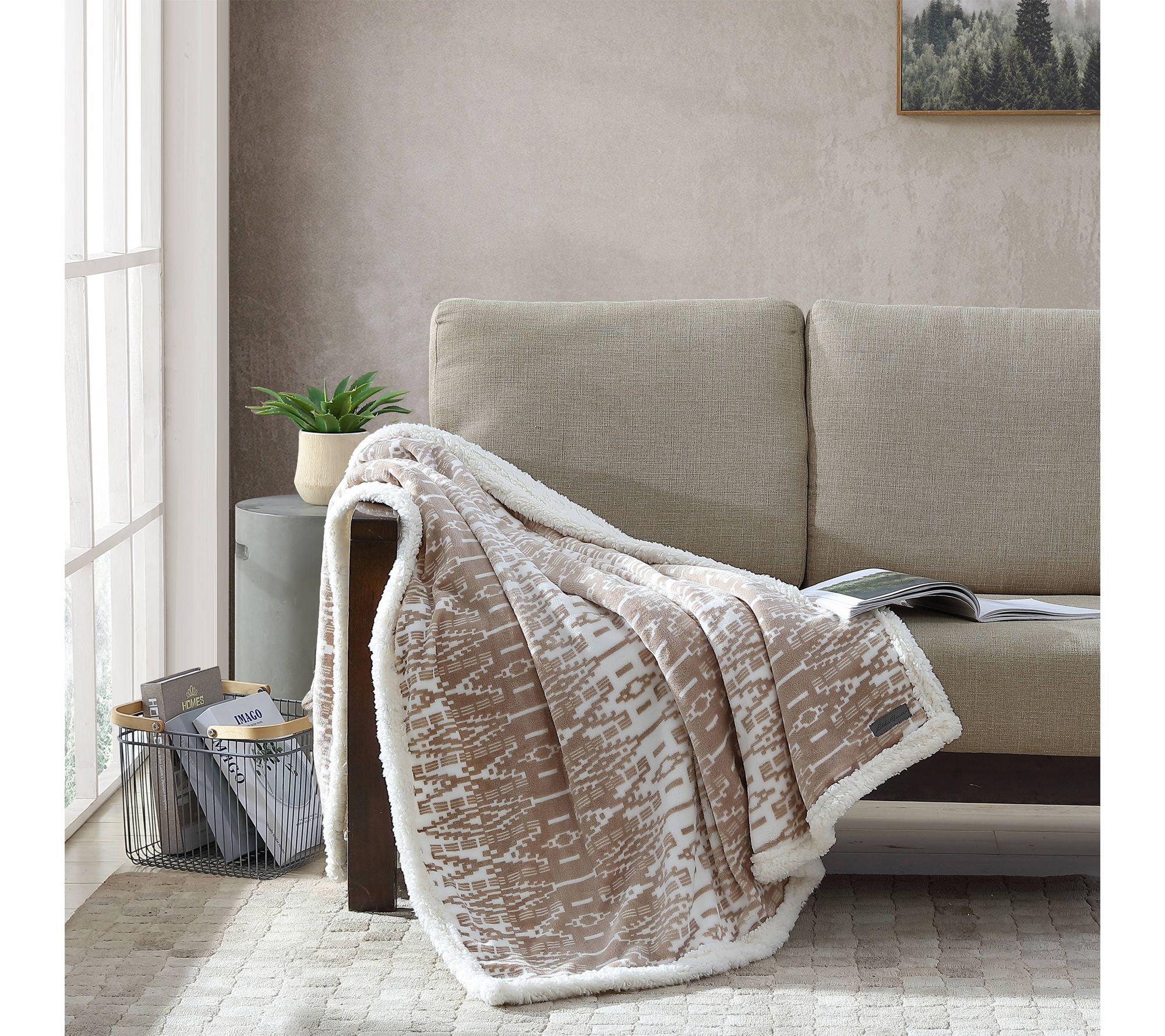 Create a cozy haven on your sofa or bed with this plush throw, designed to deliver warmth wherever you go. The inviting fleece reverses to a super-soft faux shearling popcorn texture, wrapping you in comfort as you read, relax, or sneak in a nap. From Eddie Bauer.