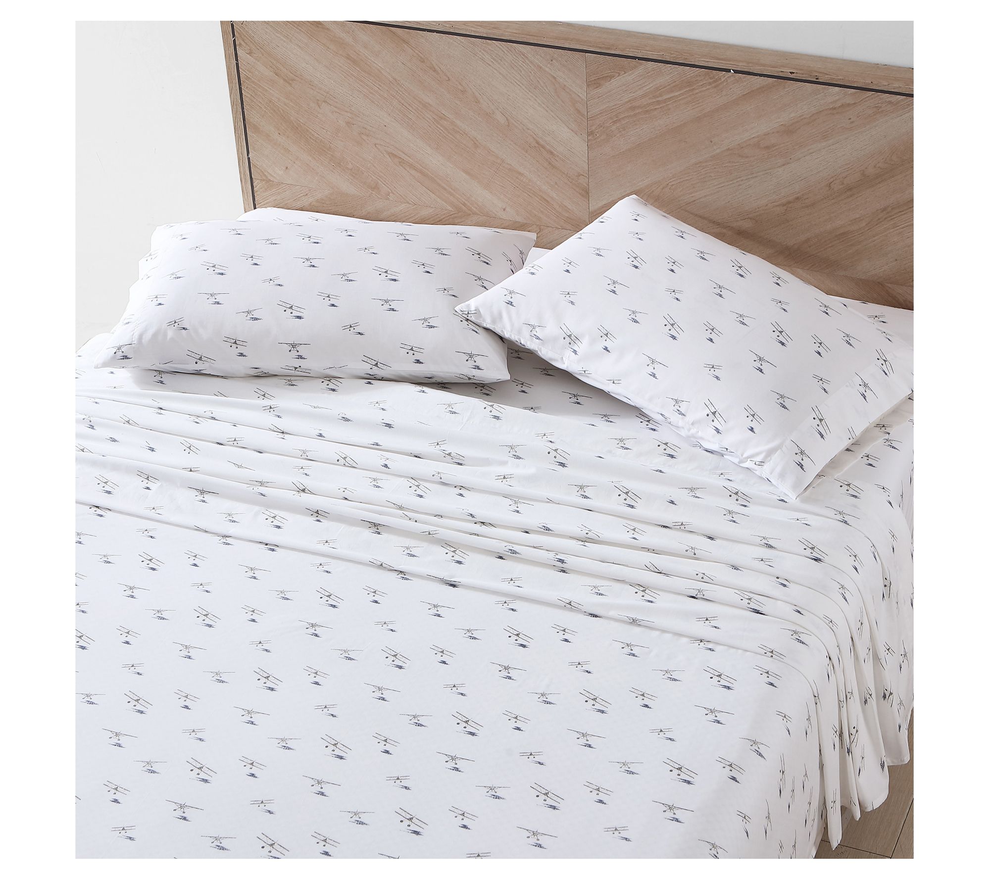 Transform your sleeping space with the Eddie Bauer Sea Planes full sheet set. Crafted from 100% cotton, this set provides a crisp and breathable feel, perfect for a restful night's sleep. Picture yourself sinking into the softness of these sheets after a long day. Their unified design enhances any bedroom decor effortlessly. From Eddie Bauer.