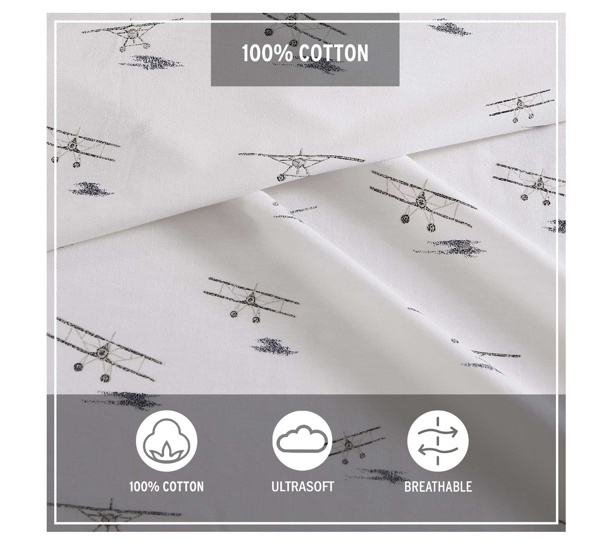 Breathe new life into your bedroom with this delightful sheet set that features a playful sea planes design from Eddie Bauer. Crafted with crisp cotton percale, each piece in this set is designed to complement your decor's color palette, providing a cohesive and welcoming look. The convenience of machine-washable material ensures easy upkeep, making this set both attractive and practical. From Eddie Bauer.