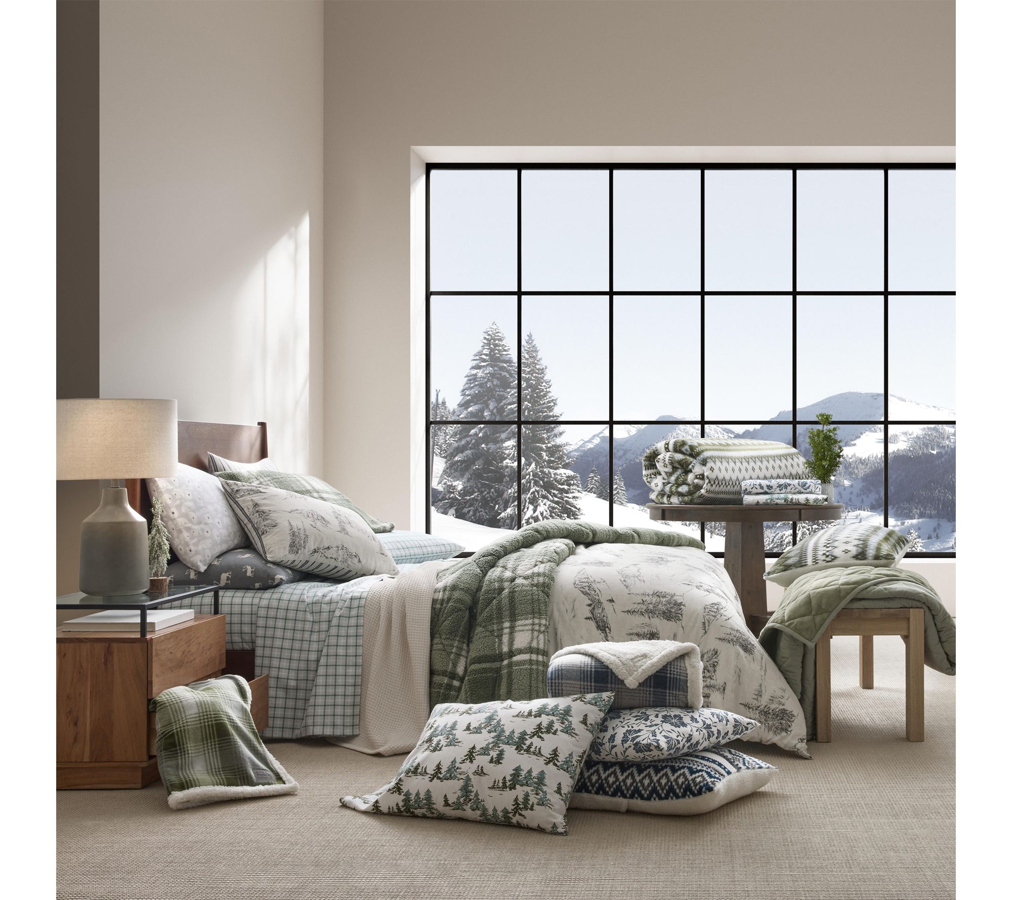 Ease into the luxurious comfort of this King comforter set, designed to envelop you in warmth and soft texture all season long. Its plush micro-suede in Sherwood green reverses to creamy sherpa, creating an inviting haven that calls you to relax and unwind after a long day. Ideal for adding cozy cabin-inspired charm to your bedroom sanctuary. From Eddie Bauer.