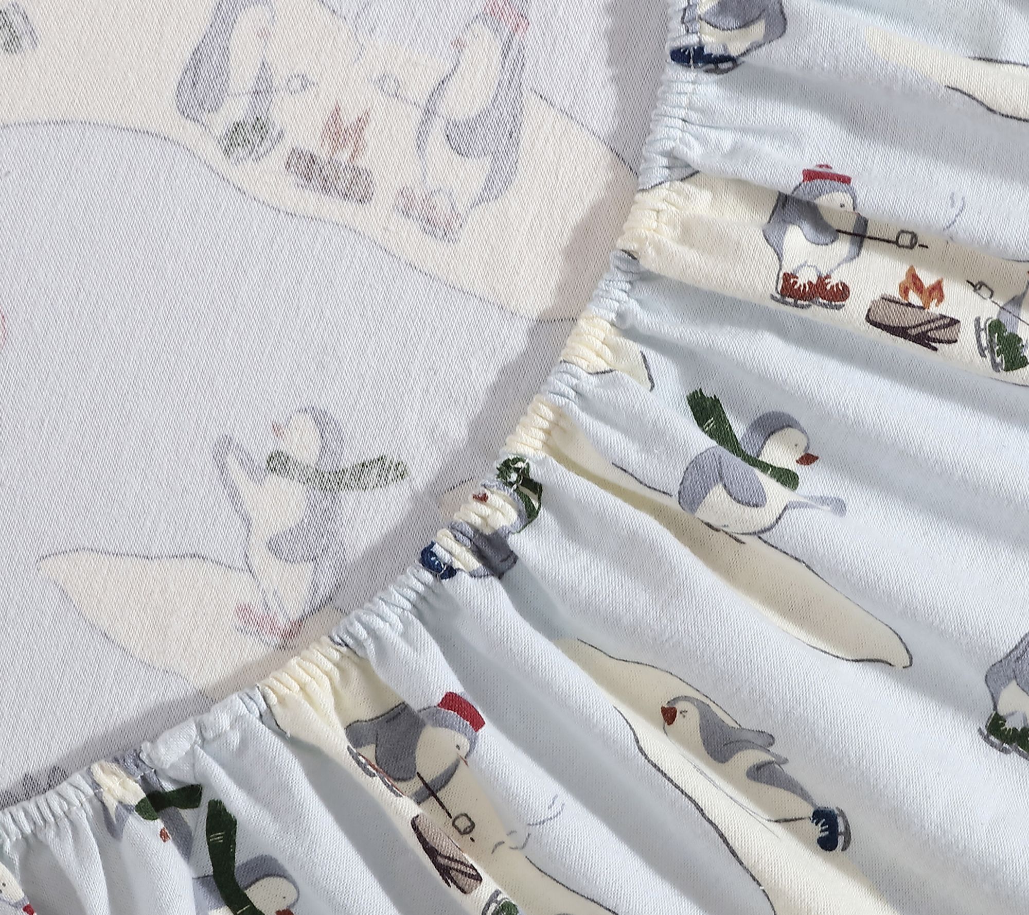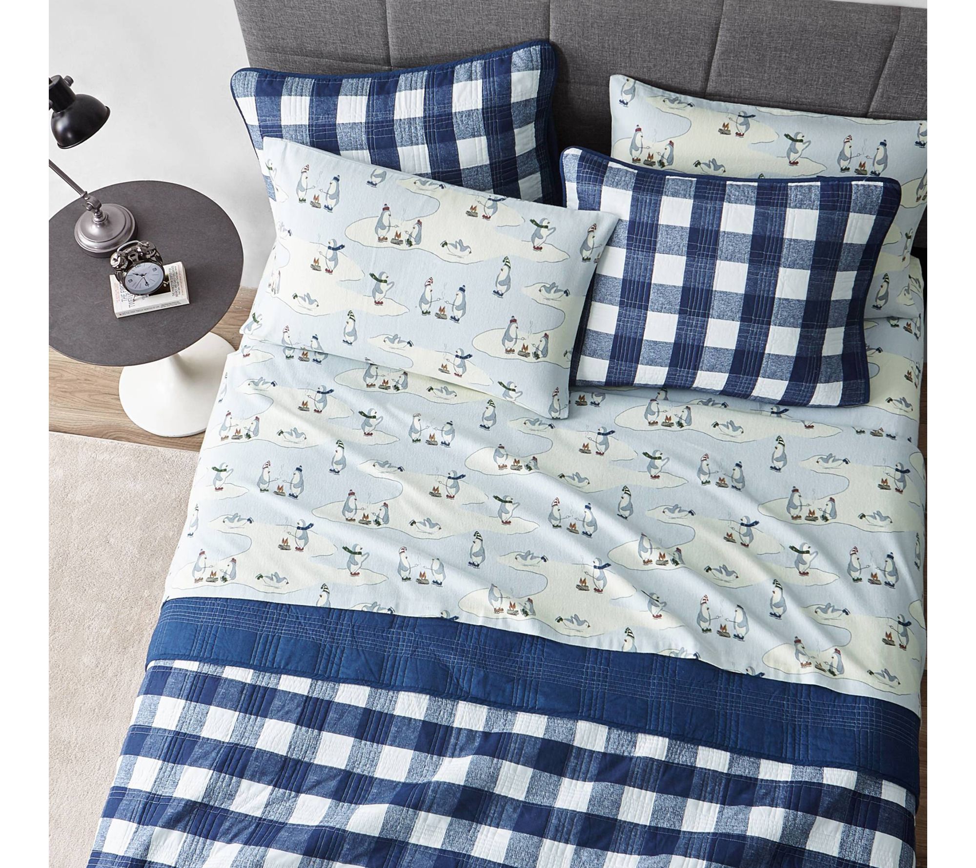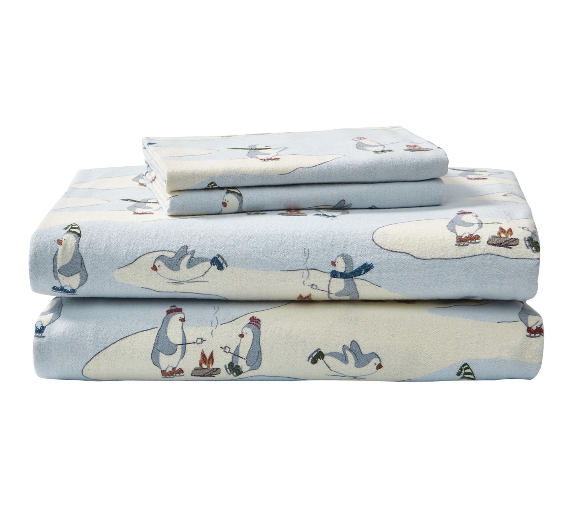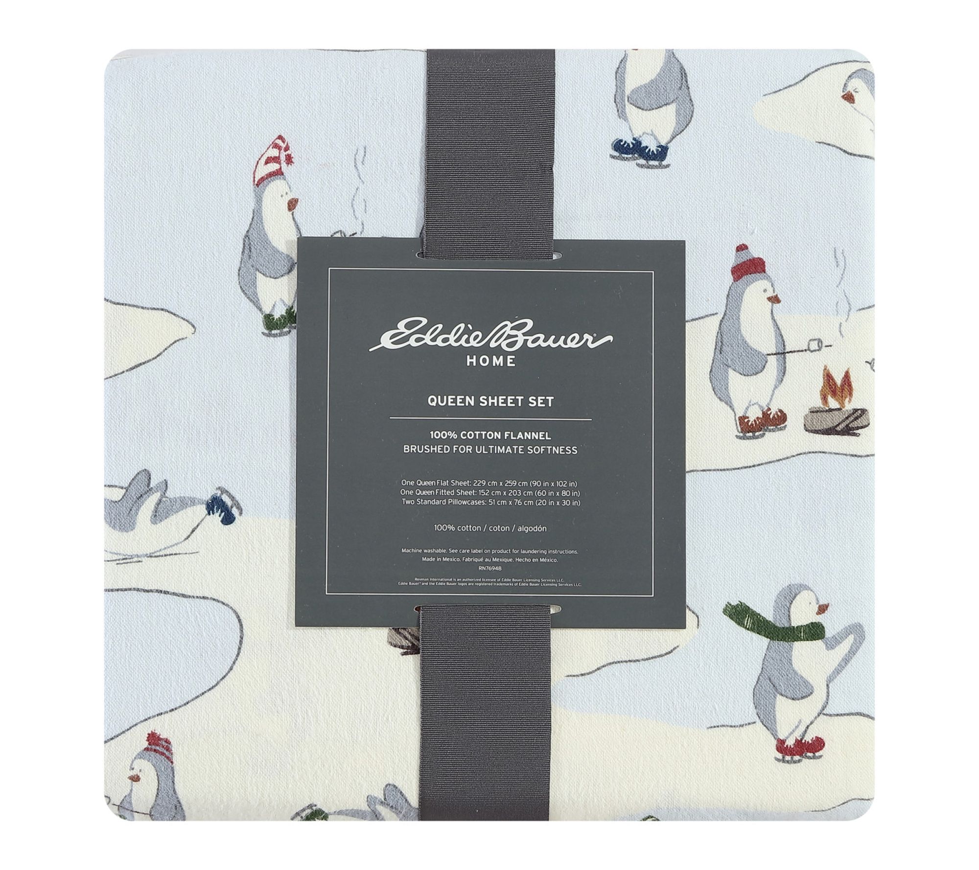 Bring a touch of winter whimsy to your bedroom with this Eddie Bauer Skating Penguins cotton sheet set. Soft, cozy flannel offers all-night comfort, while the playful penguin design adds a cheerful accent to your nightly routine. Crafted for durability and easy care, these sheets make every bedtime feel like a retreat. From Eddie Bauer.