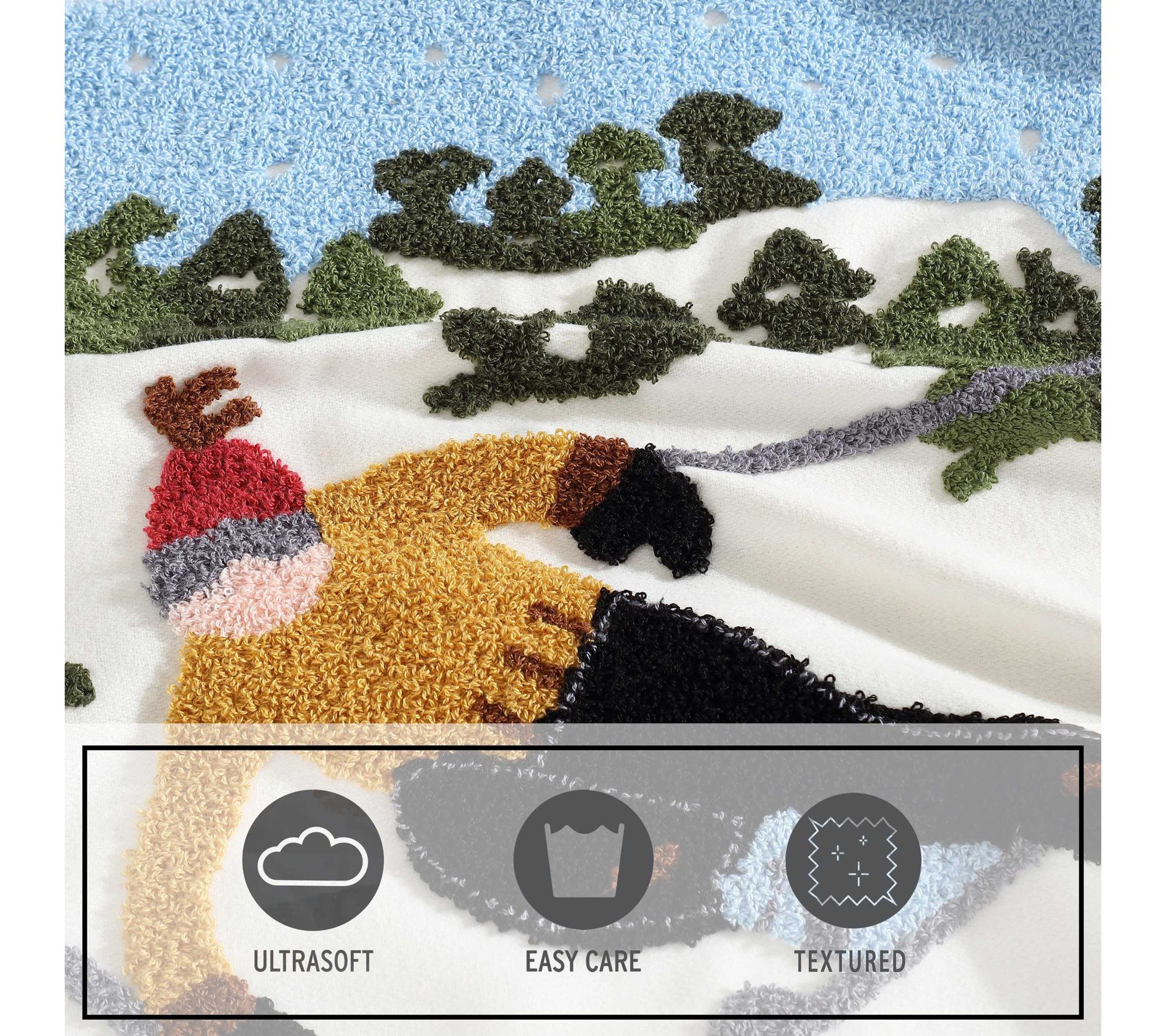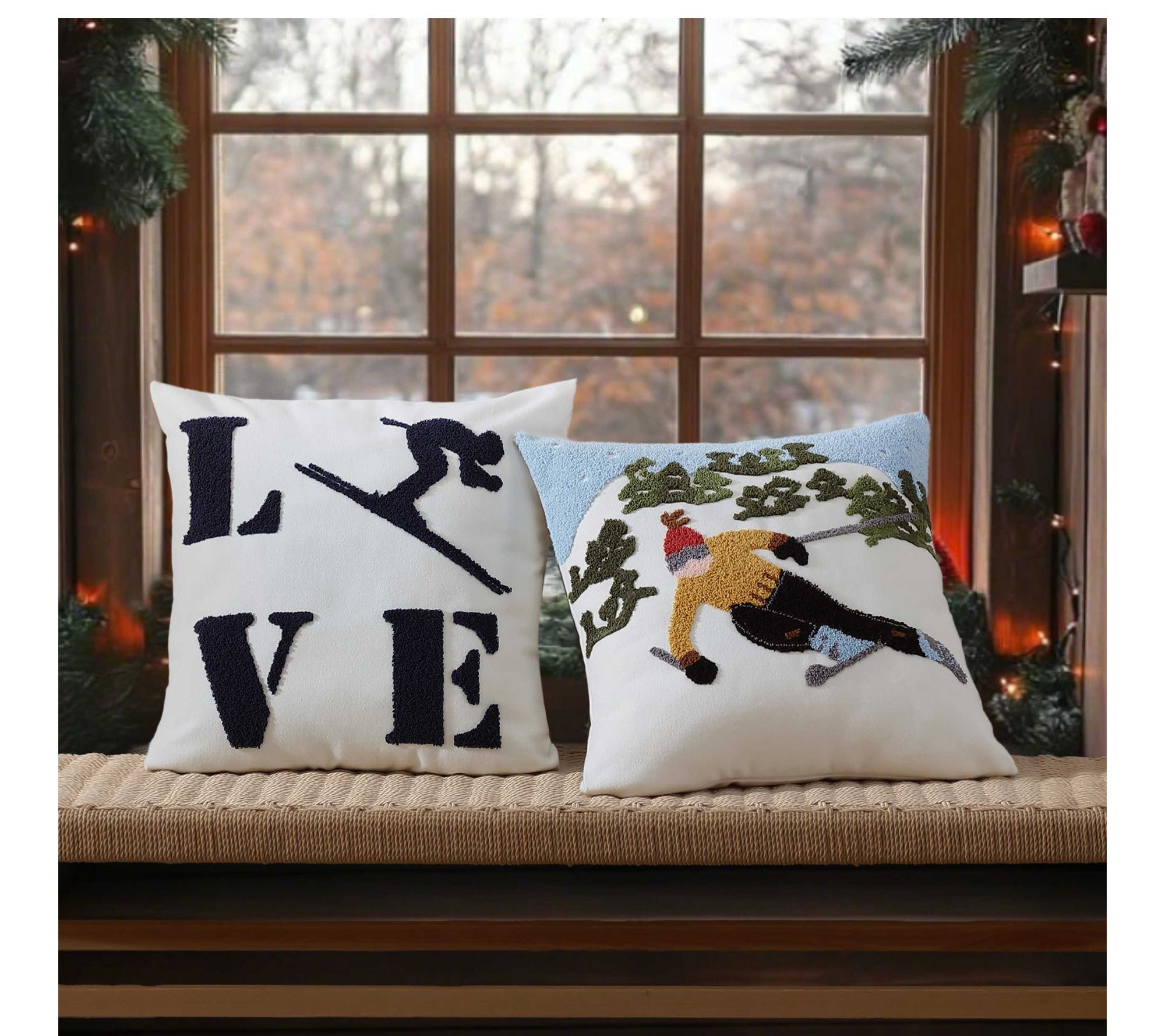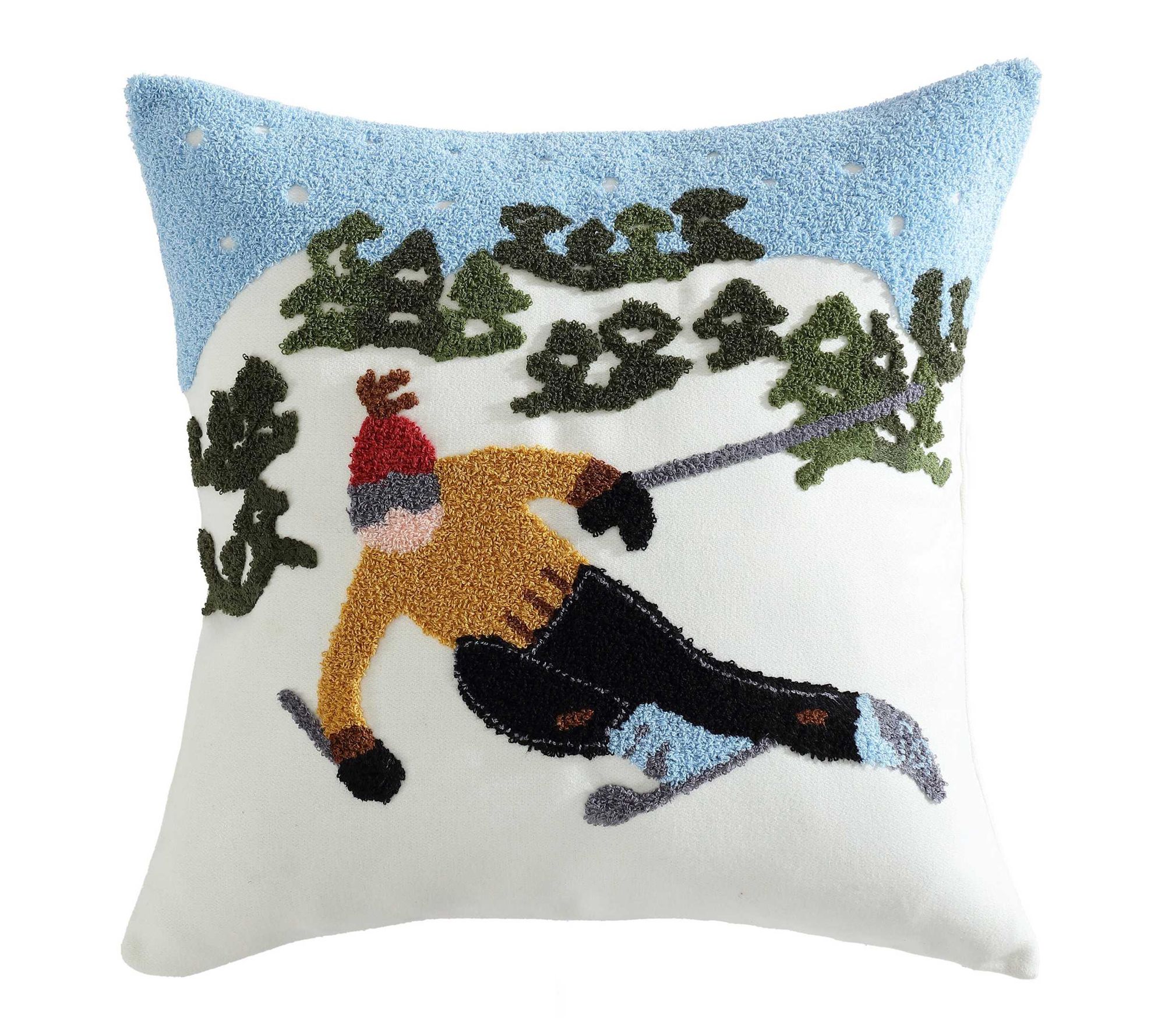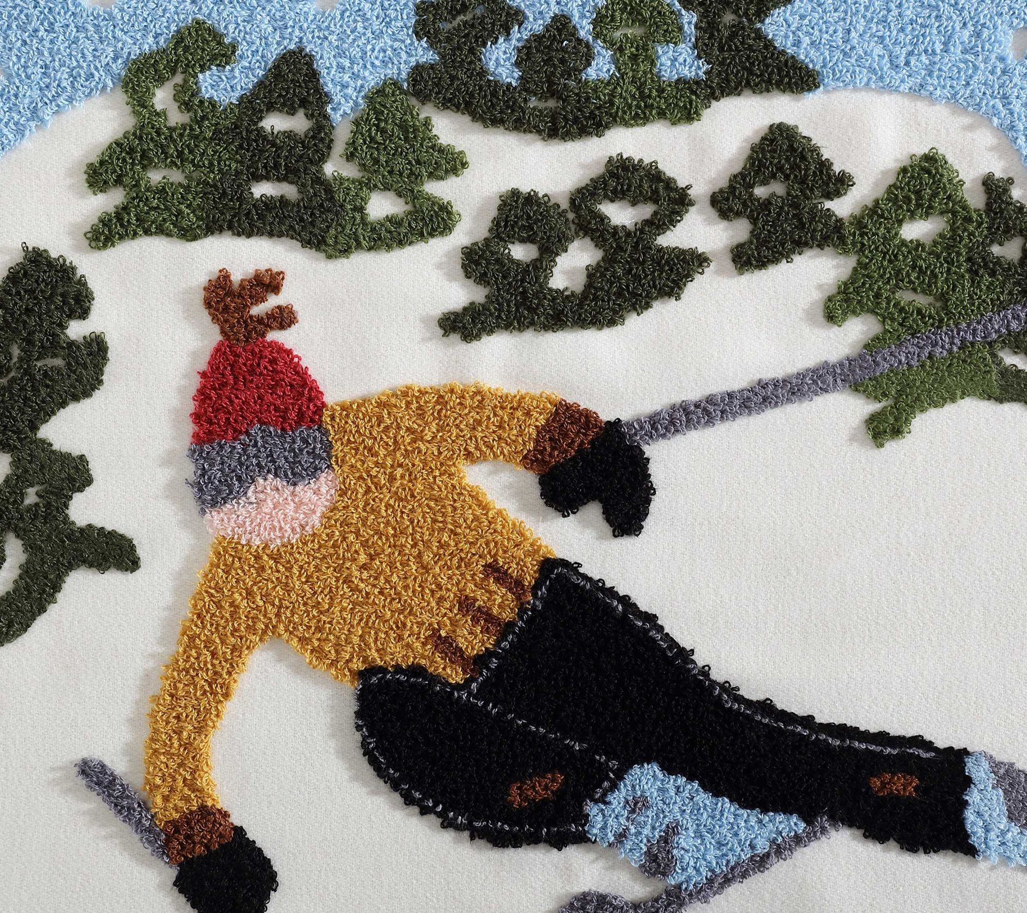 Bring a touch of winter wonder to your home with this decorative pillow, featuring playful skier motifs and intricate loop embroidery that evoke the spirit of the season. Designed for both comfort and style, the down alternative fill offers a plush feel while the festive pattern adds warmth and cheer to your couch or bed. From Eddie Bauer.
