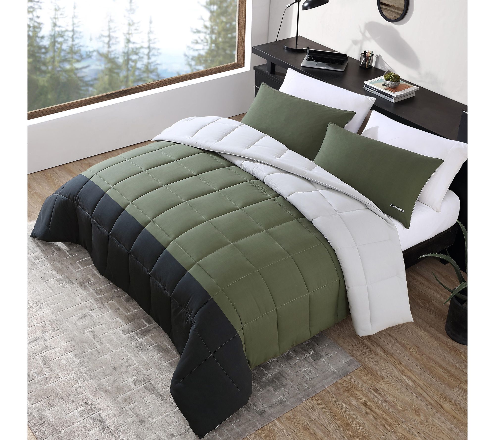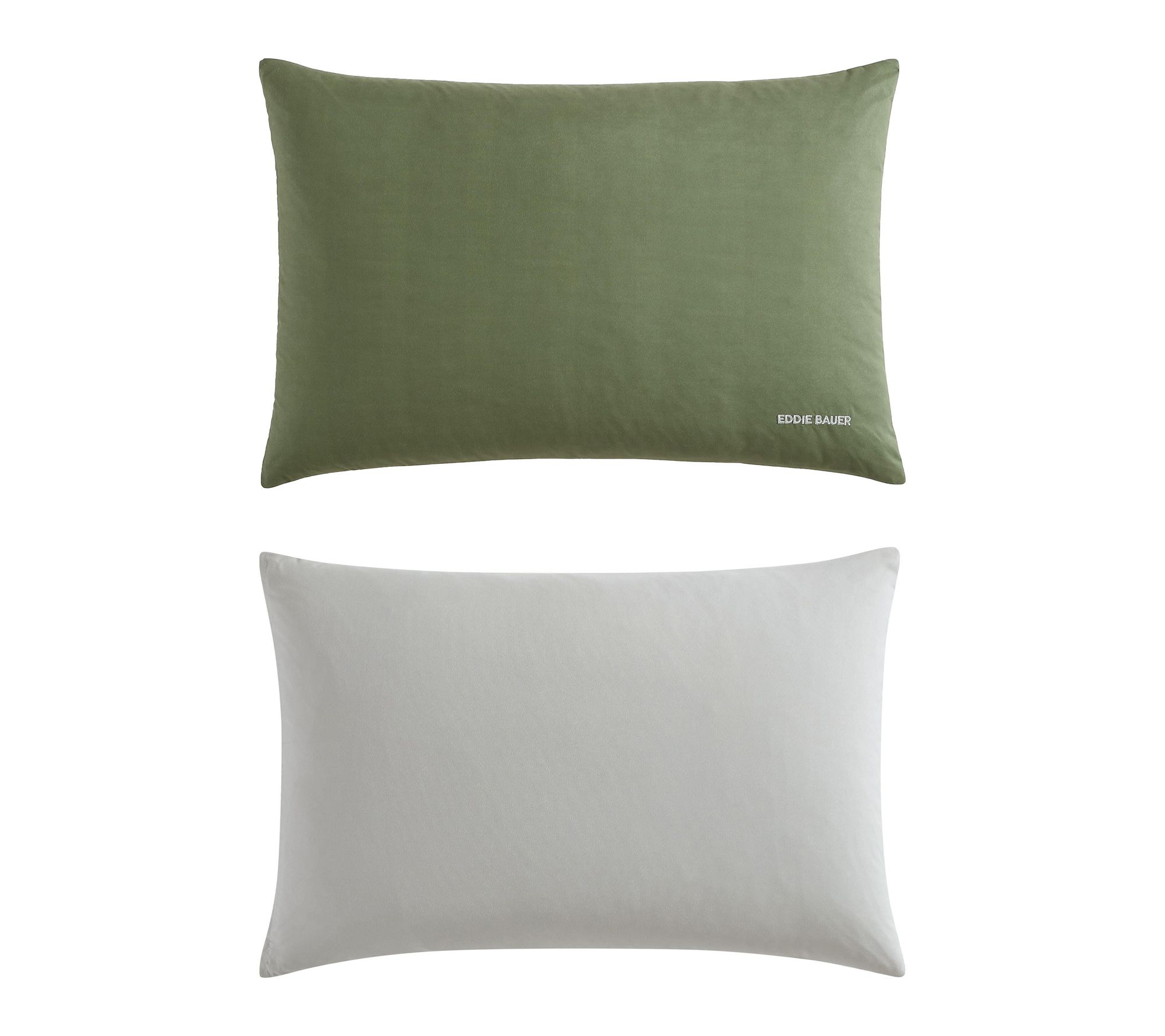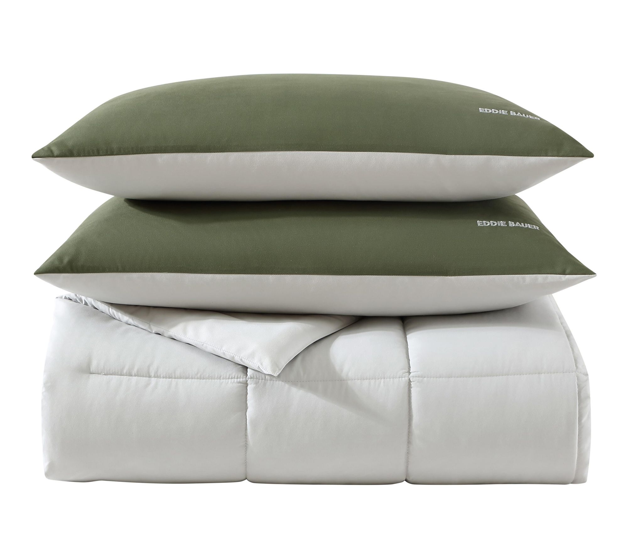 Whether it's settling in after a long day or updating a student's dorm, the Skyline Stripe comforter set brings casual style and versatile comfort to any room. Reversible for two distinct looks -- classic colorblock on one side, solid on the other -- this bedding duo feels ultra-soft thanks to brushed microfiber. From Eddie Bauer.