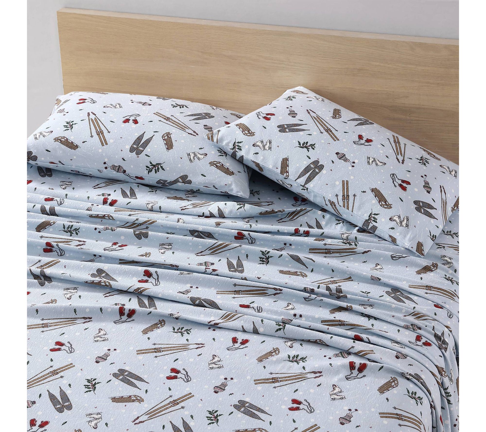 Bring a touch of warmth to chilly nights with this Eddie Bauer cotton sheet set, crafted for cozy comfort and everyday durability. The brushed flannel texture feels inviting after a long day, while the lively pattern brightens up your bedroom and pairs effortlessly with your favorite bedding. From Eddie Bauer.