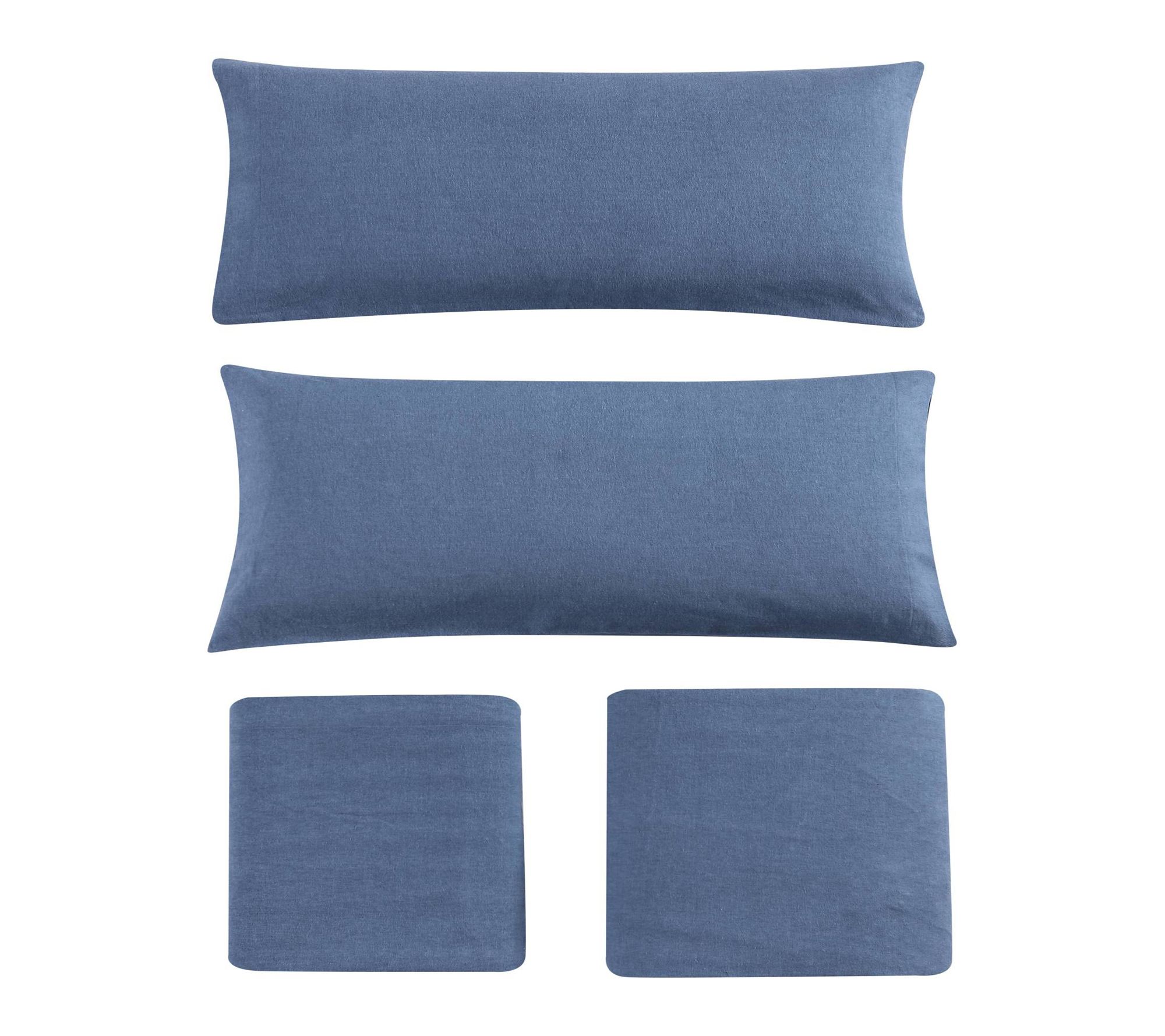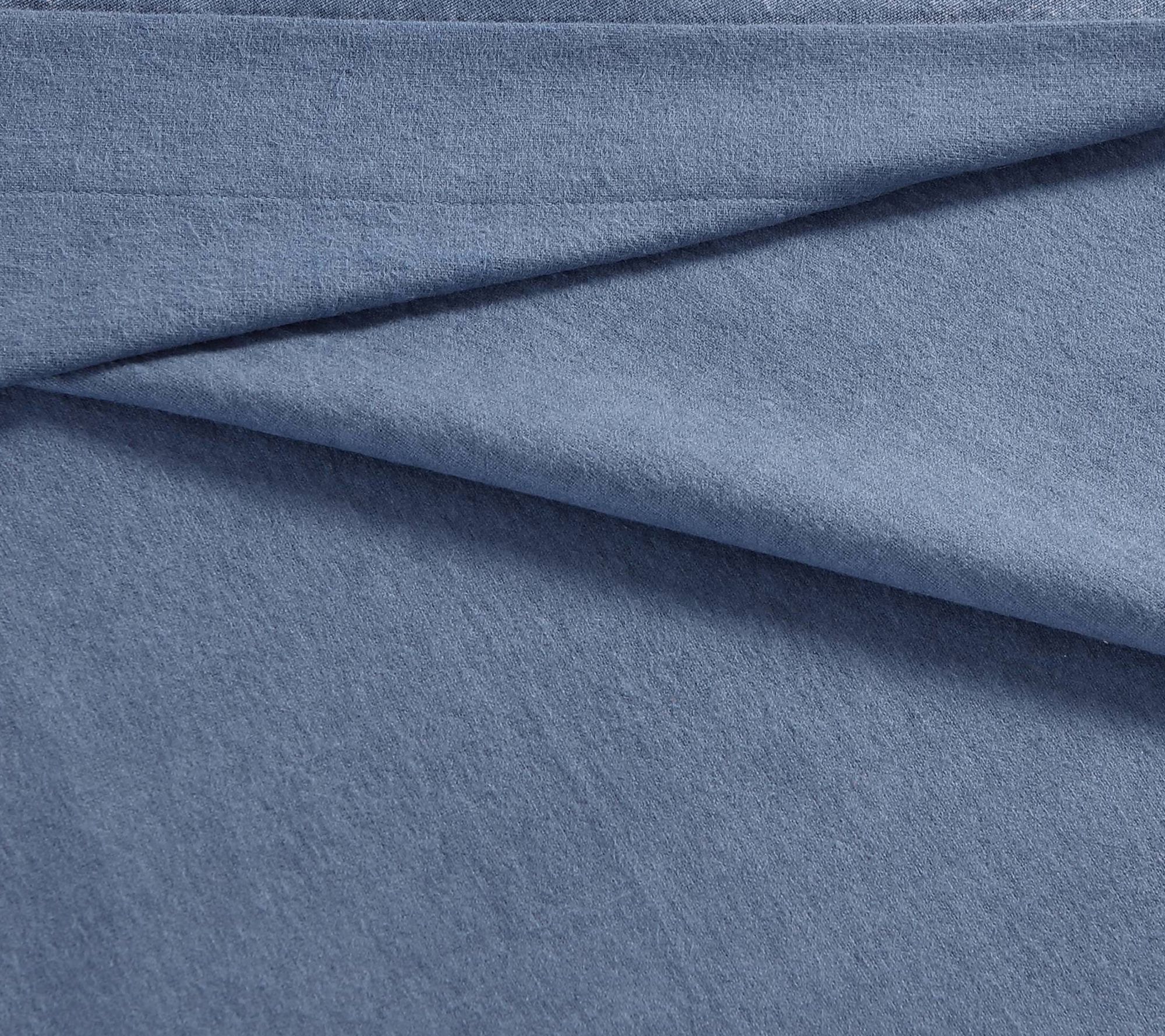 Settle in for a restful night with this solid blue sheet set, crafted from 100% cotton for a soft, cozy feel. The deep-pocket fitted sheet stays securely in place, while the brushed finish adds warmth -- making it a comforting addition to any bedroom, especially during chilly evenings. From Eddie Bauer.