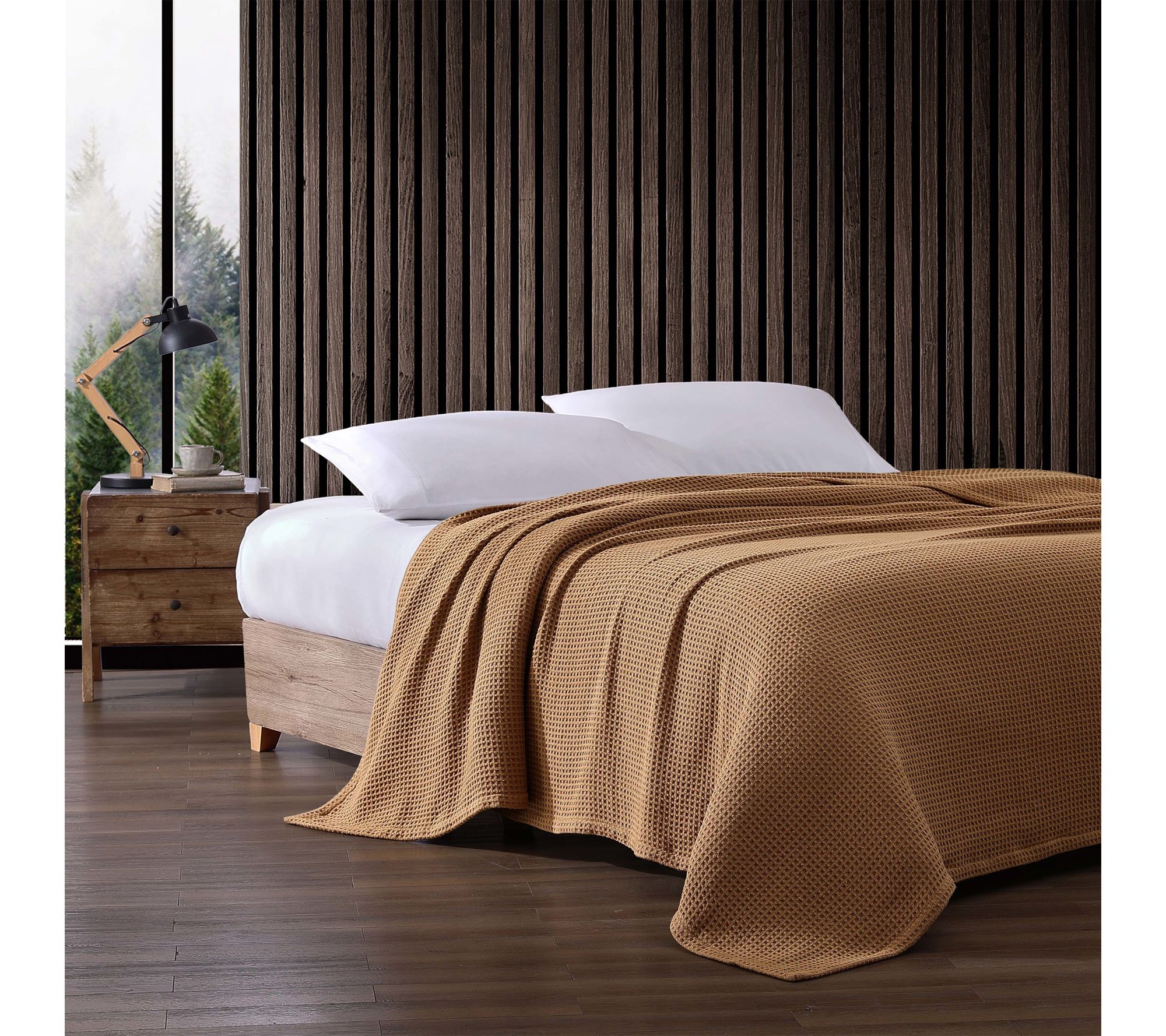 Eddie Bauer Solid Waffle Brown Cotton Full/Queen Blanket