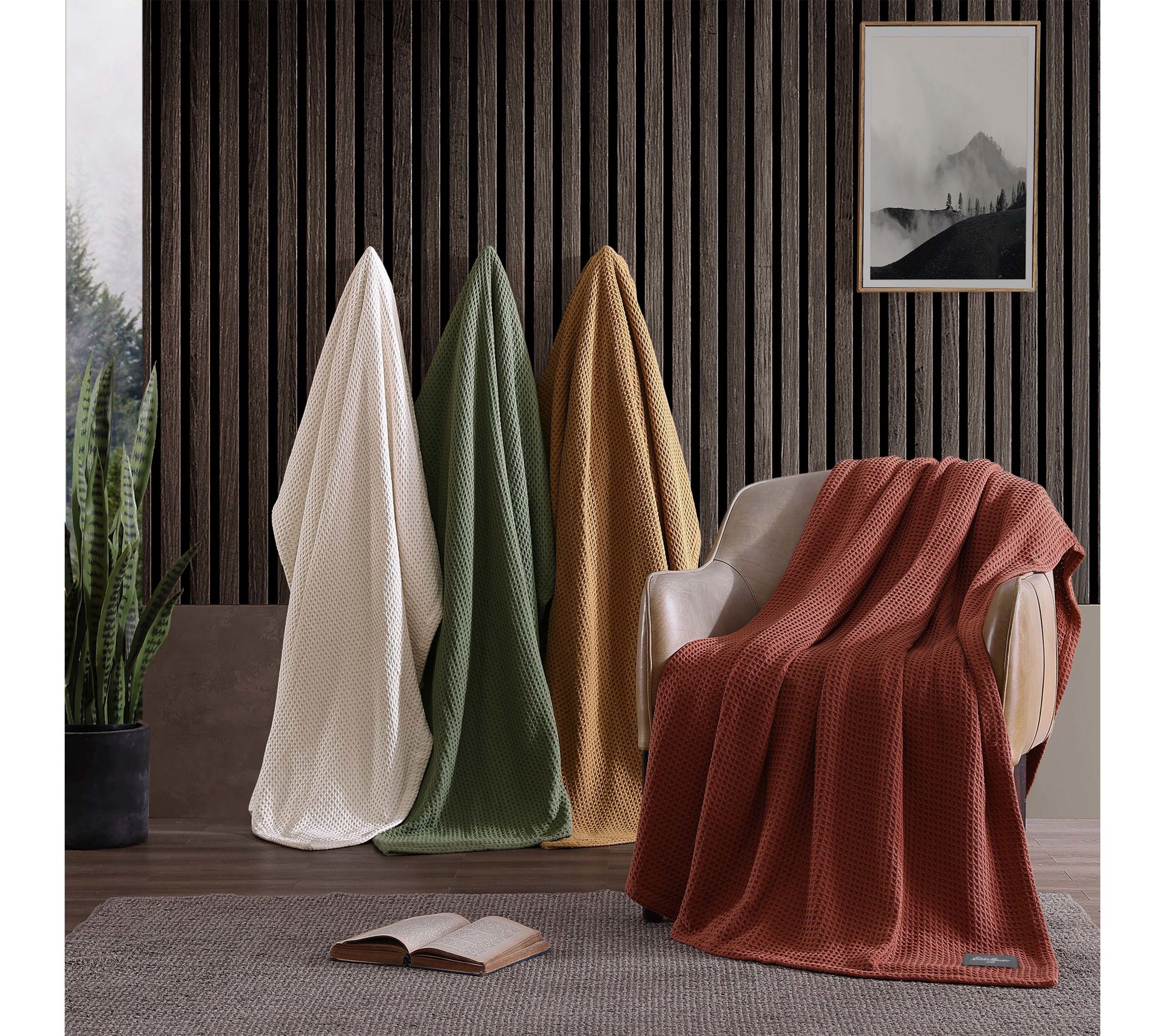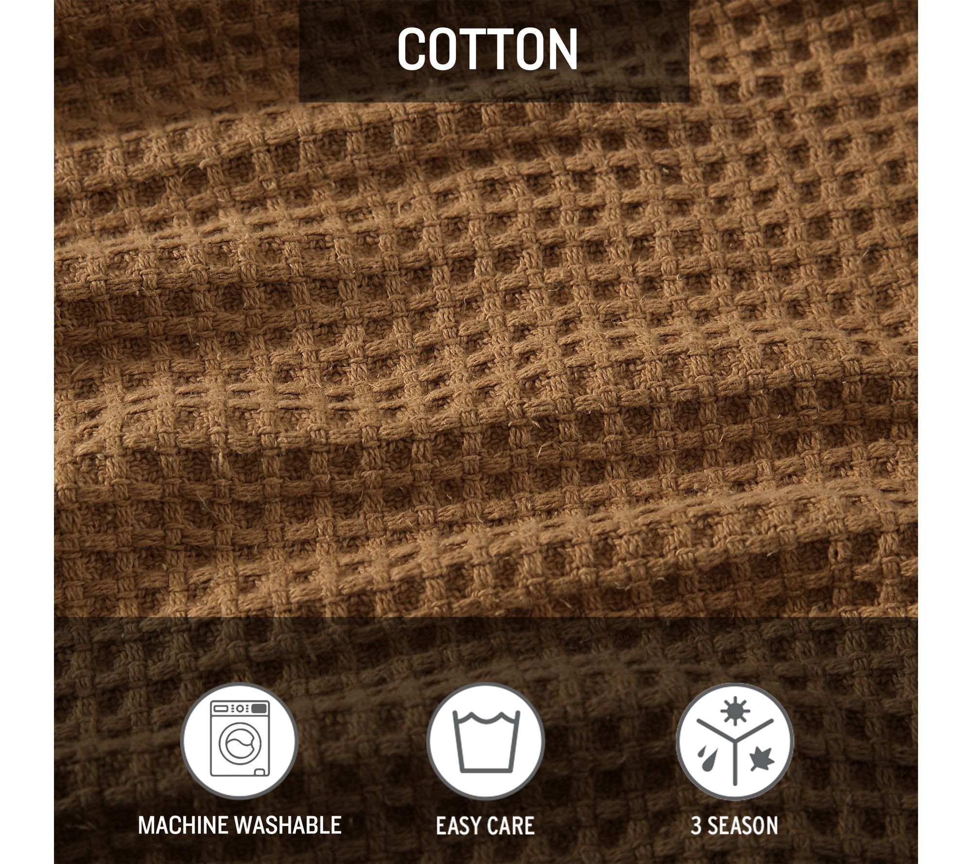 Bring cozy texture and warmth to your bedroom or living space with this cotton waffle blanket, made in a classic weave and a rich brown hue. The medium weight design provides year-round comfort while easily layering with bedding for chilly nights or afternoon naps. Enjoy hassle-free care -- just toss it in the wash and dryer. From Eddie Bauer.