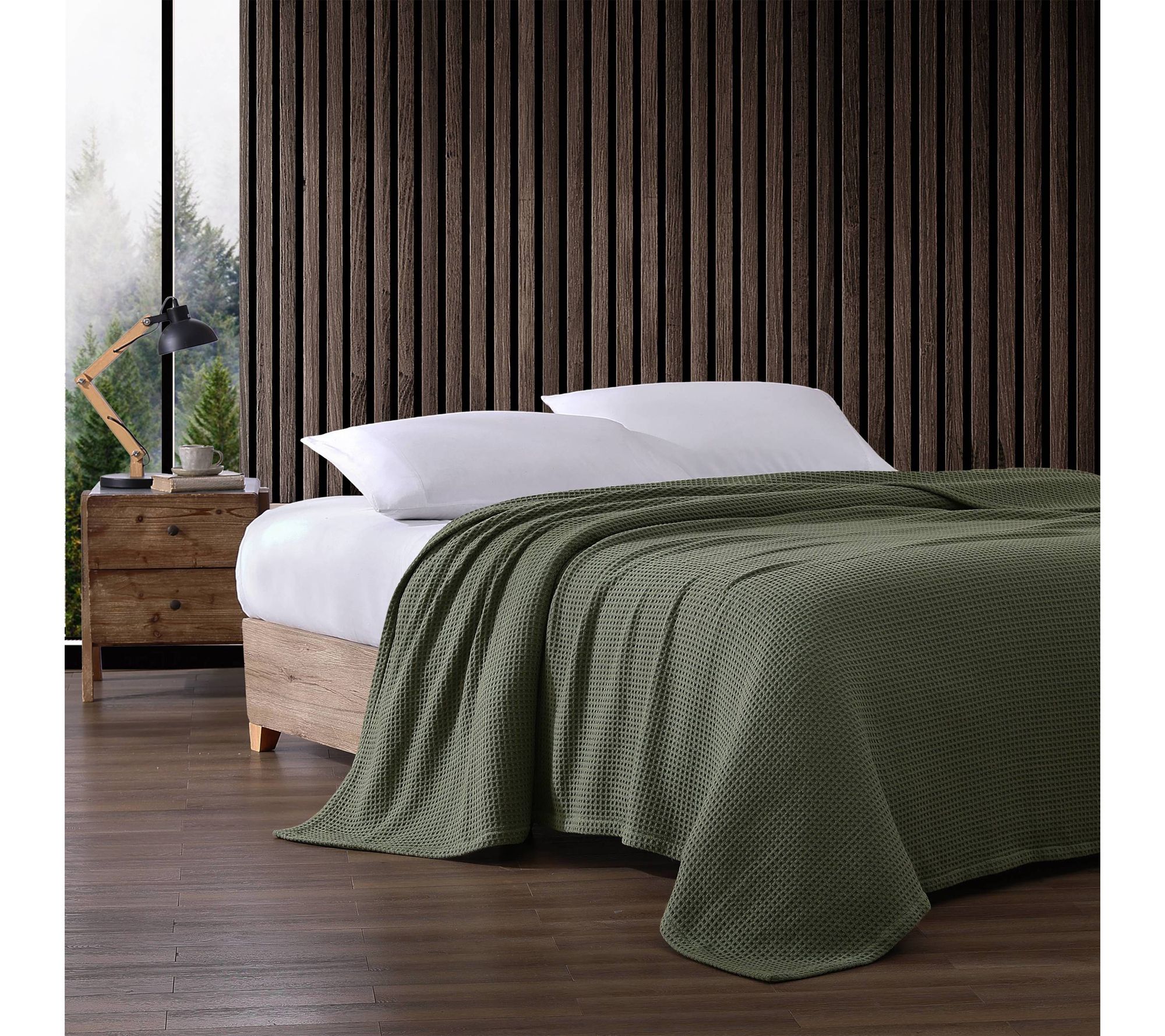 Layer your bed with this cozy cotton waffle blanket for a touch of effortless warmth and style. With its inviting texture, this twin-size staple is just right for curling up with a book or adding an extra layer on cool nights. The solid green hue brings fresh color to your bedding, while easy-care fabric keeps life simple. From Eddie Bauer.