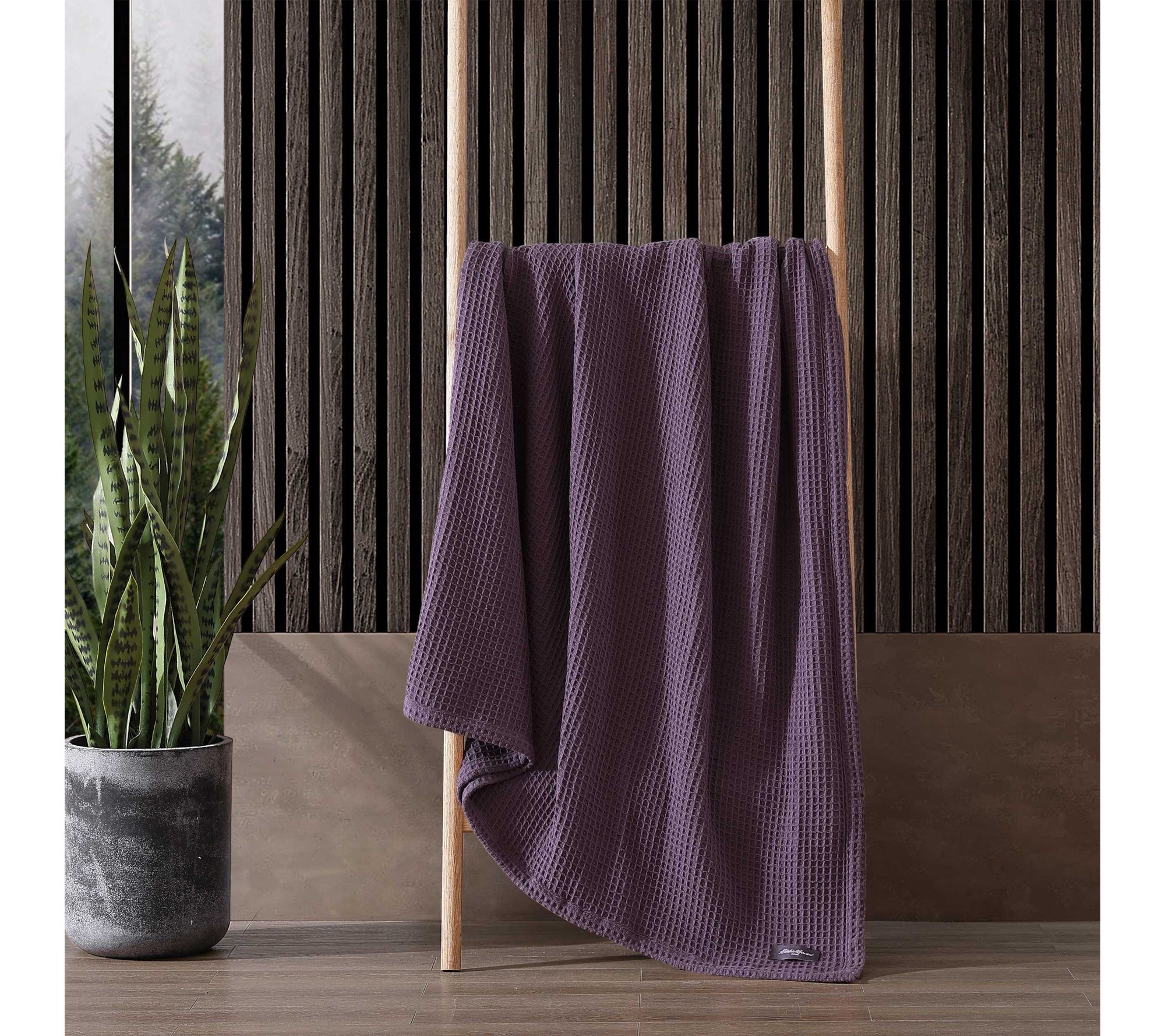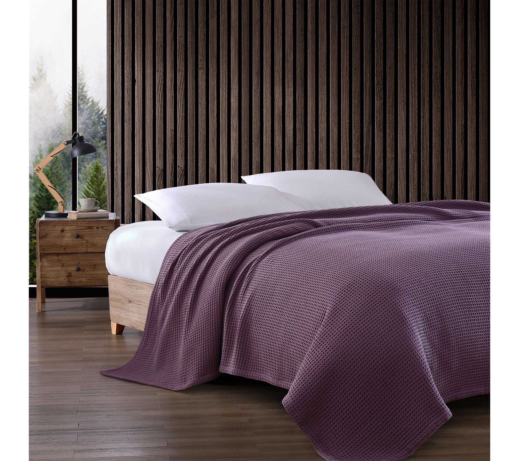 Layer cozy comfort over your bed with this king-size waffle blanket, offering a touch of style and warmth for chilly nights. The textured cotton design and versatile purple hue blend seamlessly into any bedroom, making it easy to enhance relaxation or refresh your decor. From Eddie Bauer.