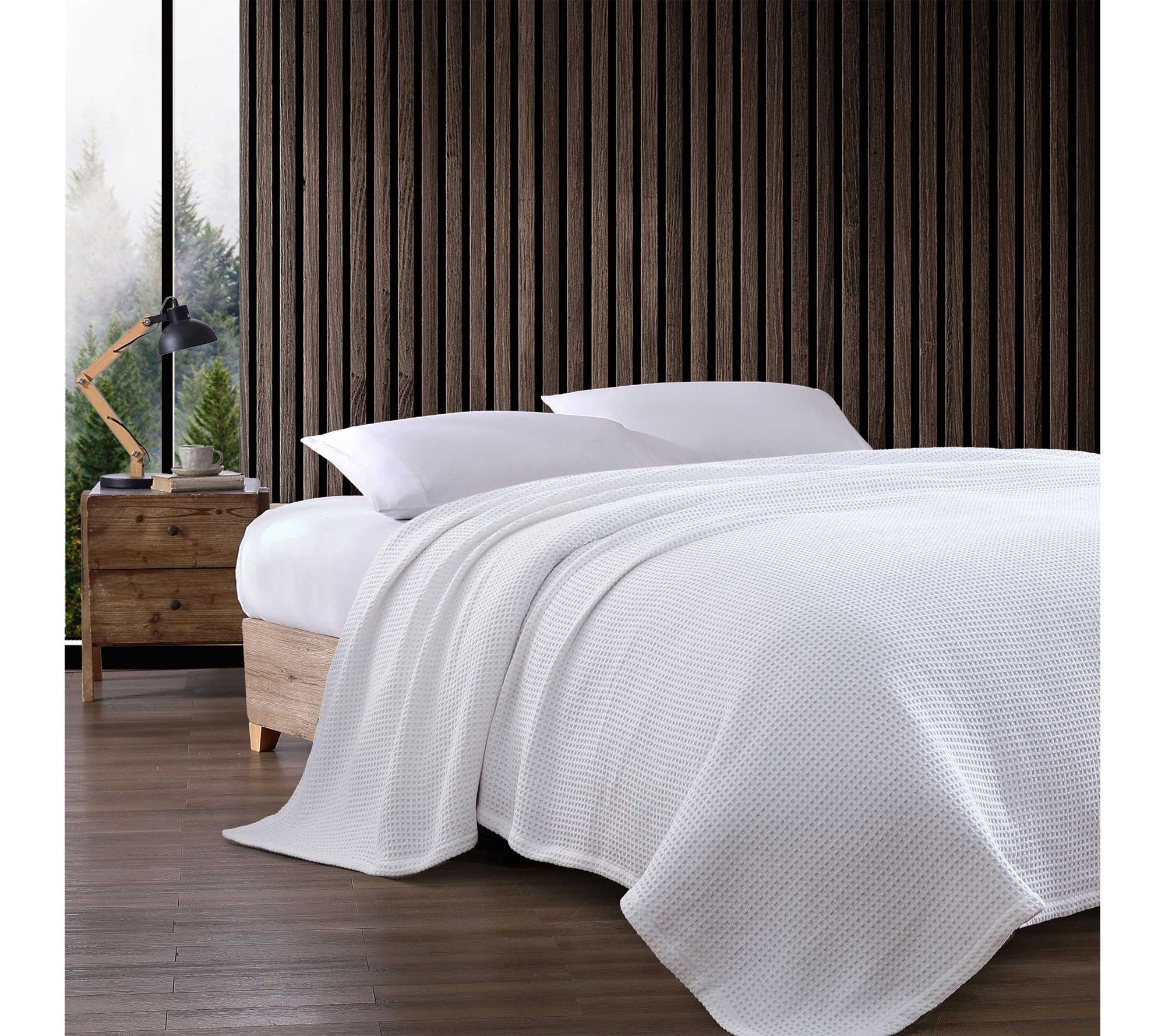 Eddie Bauer Solid Waffle White Cotton Full/Queen Blanket