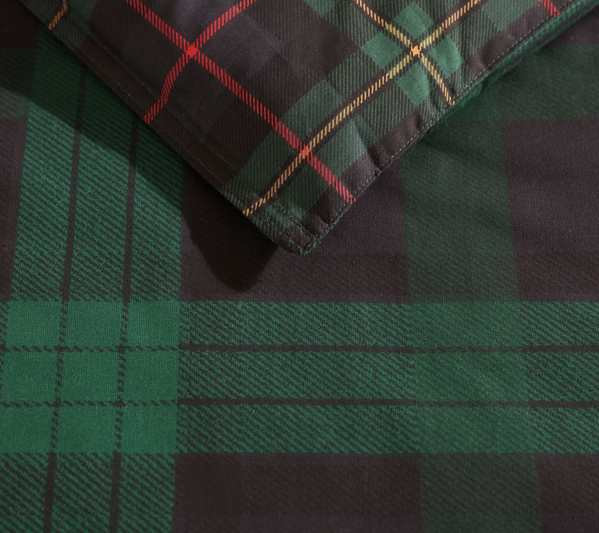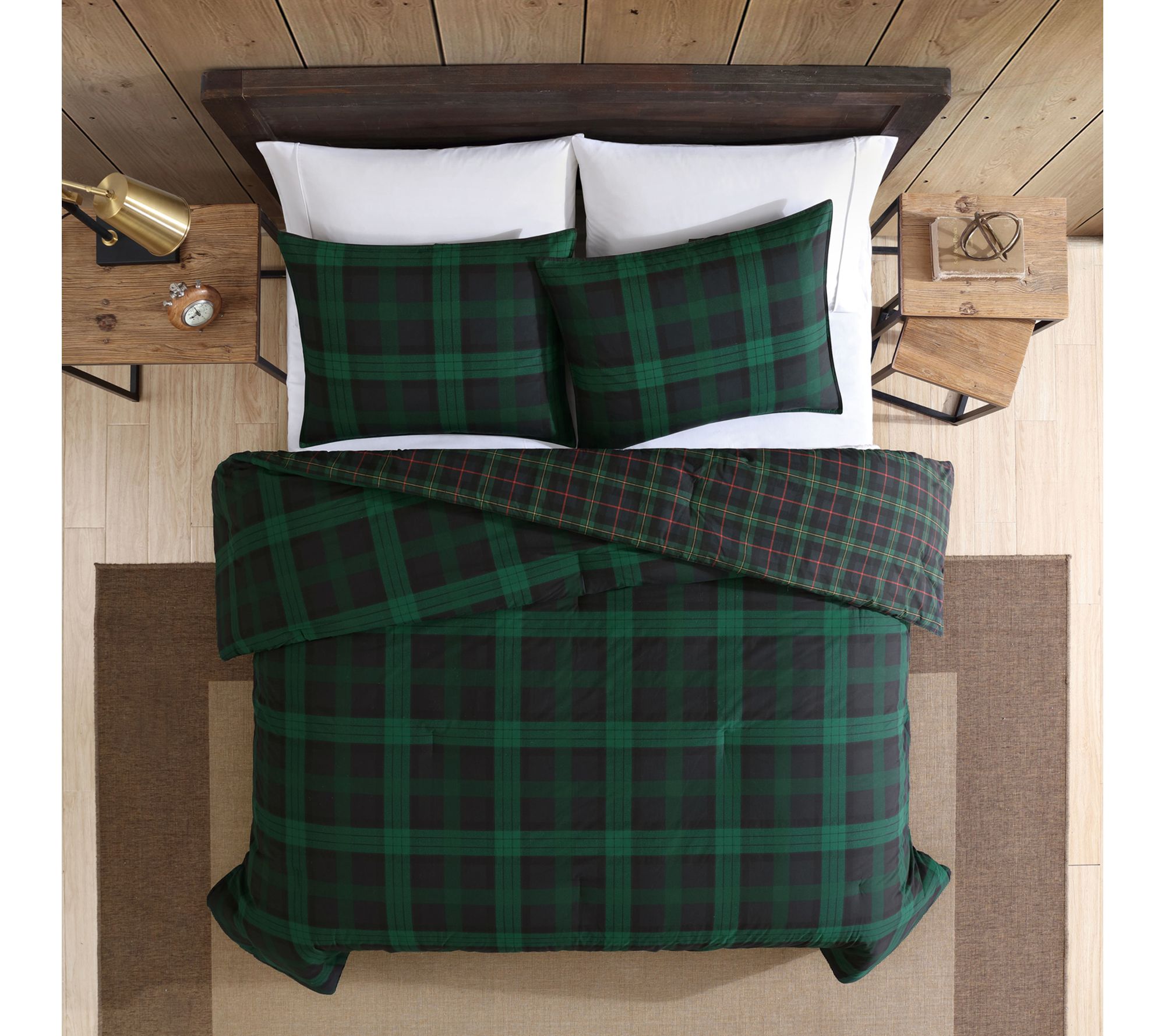 Bring the classic comfort of tartan to your bedroom with this cotton comforter set featuring bold plaid patterns in pine green and dark blue. The reversible design lets you switch up your style, while the soft fabric and detailed stitching add inviting texture. Pair it with crisp sheets or cozy blankets for a relaxed space that feels welcoming after every long day. From Eddie Bauer.