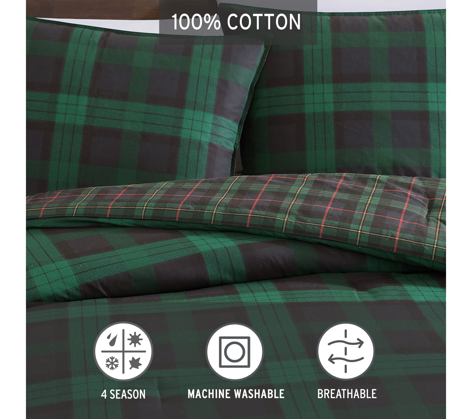 Eddie Bauer Tartan Green Cotton Full/Queen Comforter Set