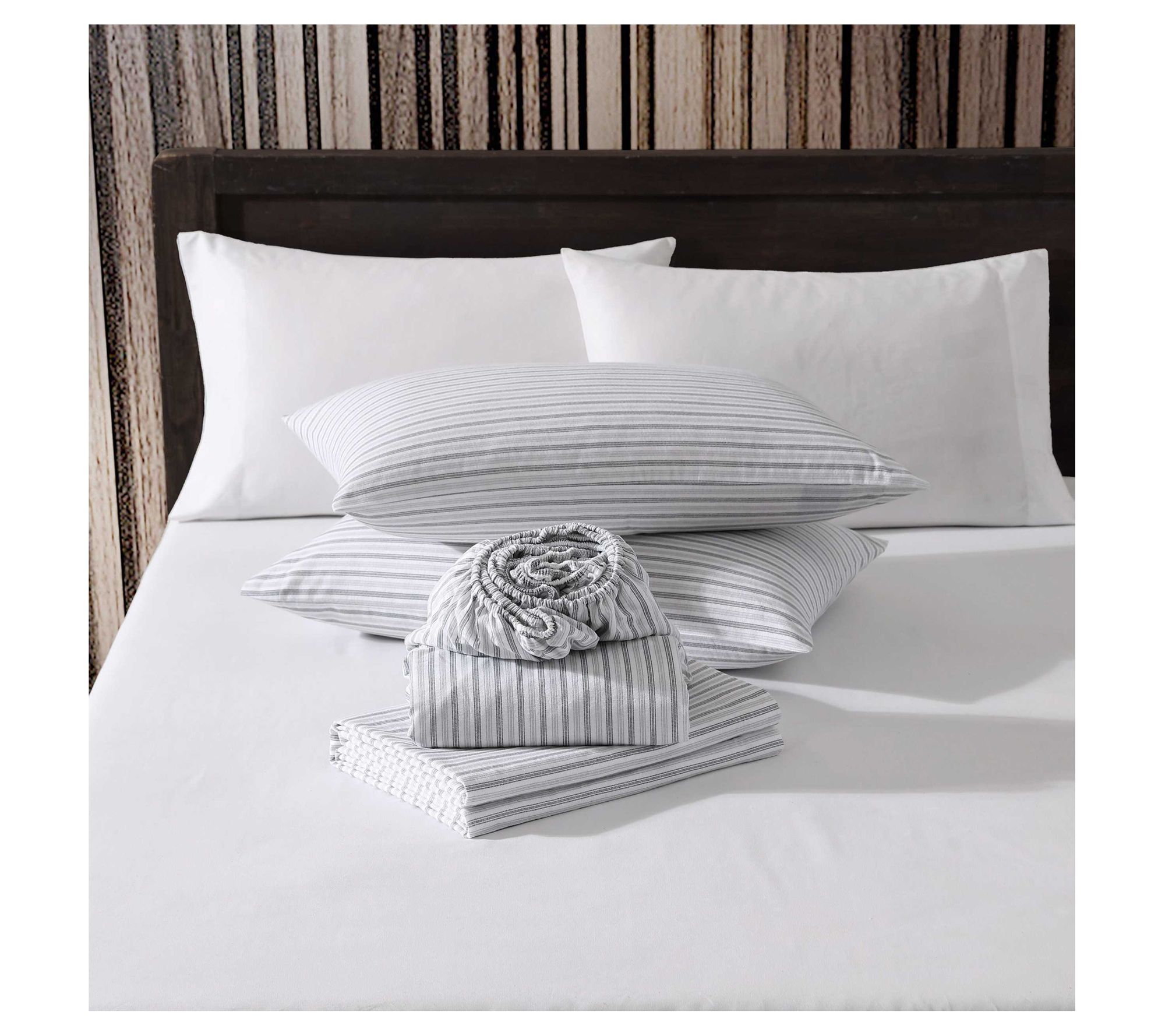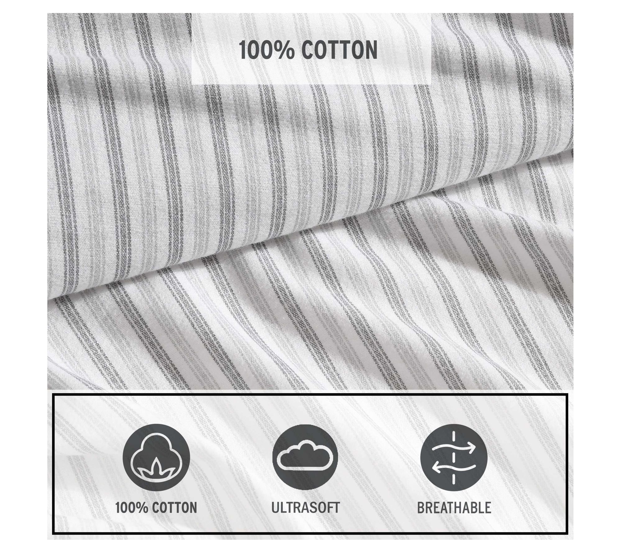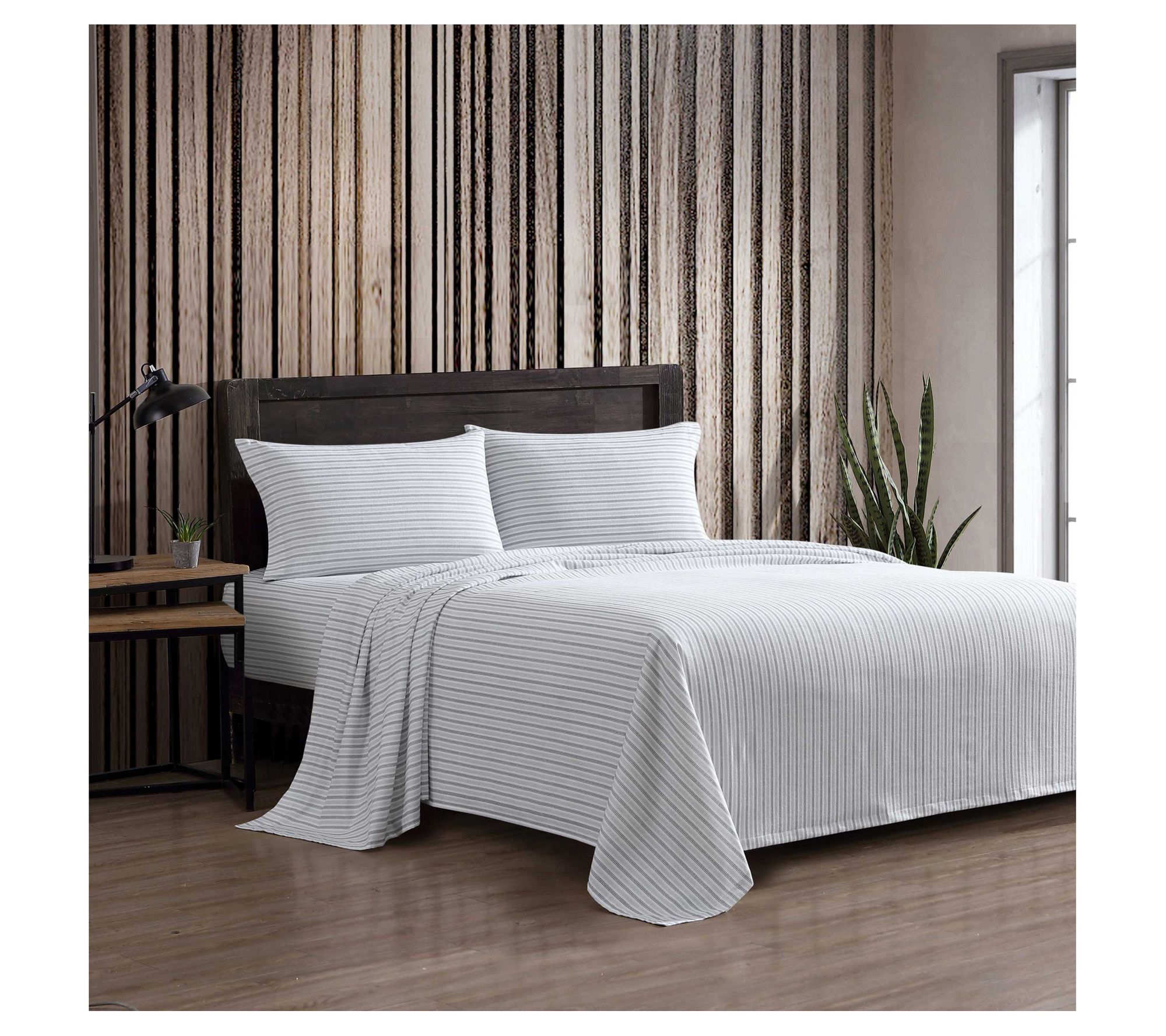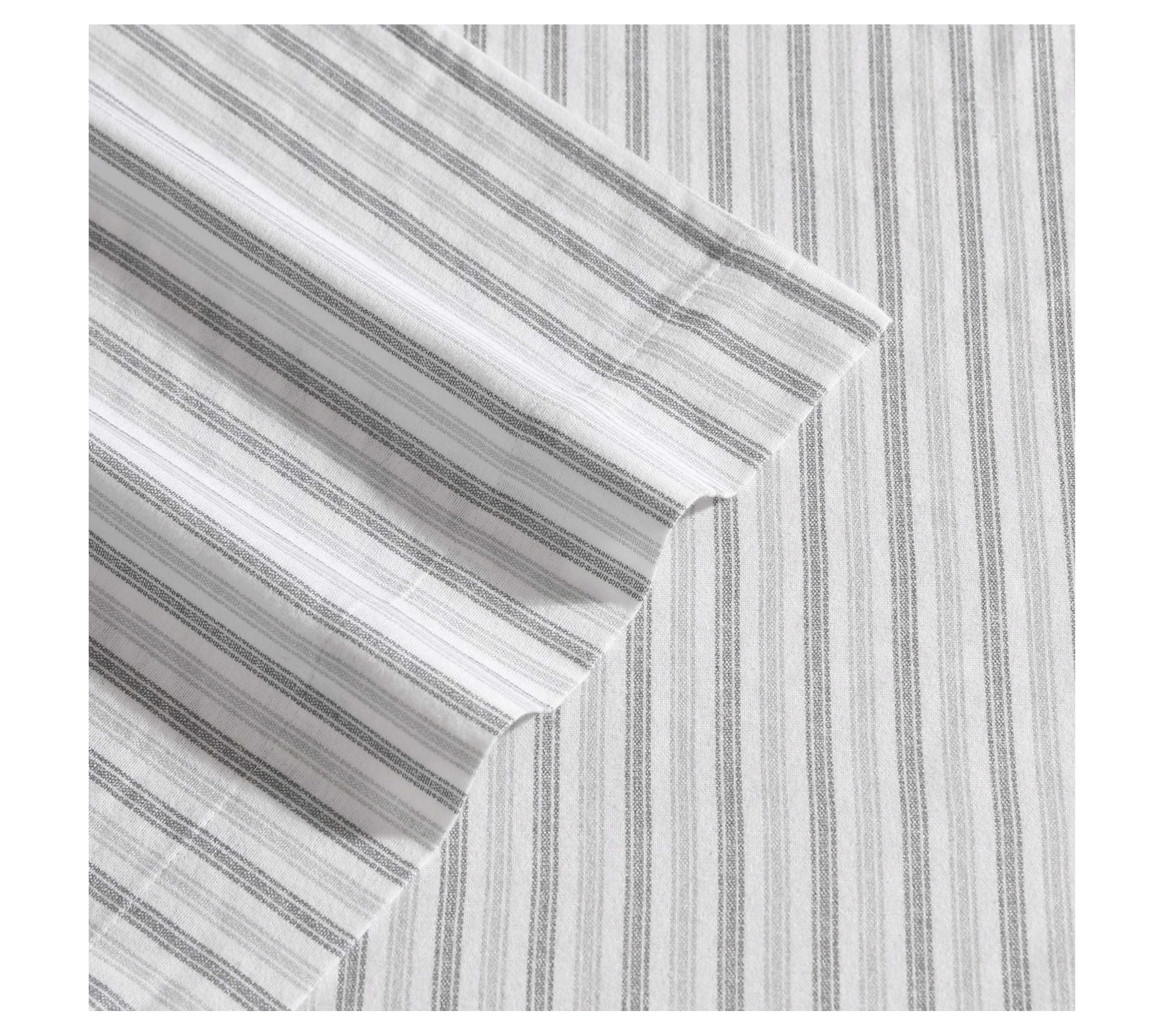 Eddie Bauer Ticking Stripe Grey Cotton Flannelwin Sheet Set
