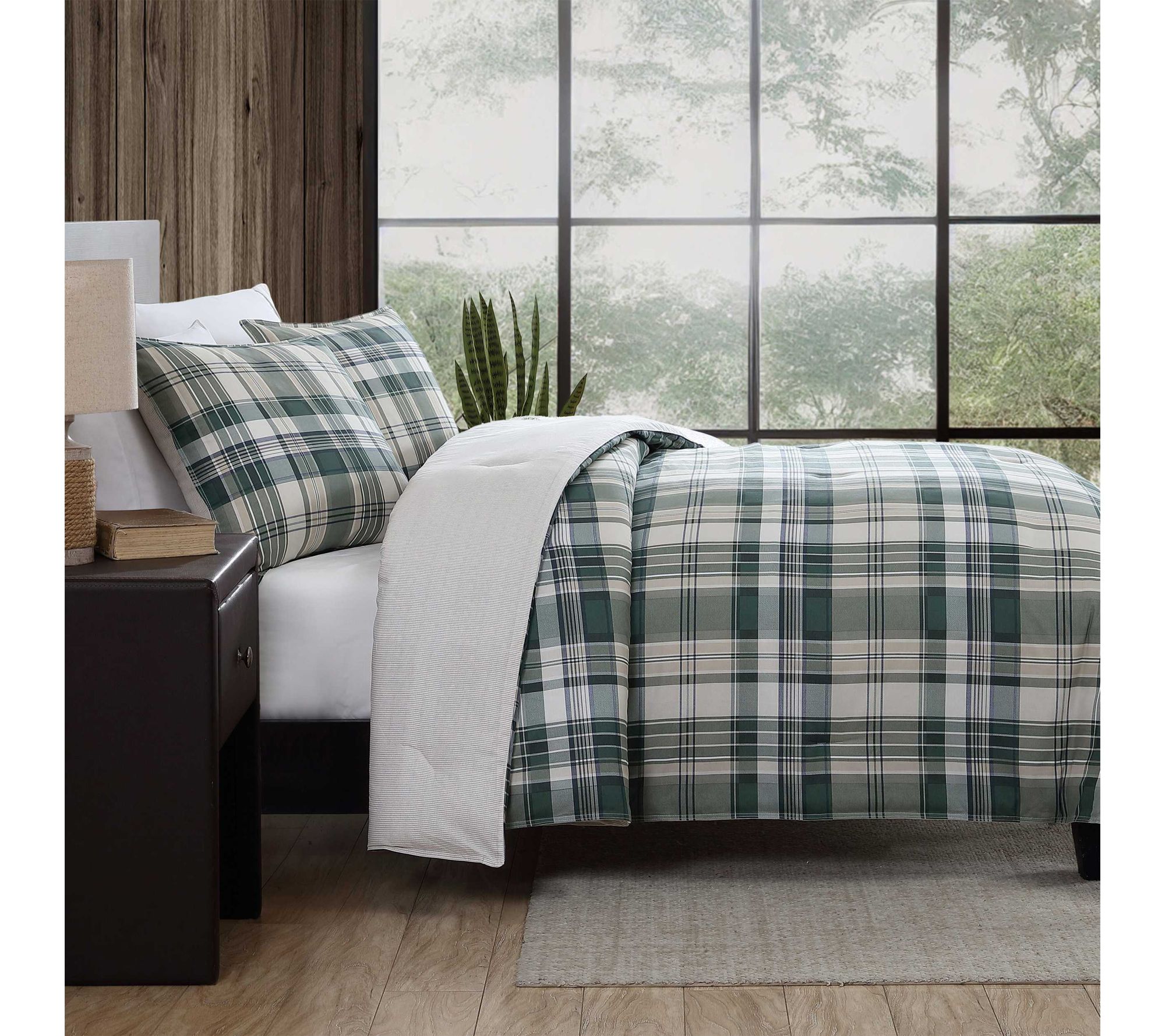 Eddie Bauer Timbers Plaid Green King Duvet Cover Set