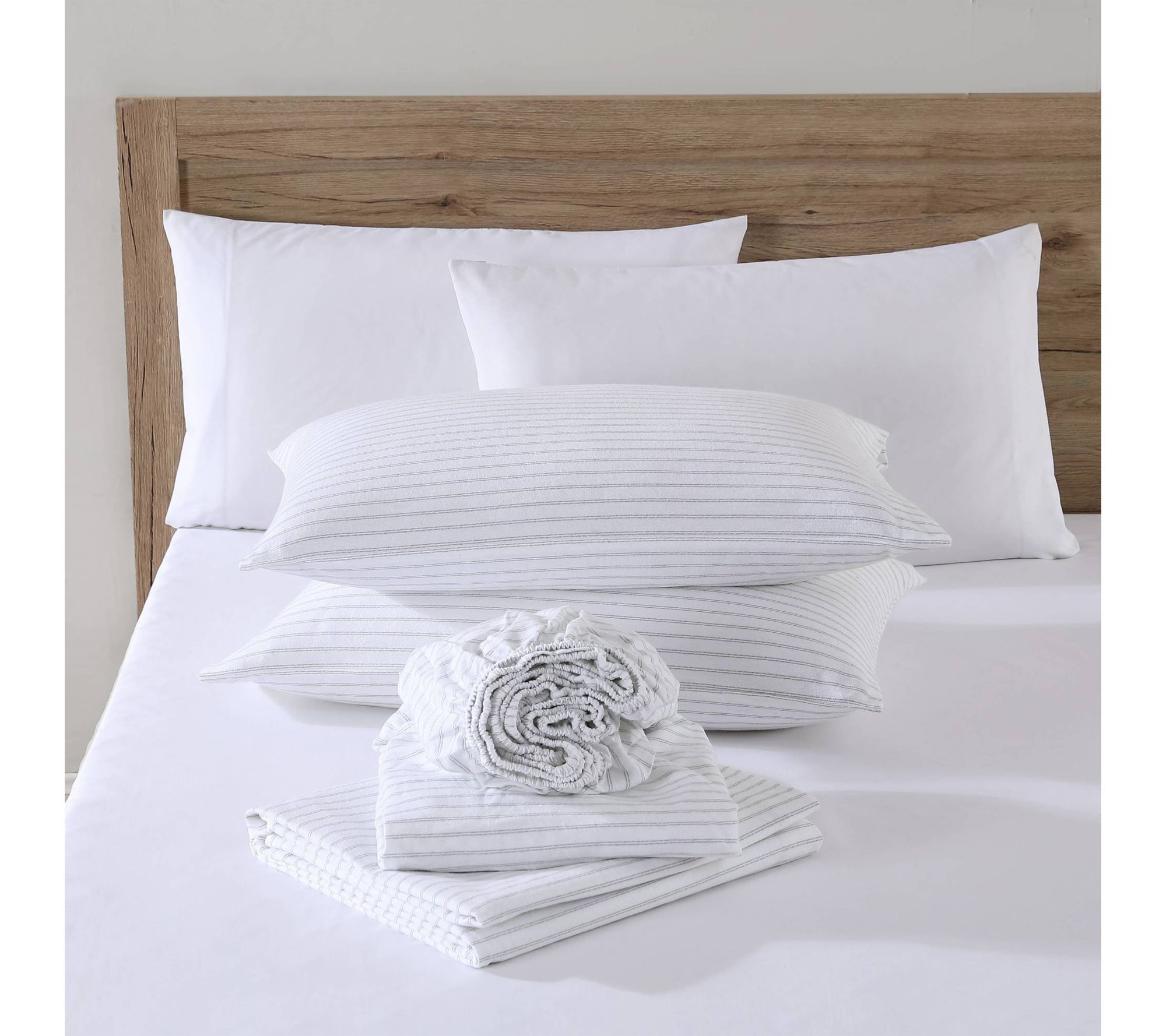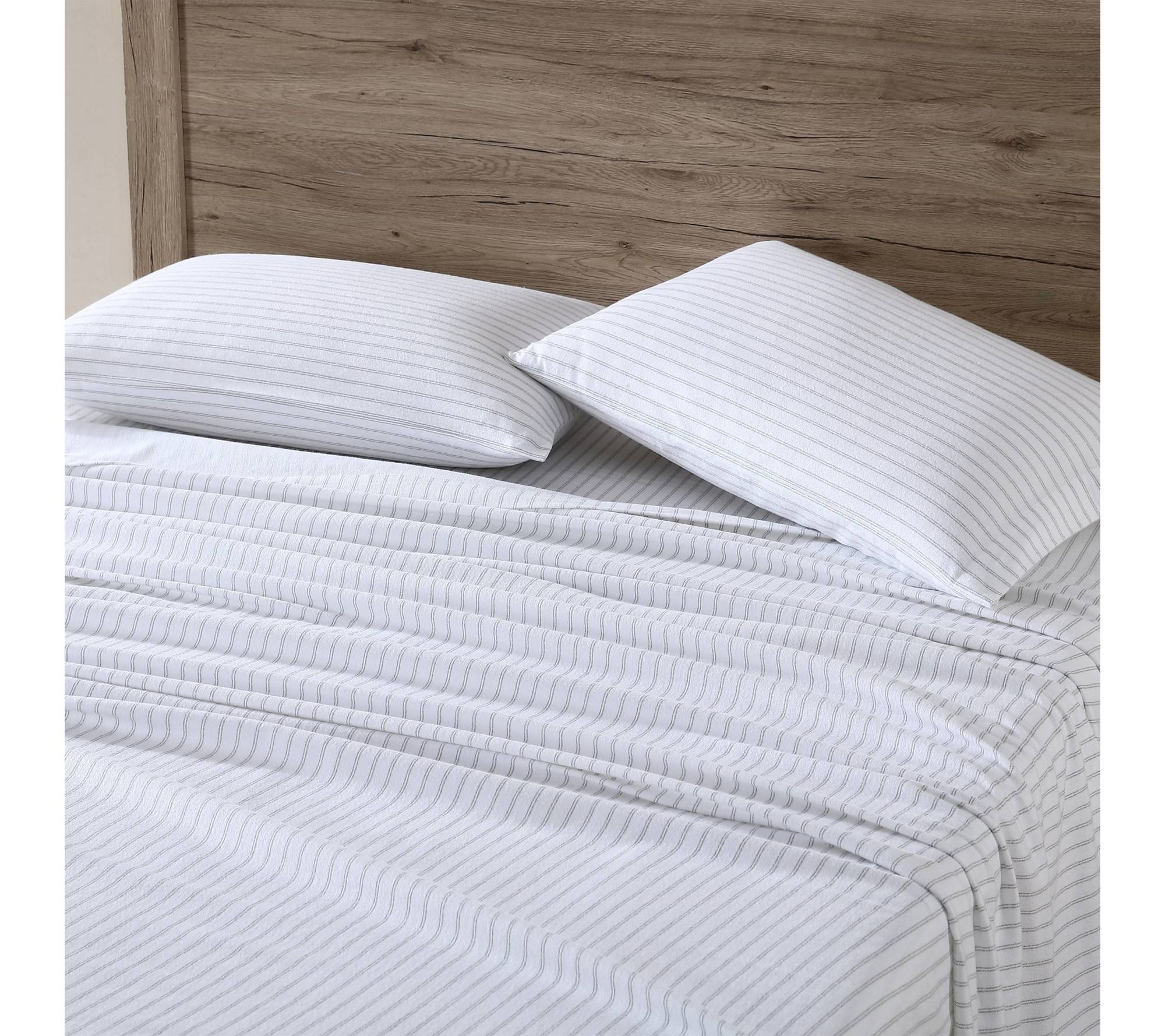 Whether it's a weekend of lounging or settling in after a long day, this cotton sheet set brings a touch of comfort to your Twin bed. Soft and cozy, the brushed texture keeps you warm through chilly nights while the classic stripe pattern adds a fresh update to your space. From Eddie Bauer.