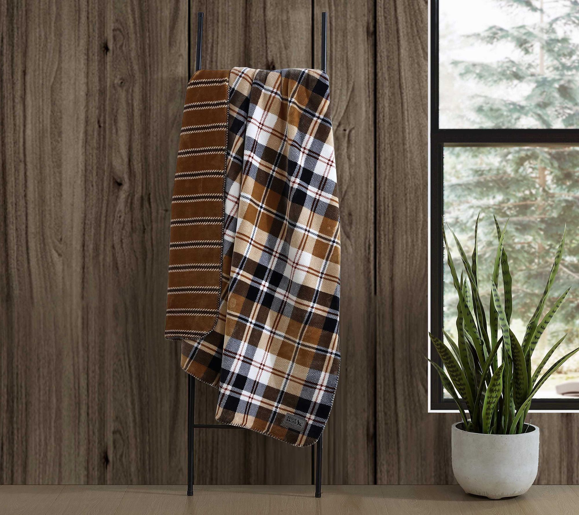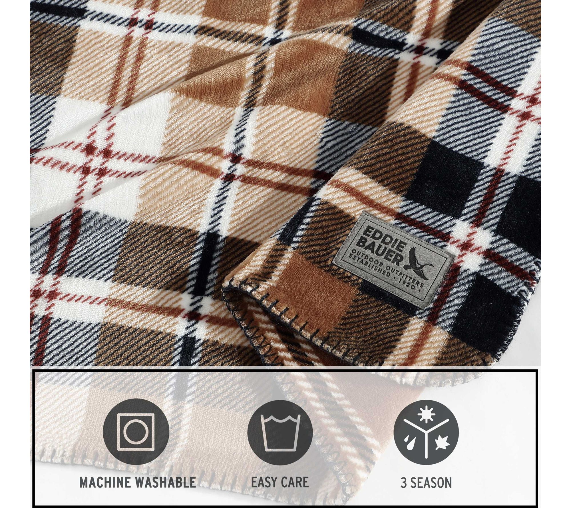 Enjoy cozy nights indoors or playful afternoons on the porch wrapped in the inviting warmth of this full/queen plaid blanket. The reversible design offers two stylish looks in one, making it simple to switch up your decor whenever the mood strikes -- ideal for relaxing with a good book or layering on your bed for added comfort. From Eddie Bauer.