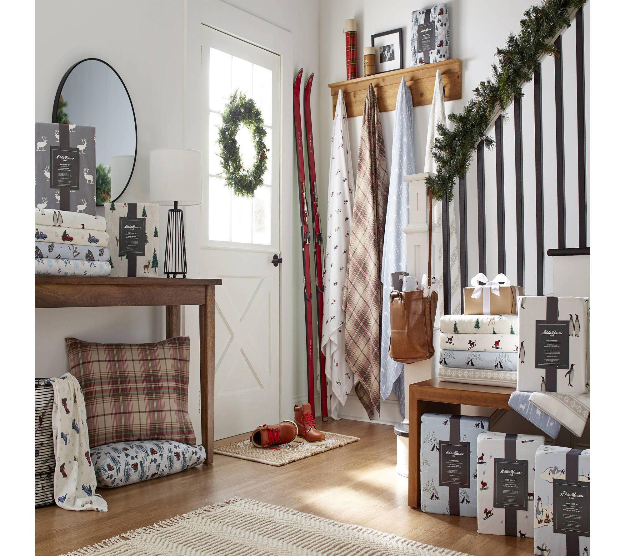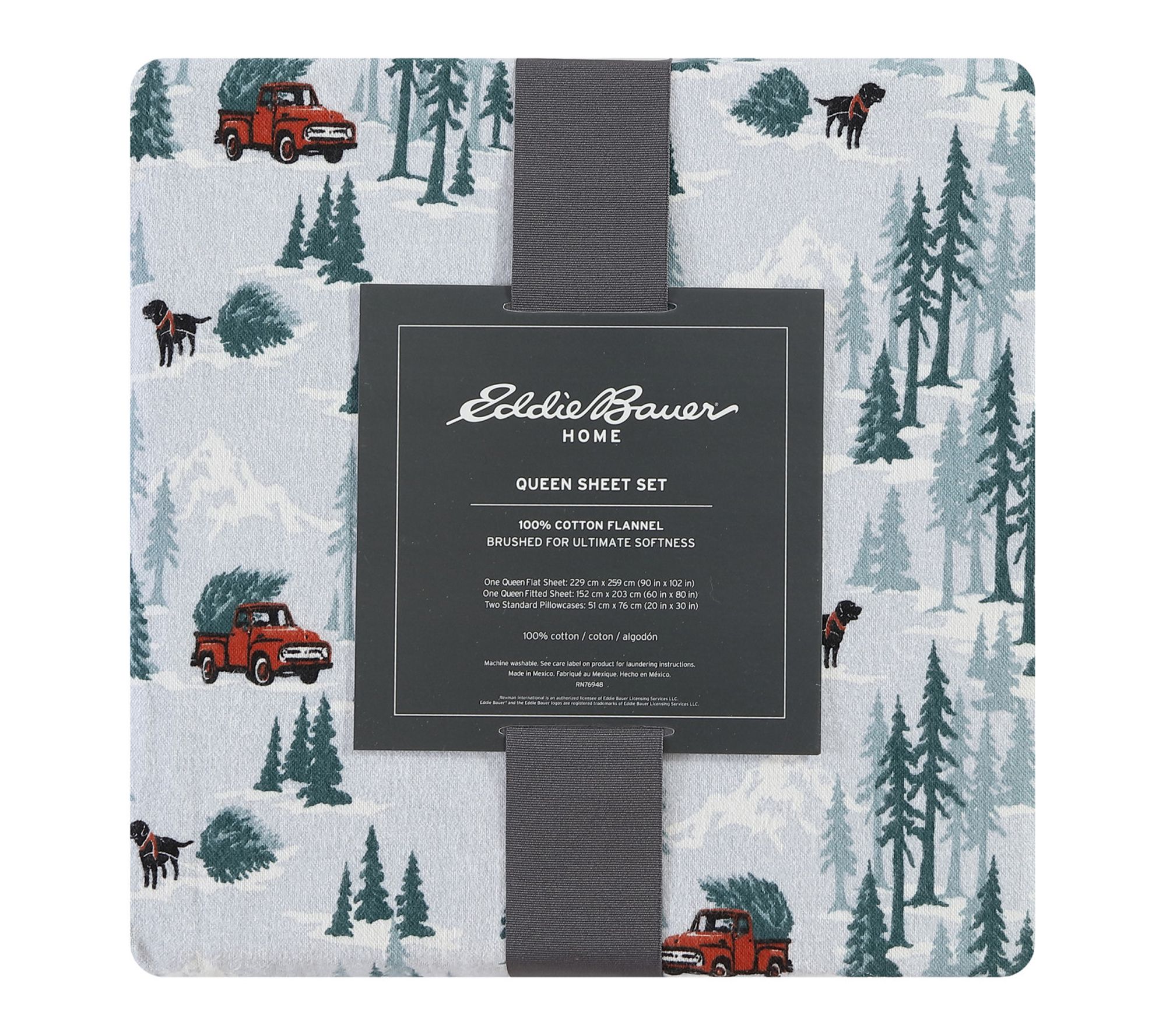 Transform your bedroom into a cozy retreat with this Eddie Bauer cotton queen sheet set, featuring a charming tree farm design. The brushed flannel texture offers inviting warmth and softness for restful nights, while deep pockets keep your sheets securely in place -- even on thicker mattresses. Enjoy comfort and style that lasts, season after season. From Eddie Bauer.