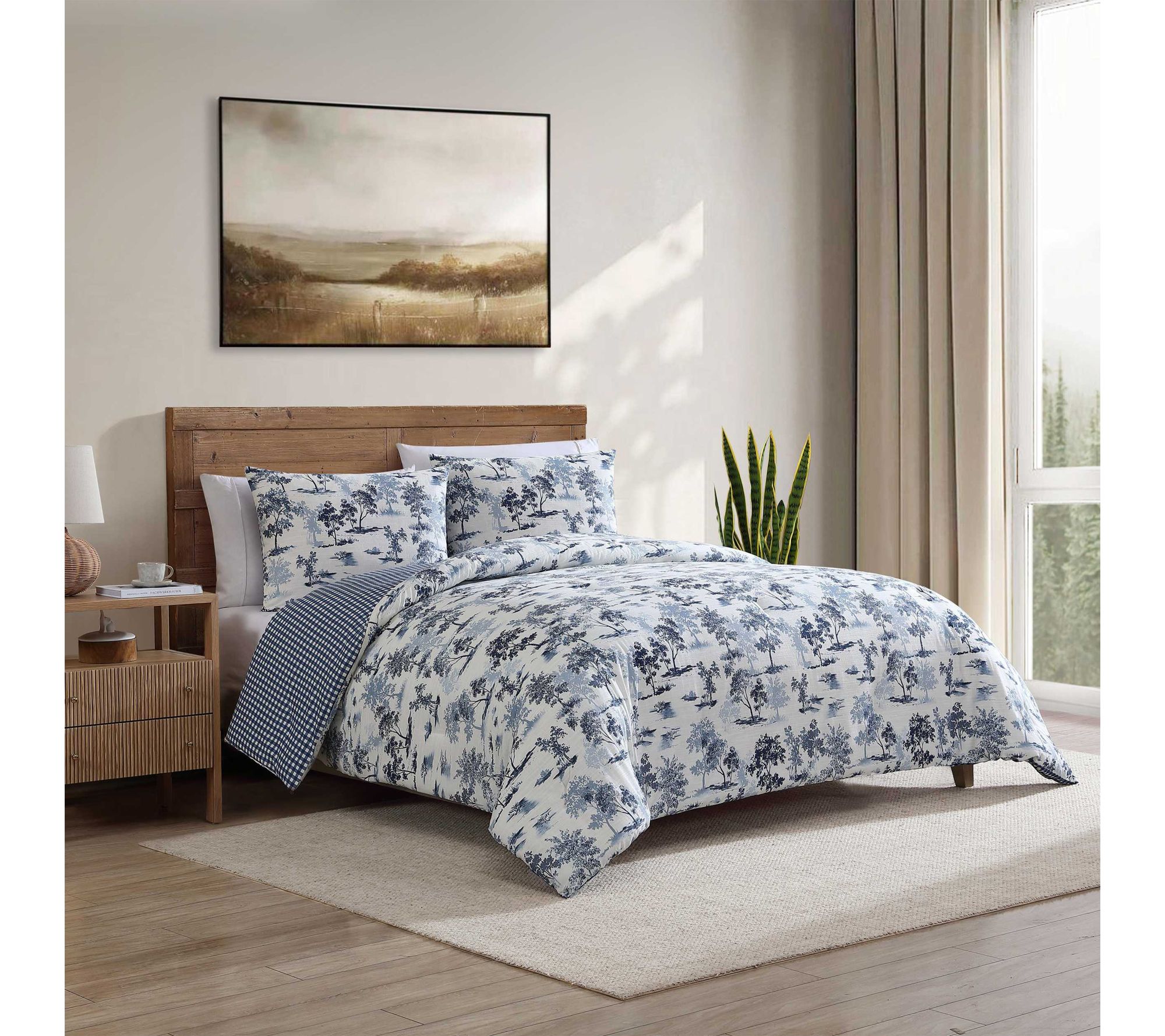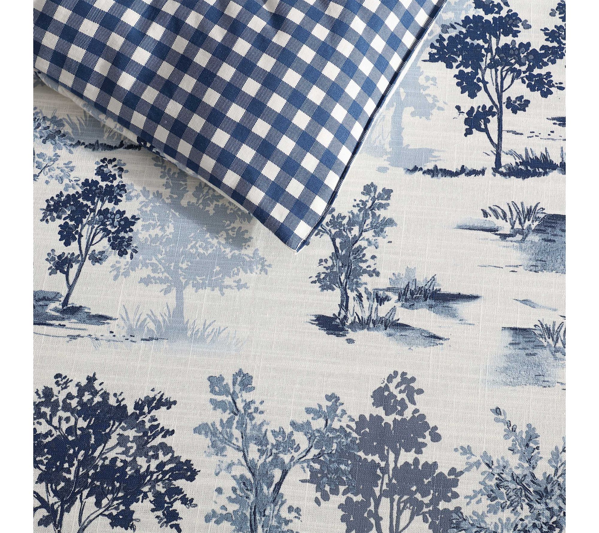 Eddie Bauer Vintage Blue Toile Cotton King Comforter Set