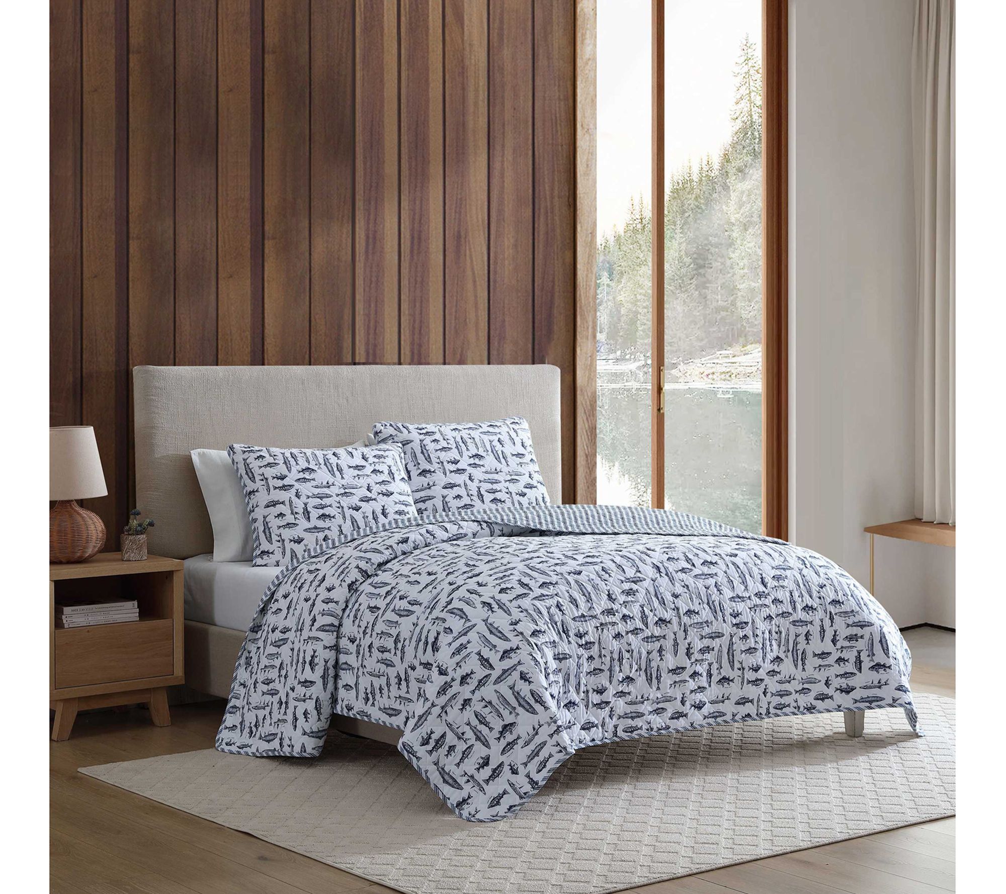Eddie Bauer Wes Fish Blue Twin Quilt Sham Set