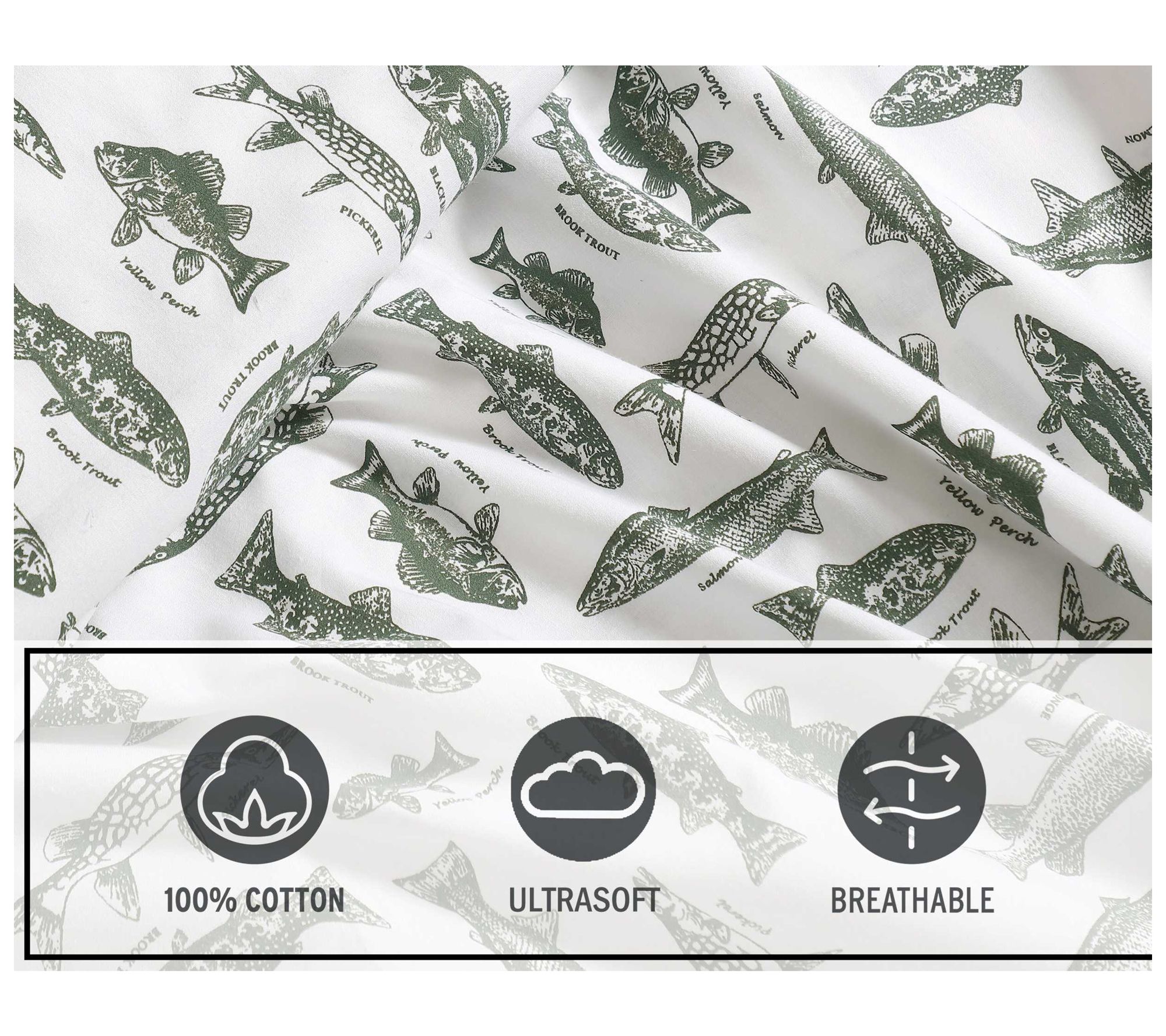 Bring a touch of the outdoors to your retreat with this Eddie Bauer Wes Fish full sheet set, featuring a crisp percale finish and playful green fish design that invites peaceful, year-round comfort. The relaxed style pairs effortlessly with rustic or nature-inspired decor, making your room feel like a cozy hideaway. From Eddie Bauer.