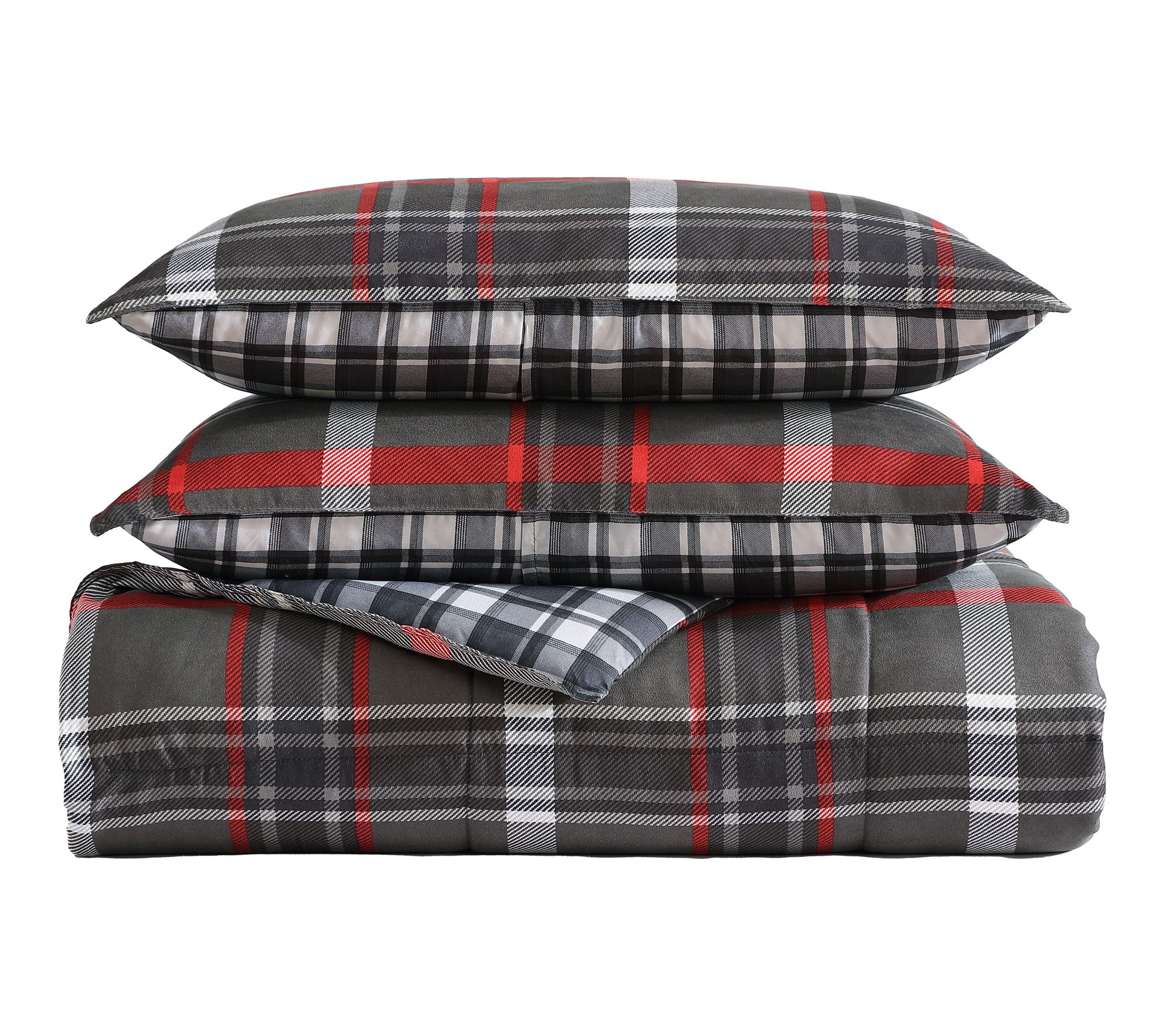 Eddie Bauer Willow Plaid Grey Textured Twin Comforter Set