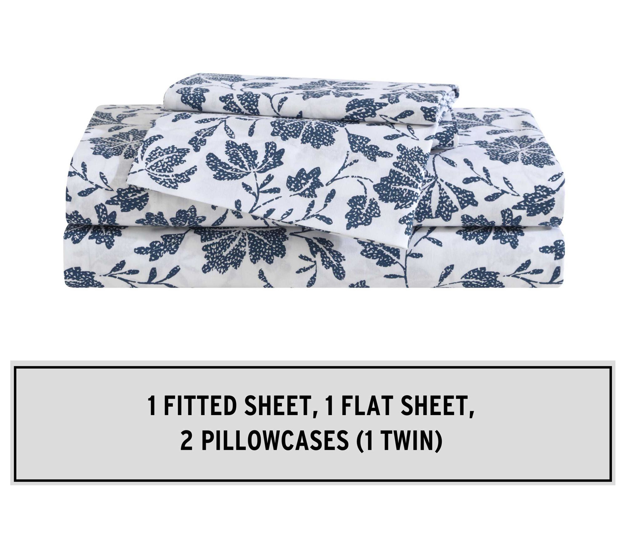 In Eddie Bauer's woodblock floral sheet set, crisp cotton and a charming white-and-blue floral pattern come together to create the perfect dreamy retreat. The set is designed for easy care and a great fit, with a fully elasticized fitted sheet that stays snug. From Eddie Bauer.