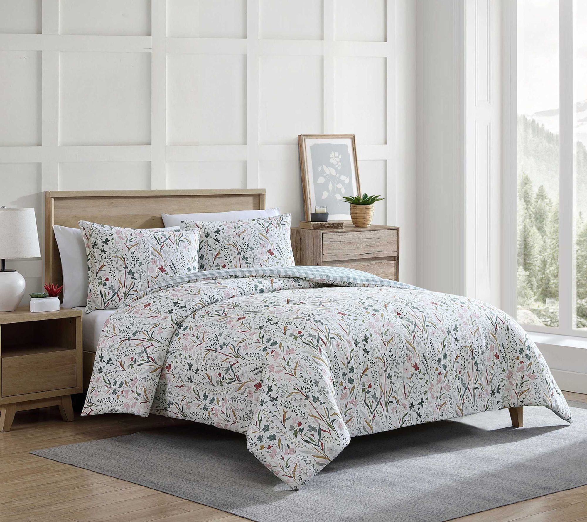 Bring the beauty of wildflowers to your space with the Woodland Forest comforter set, featuring a textured cotton fabric in a vibrant multi-color floral print on one side and a coordinating plaid on the reverse. Whether layered for extra warmth or styled solo for a statement look, this set offers versatility and a modern, cozy charm. From Eddie Bauer.