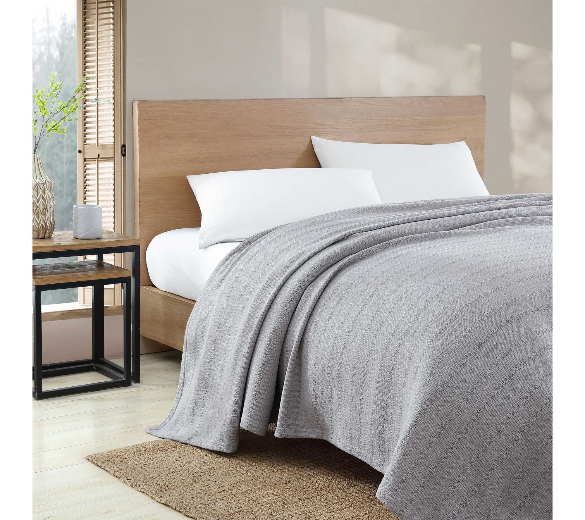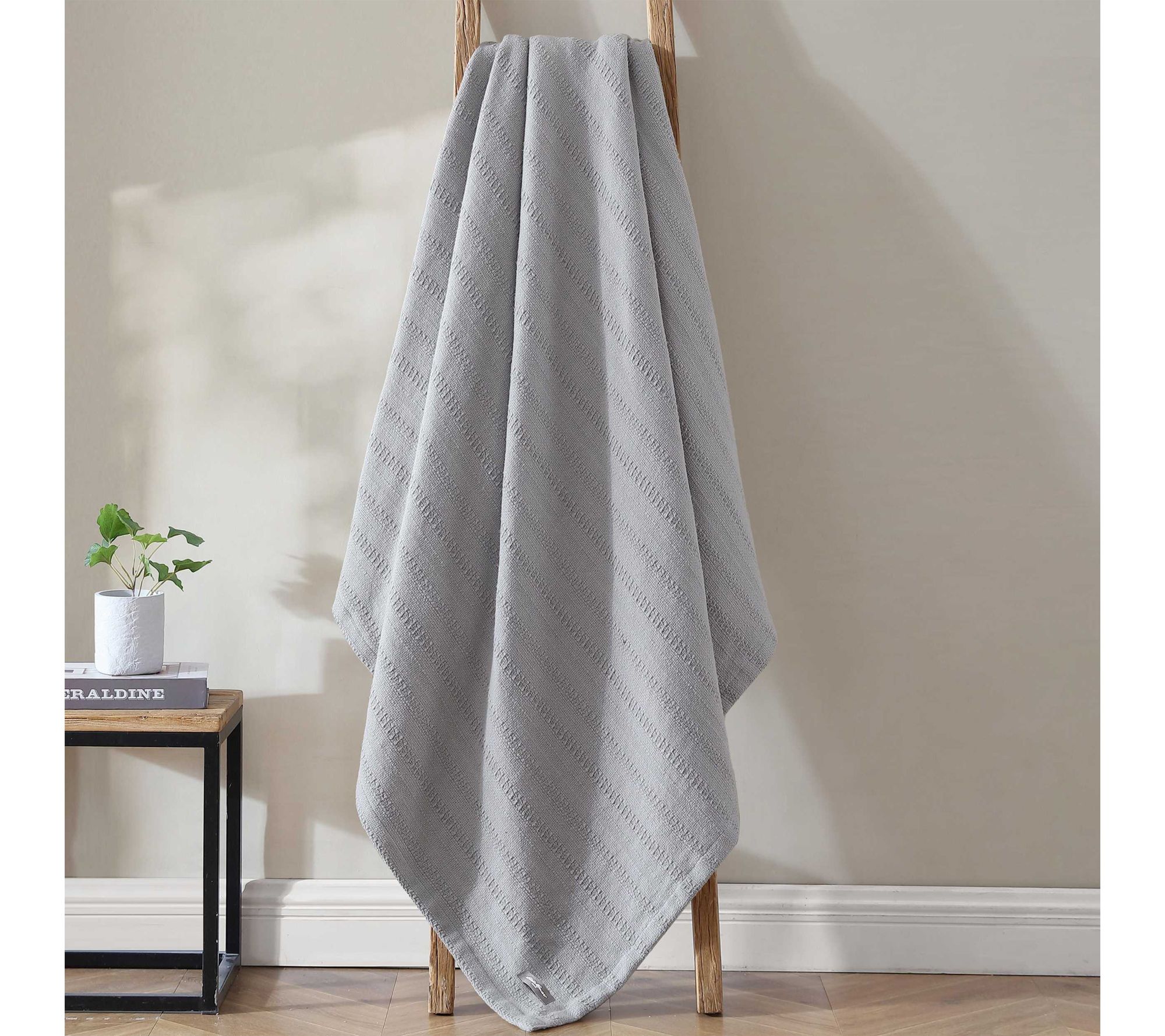 Eddie Bauer Woven Stripe Grey Cotton Twin Blanket