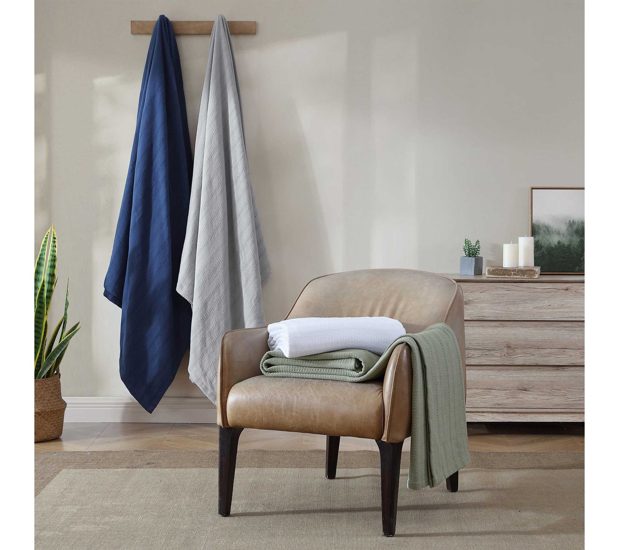 Bring a touch of effortless style and comfort to your bedroom with this woven stripe cotton blanket. Its medium weight and variegated weave create a cozy layer that's easy to fold at the end of your bed or drape over your favorite chair. The classic pattern blends seamlessly with a range of color palettes and is simple to keep clean. From Eddie Bauer.