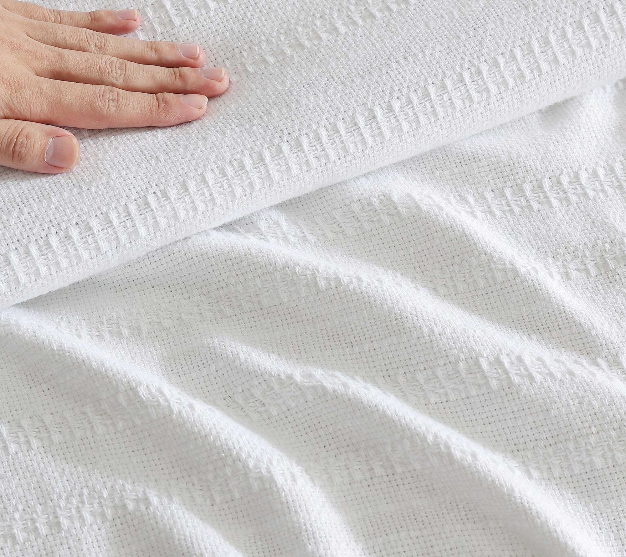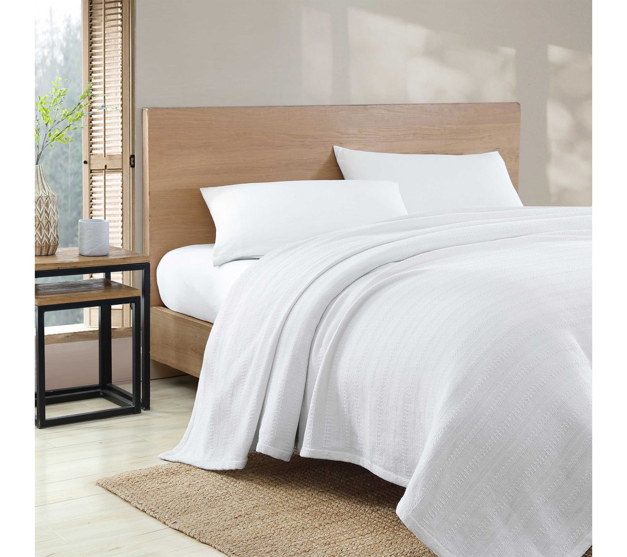 Eddie Bauer Woven Stripe White Cotton King Blanket