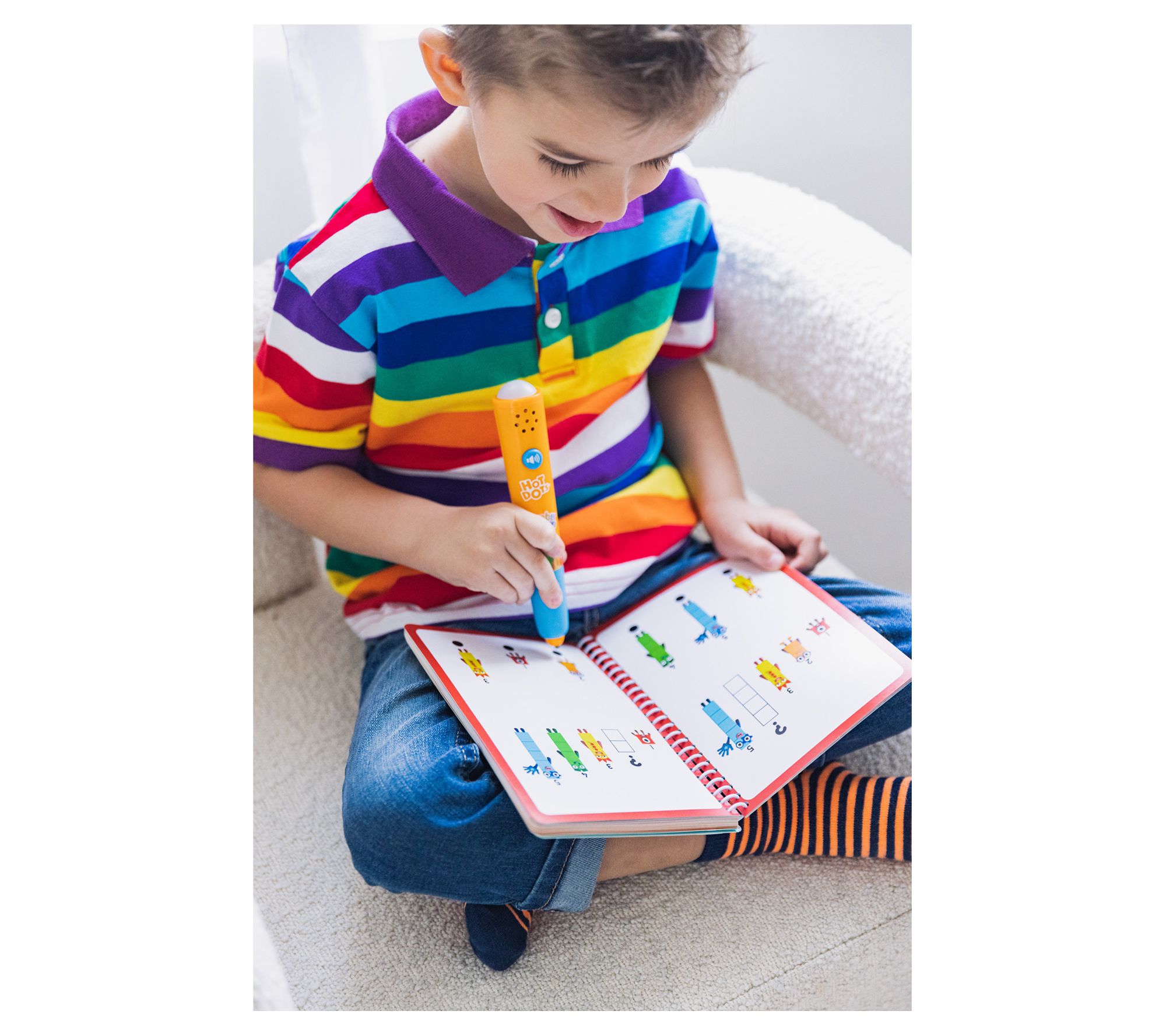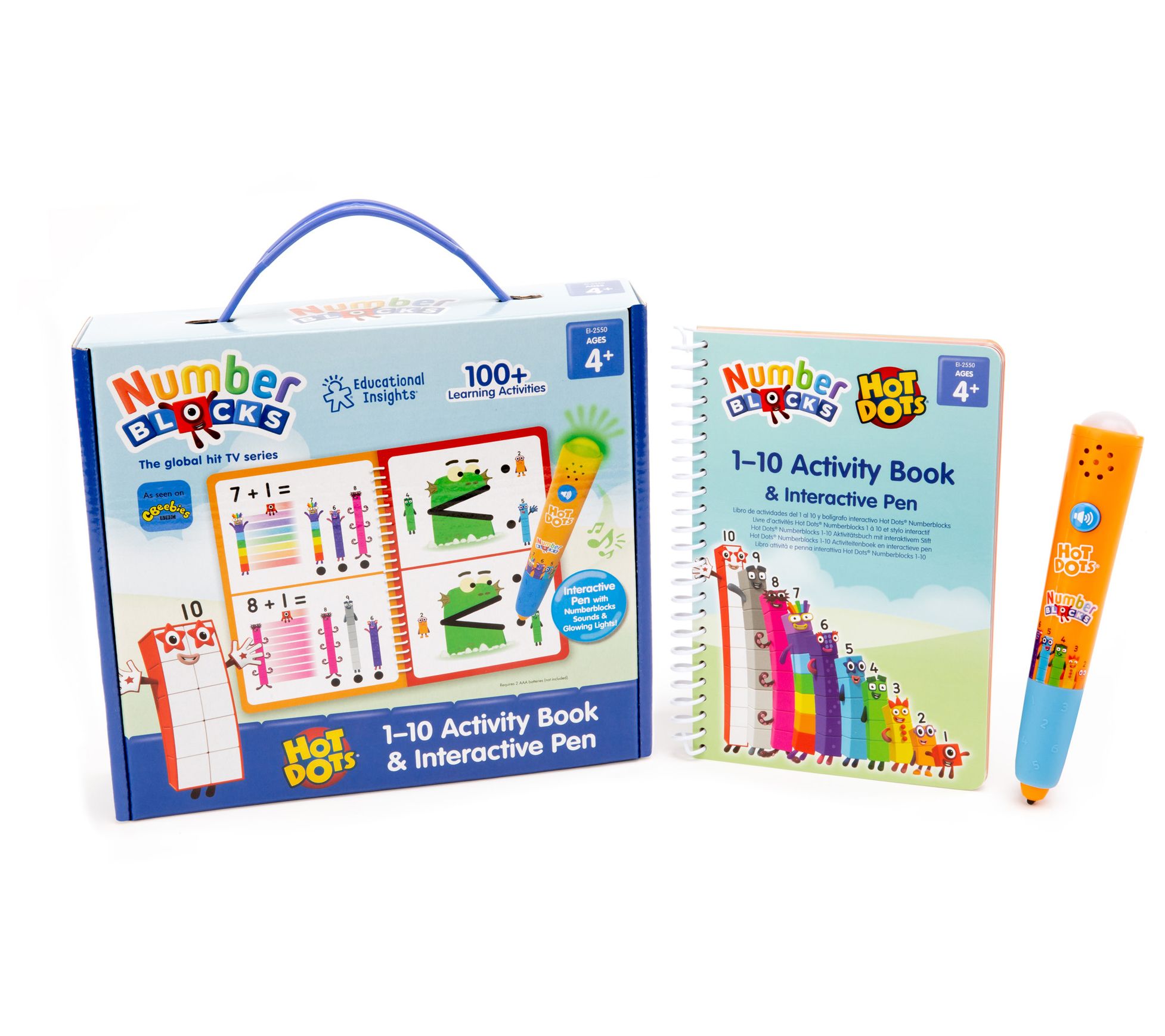From counting to early addition and subtraction skills, the Numberblocks interactive workbook makes math fun! It comes with a Hot Dots pen so kids get immediate feedback and audio reinforcement as they learn. From Educational Insights.