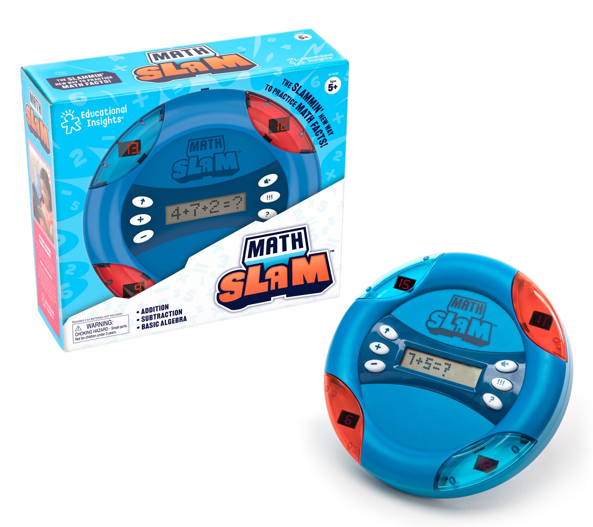 Whether you're gathering for family game night or giving your little learner extra practice on the go, this dynamic handheld brings math skills to life. Lights, sounds, and five interactive games encourage friendly competition, with a mute option for quieter moments. Kids can challenge themselves or a friend as they build confidence and speed through addition and subtraction. From Educational Insights.