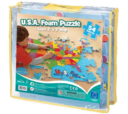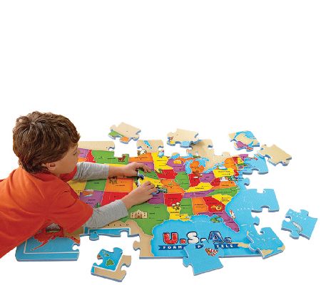 As easy way to learn about the USA. This large, colorfully illustrated foam map puzzle is great for teaching kids all about America's states, capitals, landmarks, animals, and more. From Educational Insights.