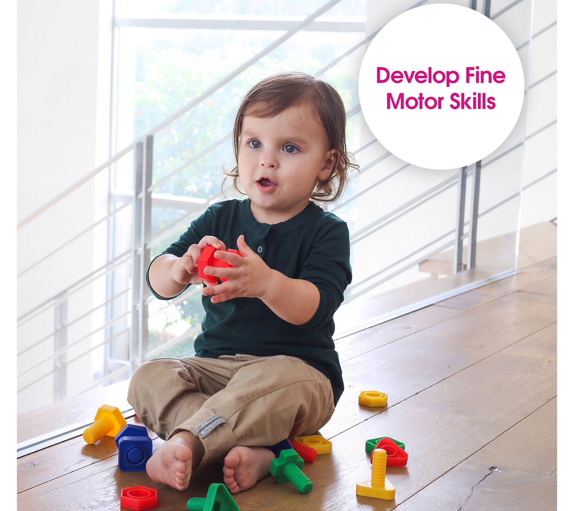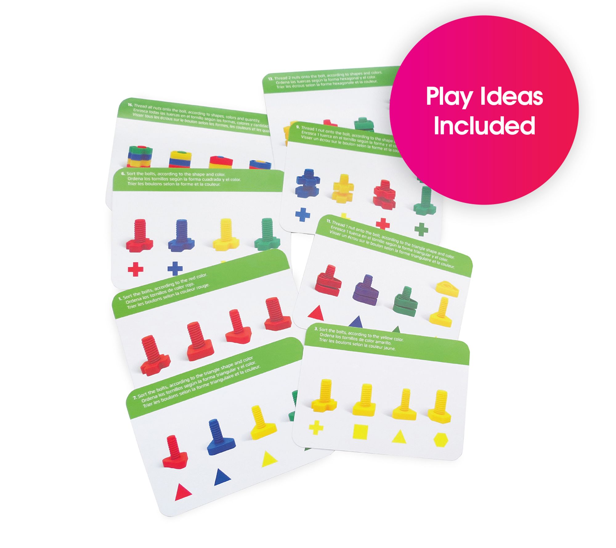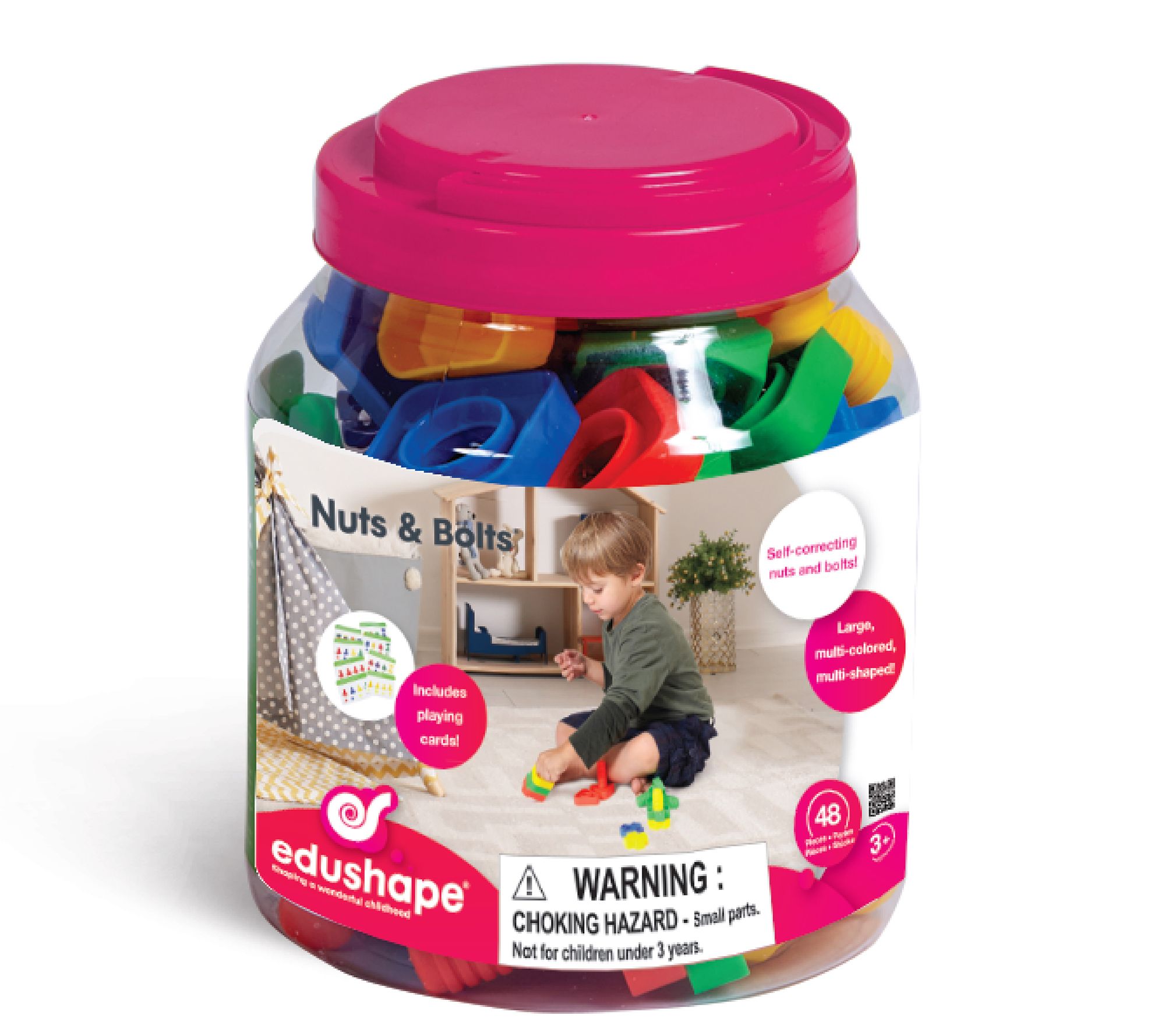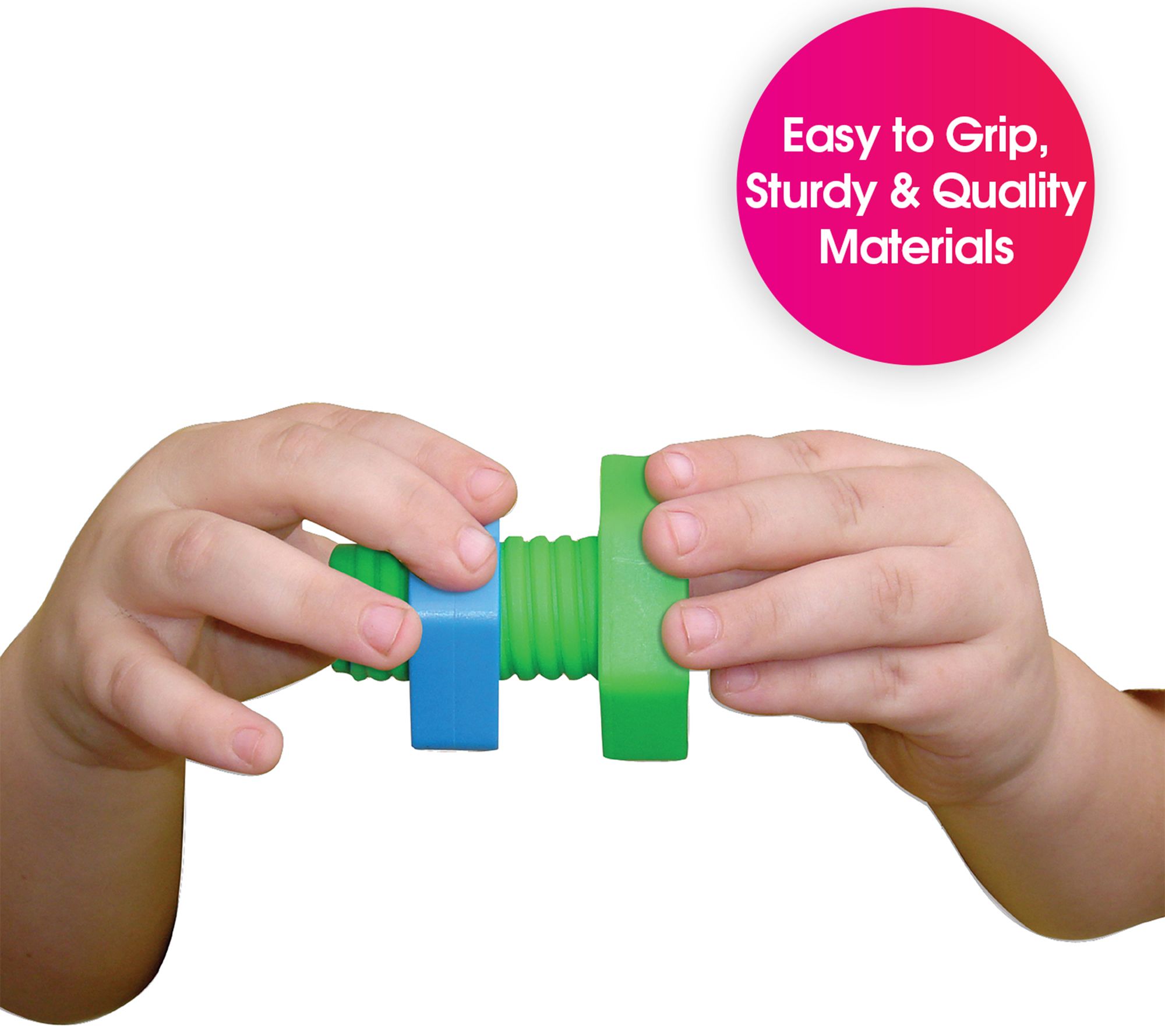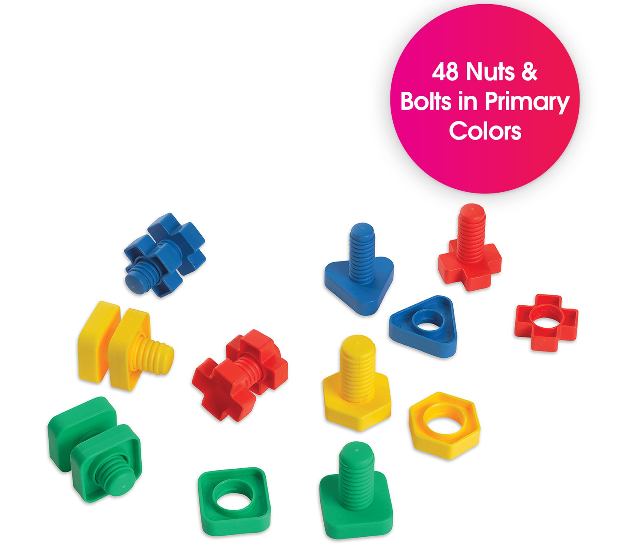 Use these oversized geometrically-shaped nuts and bolts to promote bilateral coordination, motor planning, hand-eye coordination, color recognition, as well as fine and motor skills for your little one. From Edushape.