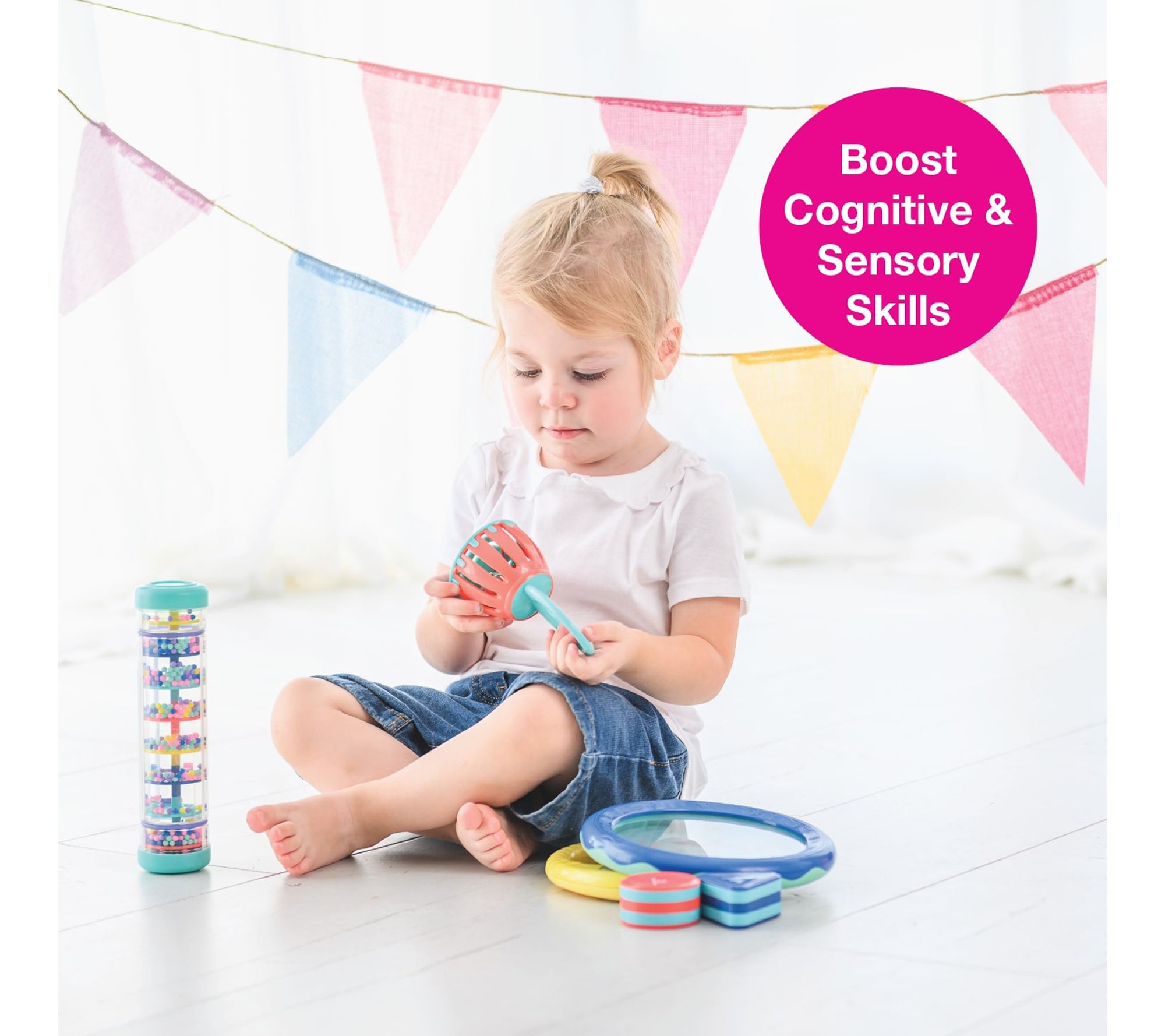Celebrate their big milestone with this engaging musical toys gift set, designed to spark curiosity and delight with every shake, tap, and rattle. From gentle rainstick sounds to the vibrant rhythms of a Sea World Drum and shakers, little hands can explore and experience joyful play while creating their own tunes. From Edushape.
