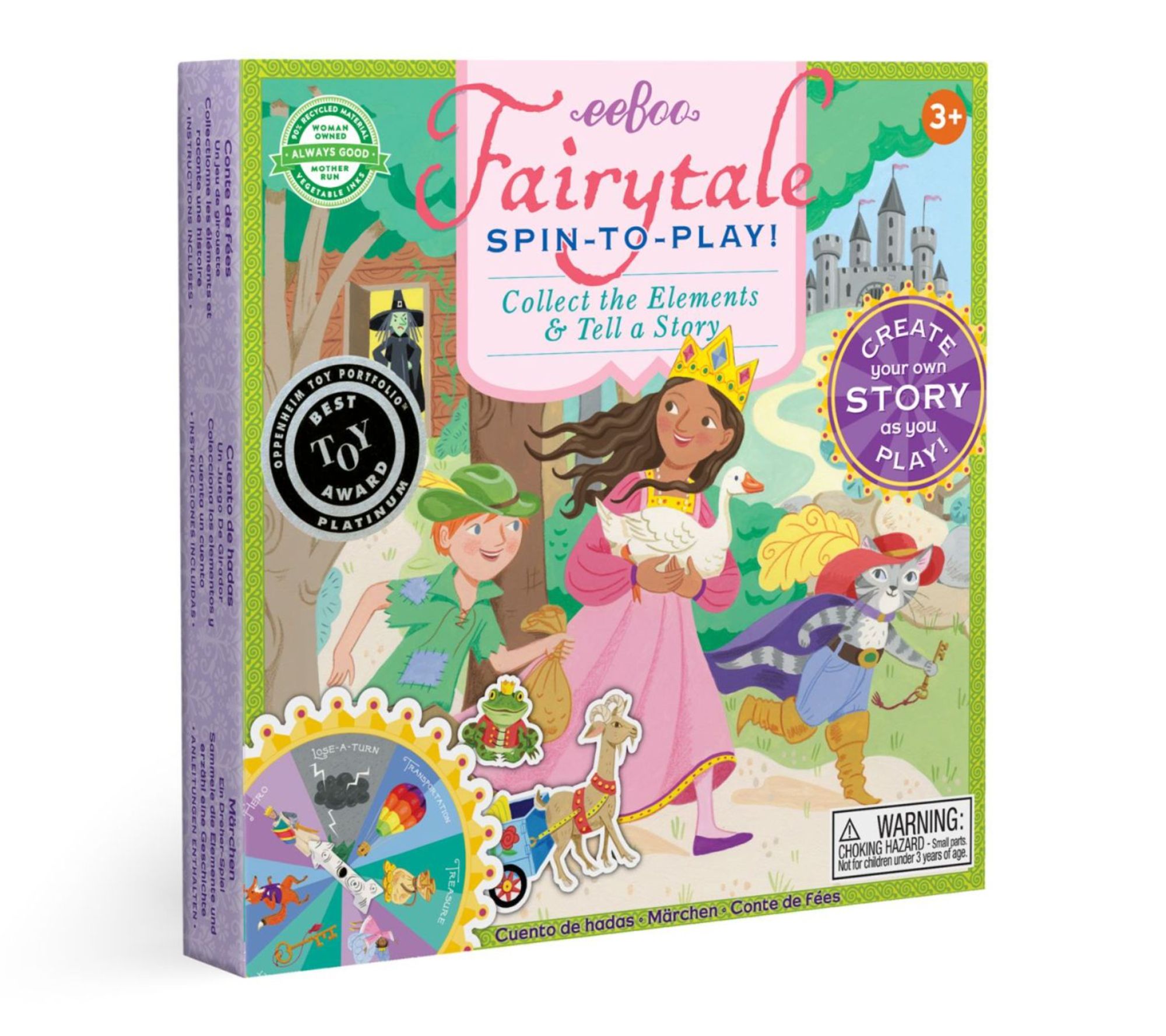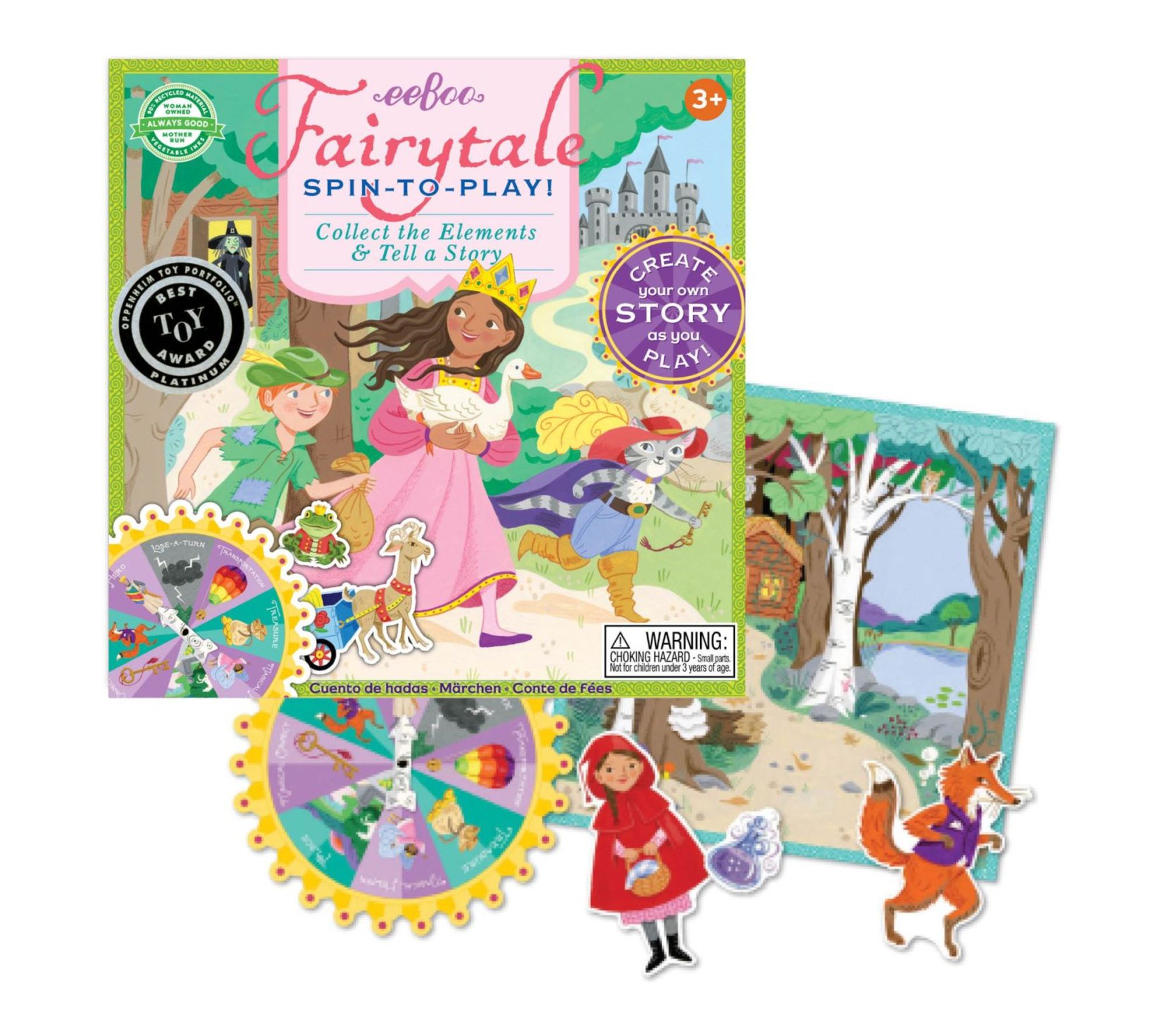 Every game night transforms into a world of wonder with this imaginative board game, where players spin to gather story elements and bring their own fairytale adventures to life. Enjoy bonding moments as creativity flows and tales unfold -- watch as compassion and teamwork are woven into playtime. From eeBoo.