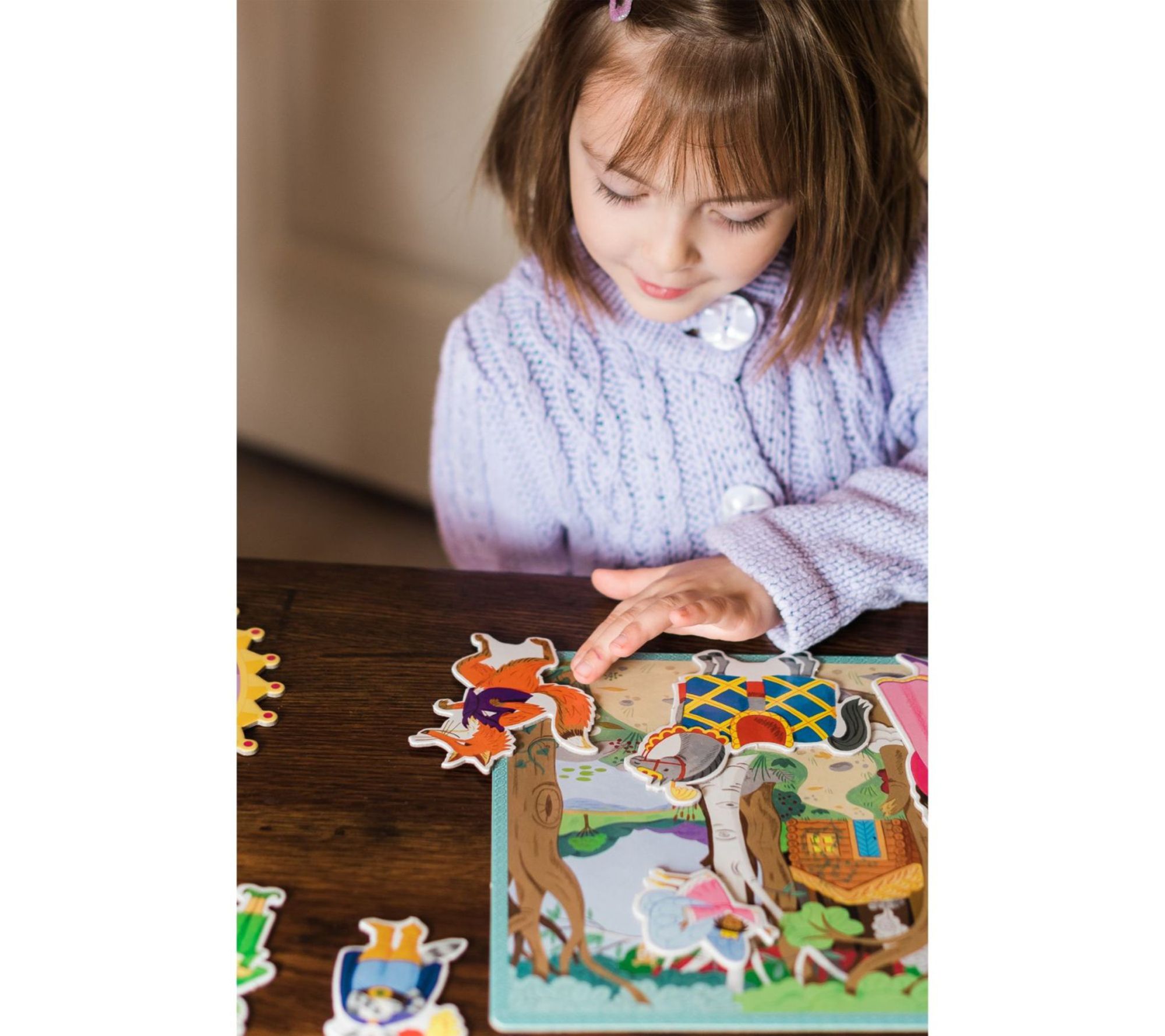 • Includes 4 heroes, 4 rivals, 4 helpers, 4 magical objects, 4 means of transport, 4 treasures, 4 fairytale places, and 4 game boards