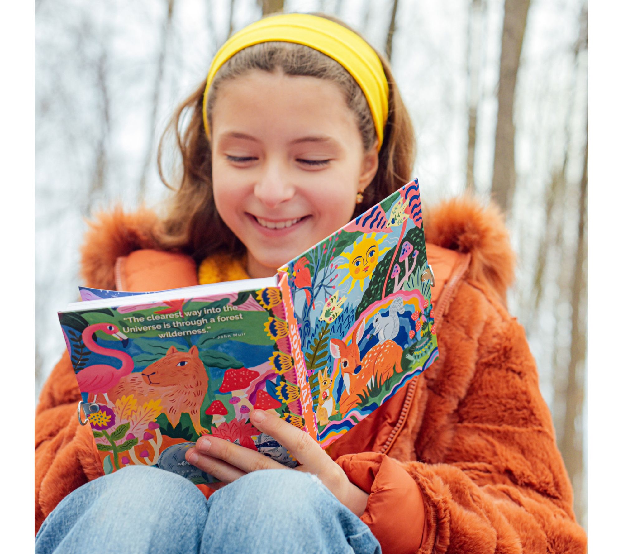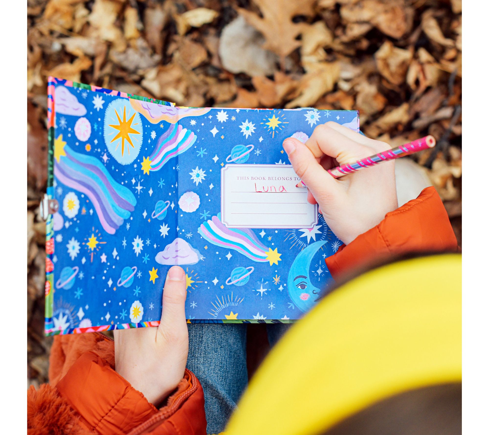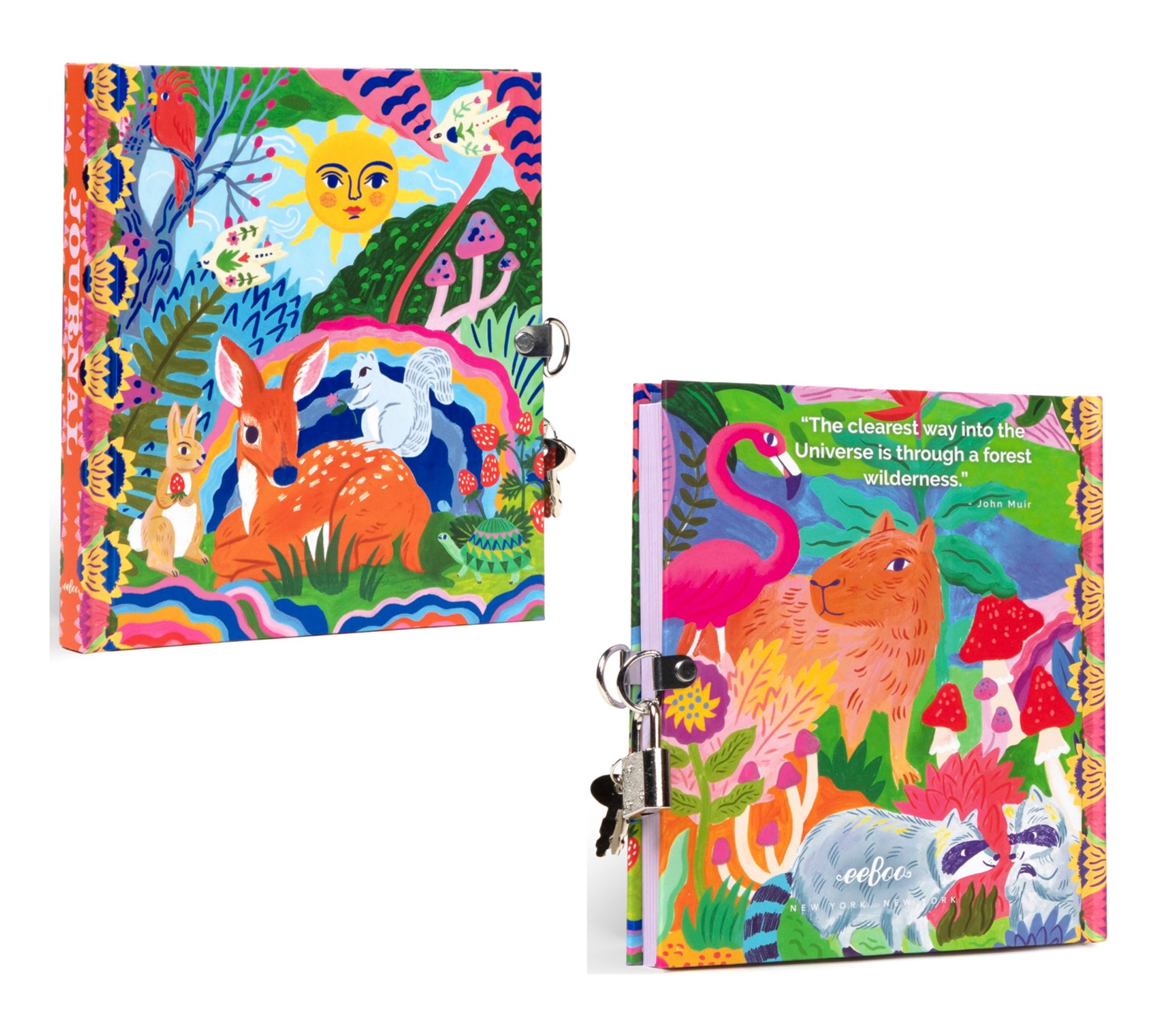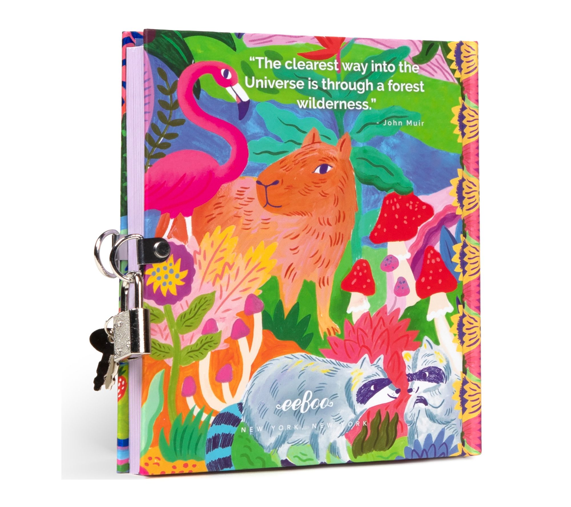 Let your little one dive into a world of creativity with this animal-themed locking diary, featuring a shimmering foil-stamped cover and lively illustrations. It's an inviting space for recording dreams, telling stories, doodling, or reflecting on daily adventures, while the lock and two keys keep their writings safe and private. From eeBoo.