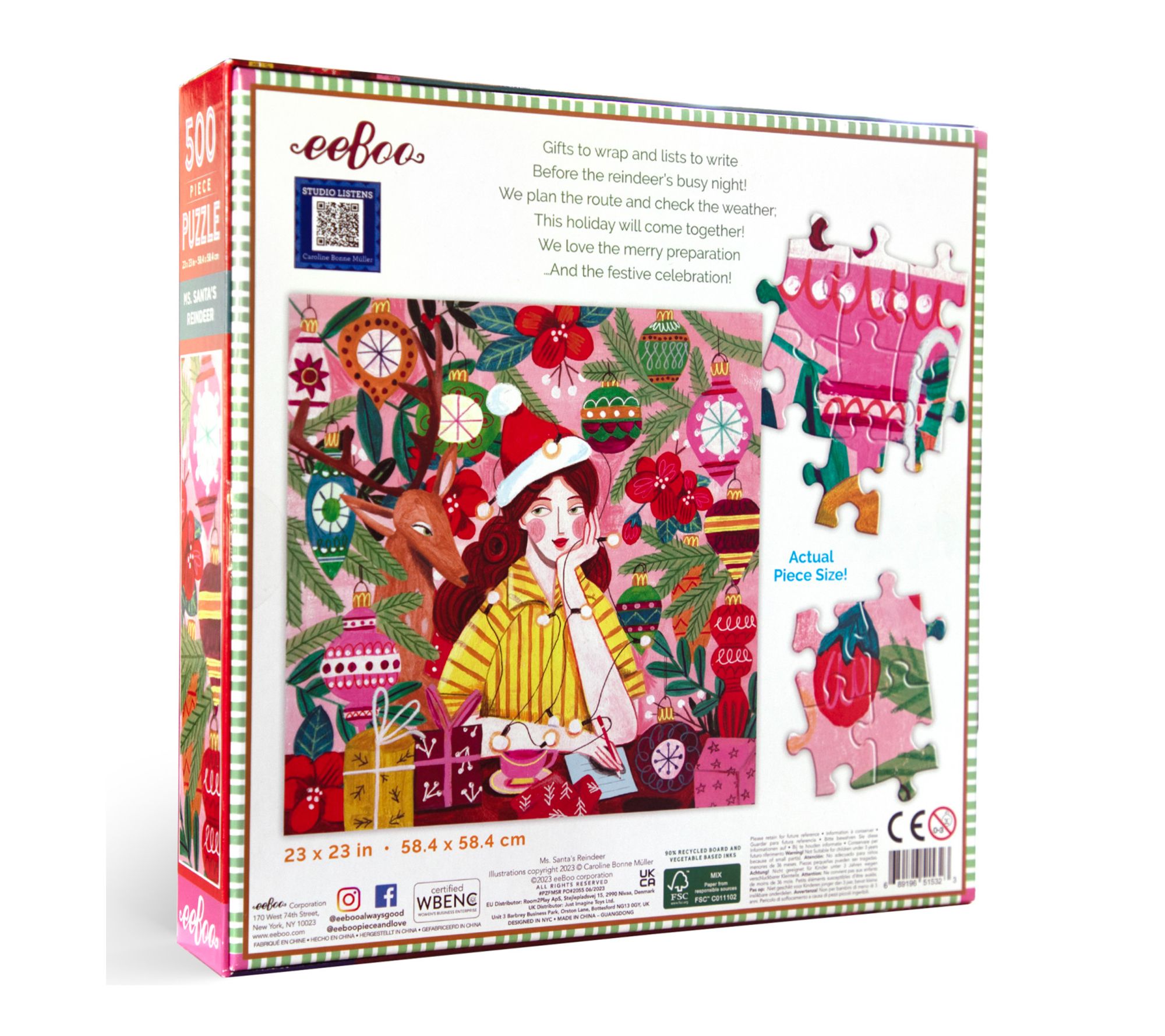 eeBoo Piece & Love Ms. Santa's Reindeer 500 Piece Puzzle
