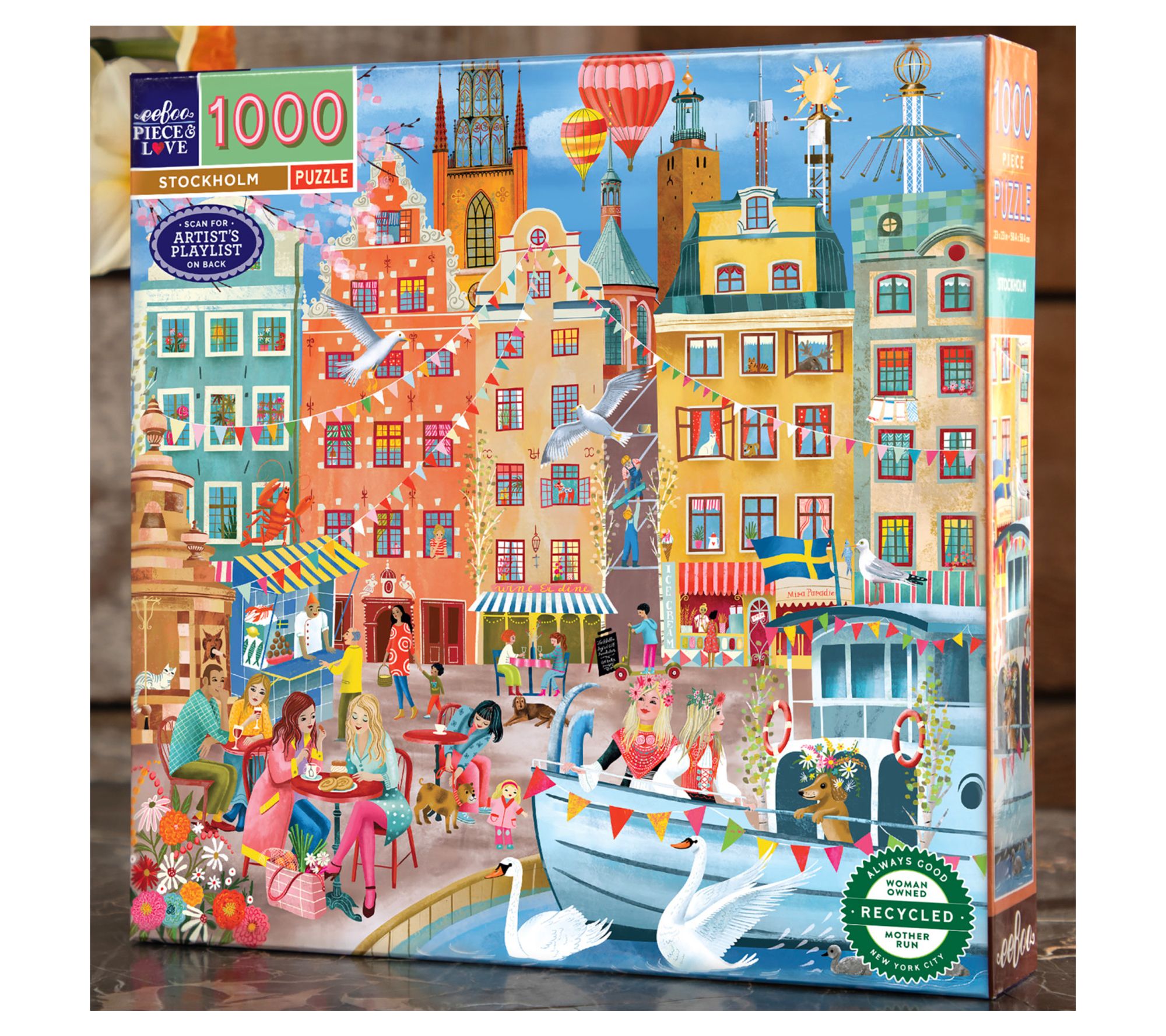 Solving this vibrant puzzle brings the lively cityscape of Stockholm right to your table, inviting friends and family to join in on the challenging fun. Detailed artwork and glossy, durable pieces keep every session smooth and dust-minimized, while the included image reference and curated playlist add a creative twist to your experience. From eeBoo.