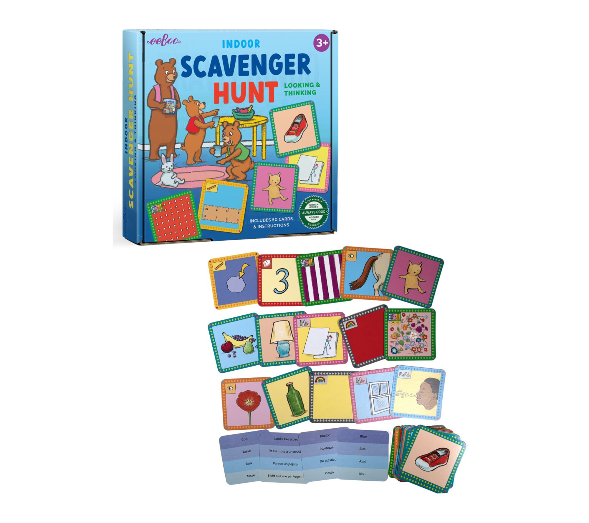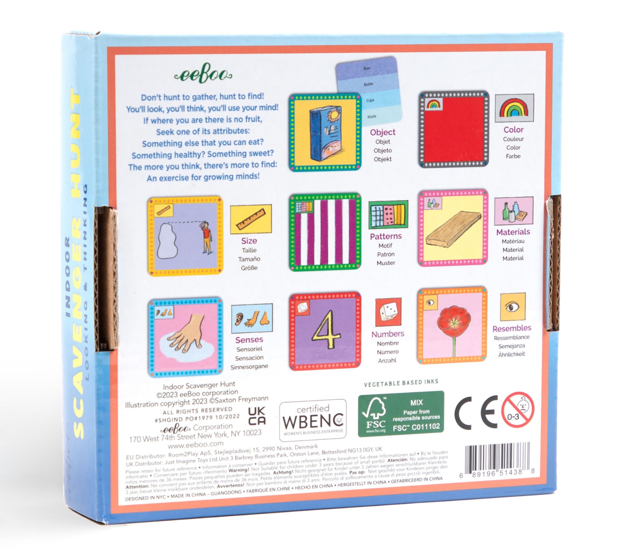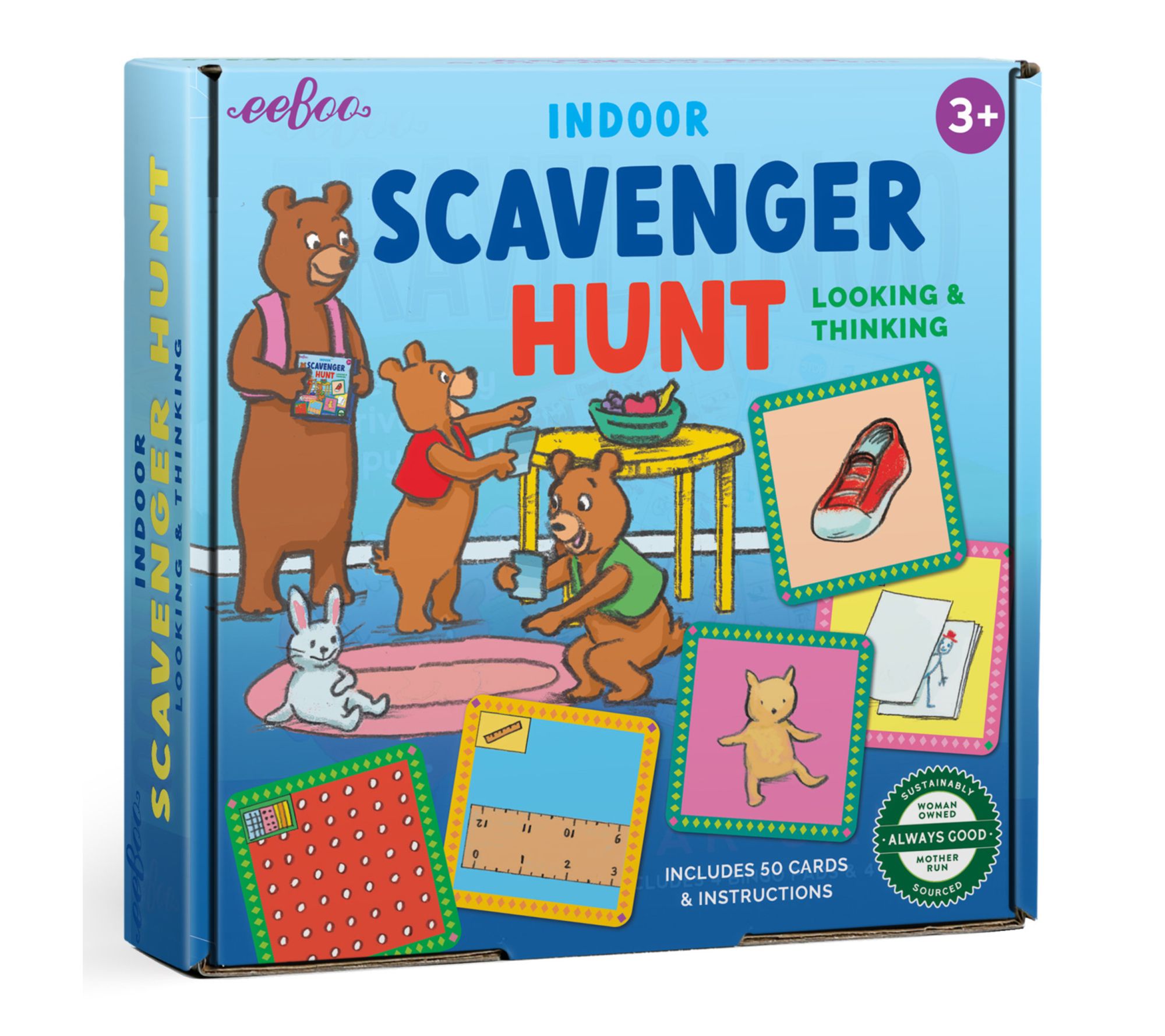 Inspire hours of imaginative play with the eeBoo Indoor Scavenger Hunt Board Game! Designed for kids ages 3 and up, this exciting finding game sparks curiosity and develops observation and analytical skills. Instead of collecting objects, little explorers search for common items or their features -- think colors, textures, sounds, and more -- making it the perfect adaptable activity for any home. From eeBoo.