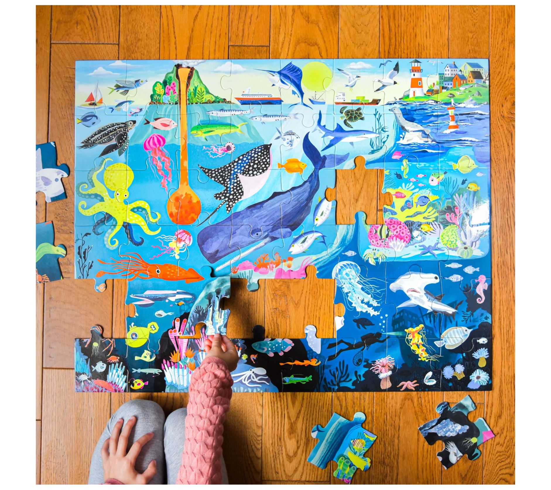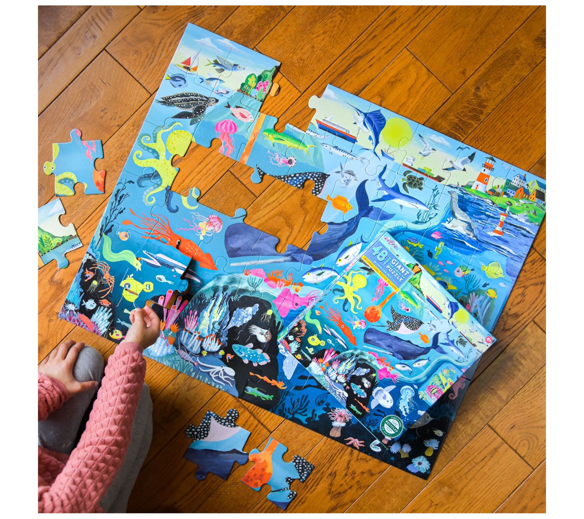Engage your child in a mindful activity and highlight the beauty of the world around them with this 48-piece Within the Sea floor puzzle. From eeBoo.