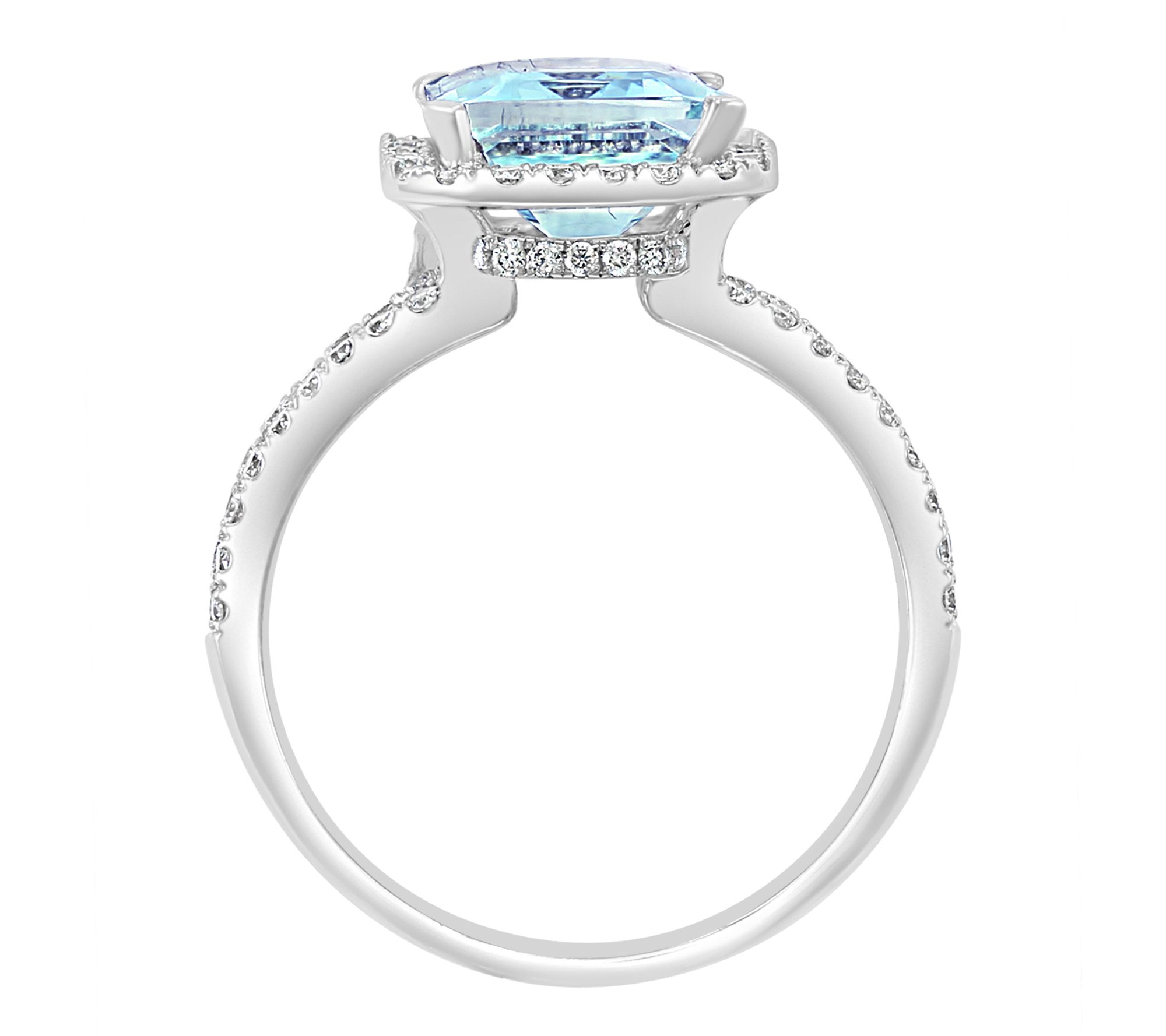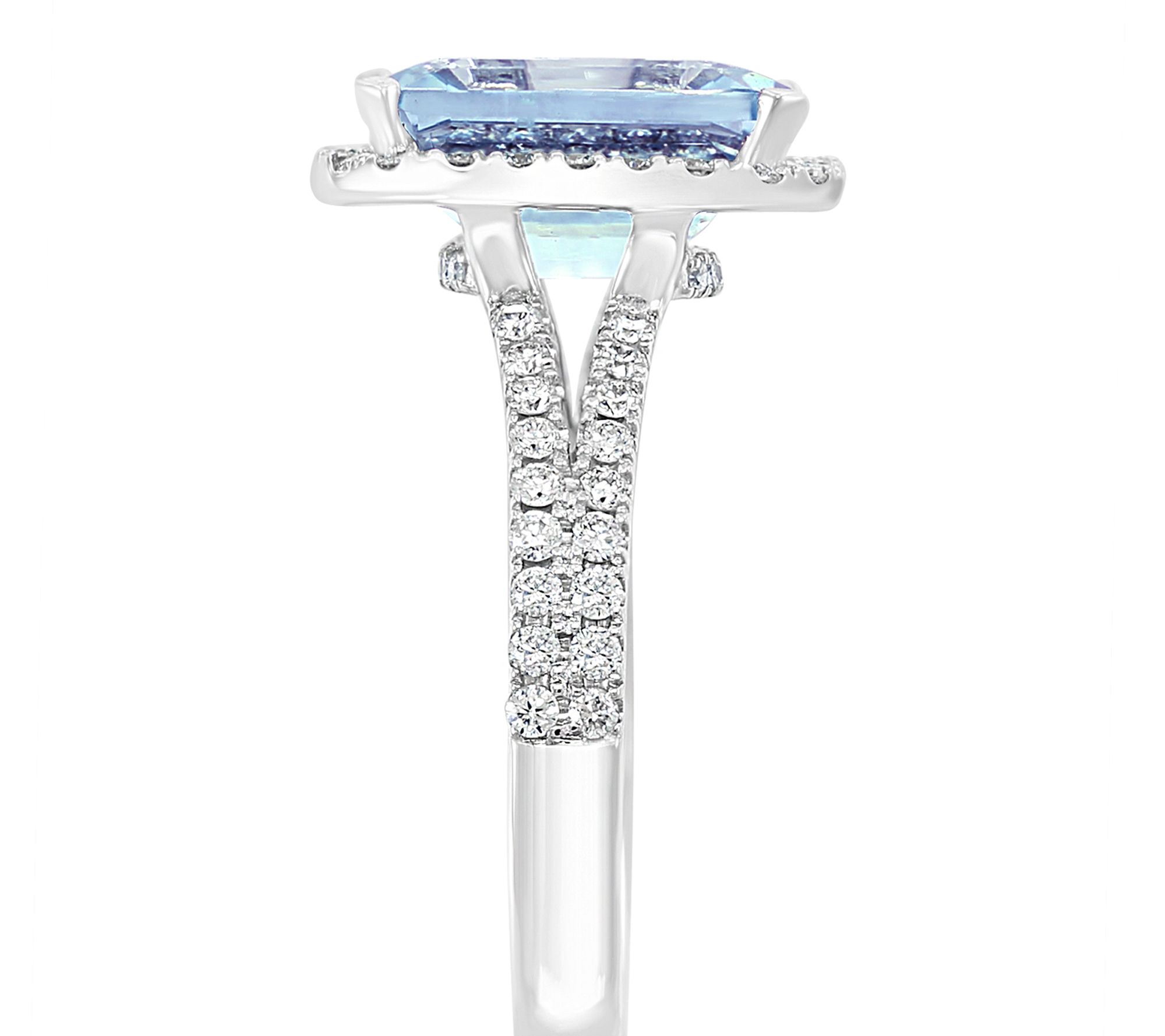 Slip this aquamarine and diamond halo ring on your finger and let every gesture sparkle with a luminous sophistication. A breathtaking emerald-cut aquamarine gemstone is beautifully framed with round diamonds set in 14K white gold -- elevating both your everyday style and your special celebrations. From Effy.