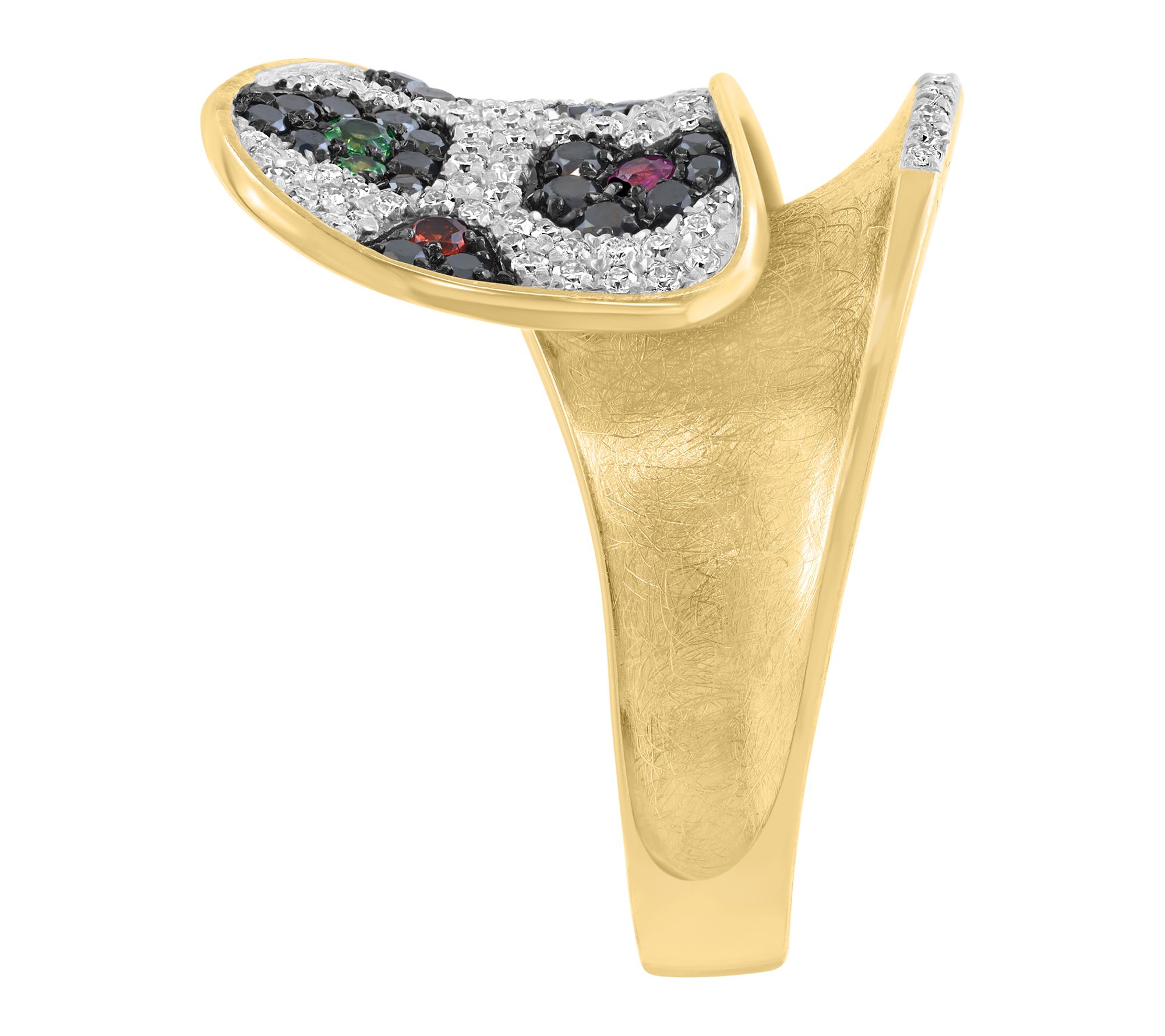Channel the wild spirit of your style with this vibrant 14K gold ring, shimmering with sparkling diamonds, multicolored sapphires, and lush tsavorite. The fierce leopard motif makes a bold statement, infusing any outfit with originality -- whether you're dressing up for a special event or adding sparkle to everyday moments. From Effy.