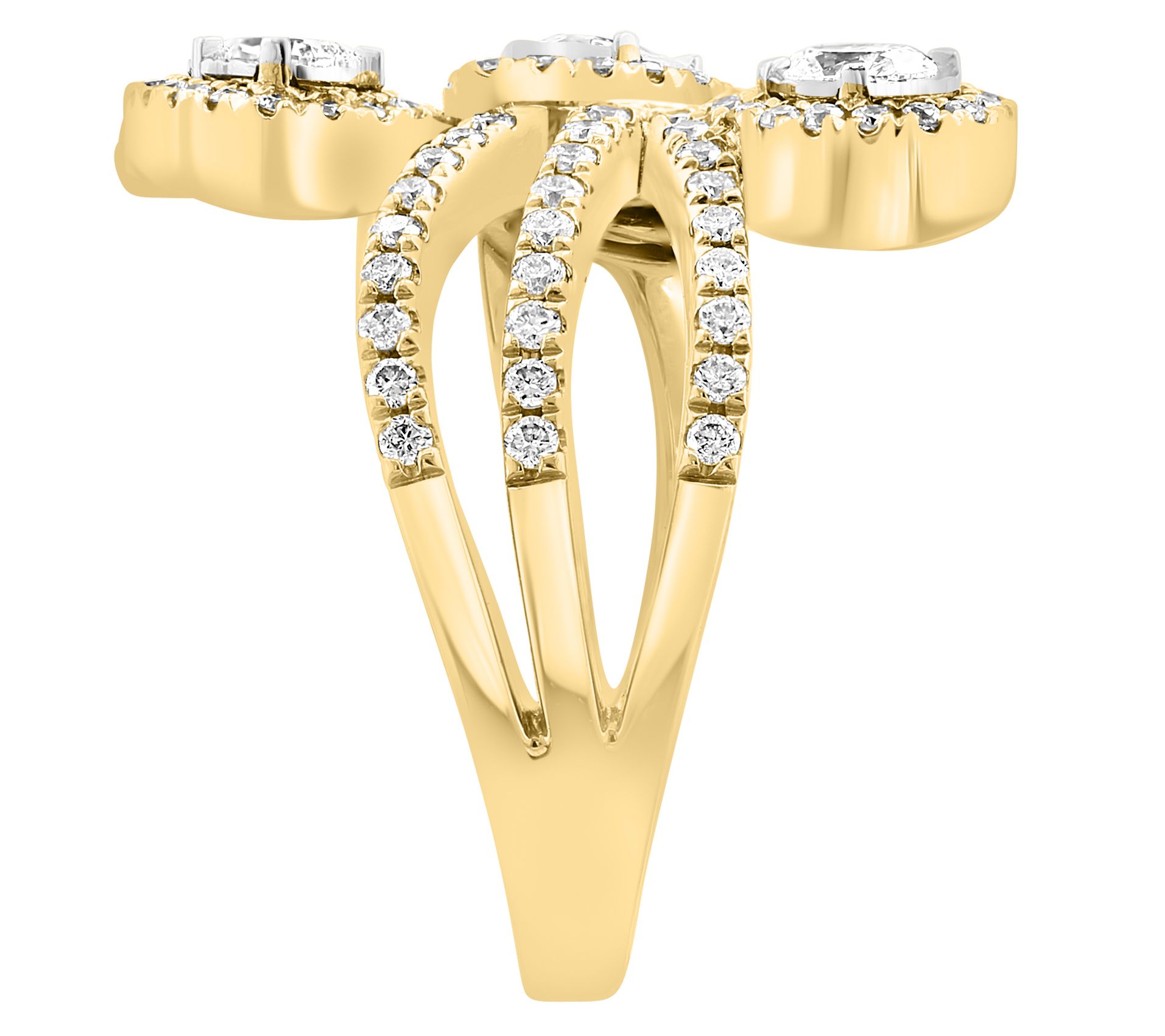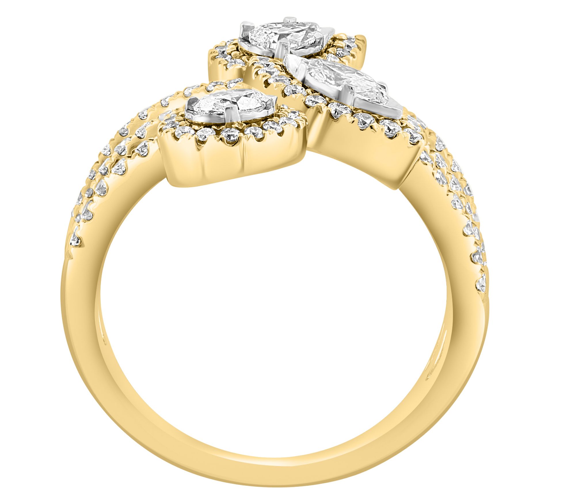 Marquise, oval, pear, and round diamonds; prong and pave setting