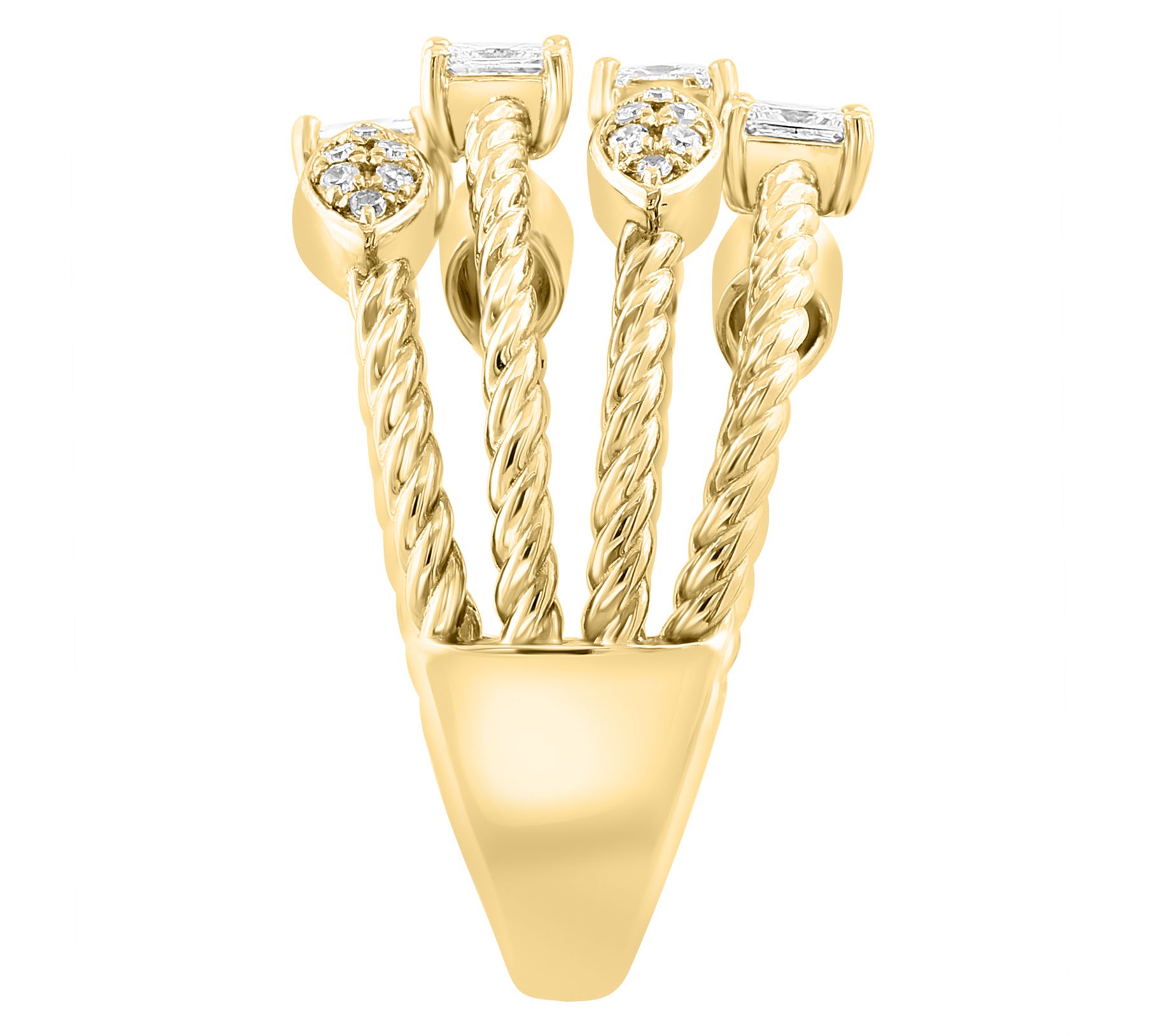 Surprise someone special -- or treat yourself -- to an accessory that brightens every gesture with lively sparkle. This shining 14K gold ring brings together round and square diamonds in prong and pave settings, all woven into a rope-inspired multi-row design. It pairs beautifully with everything from denim to dresses. From Effy Jewelry.