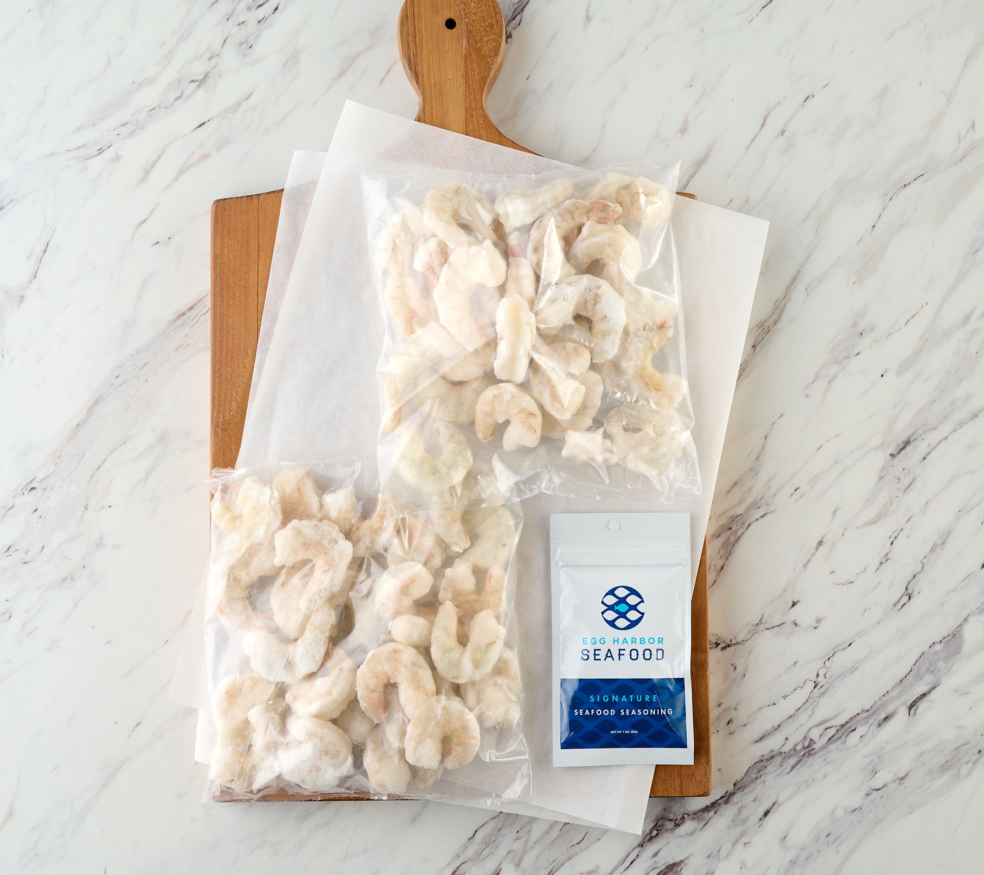 • Each shipment includes two 1-lb bags of domestic tail-off peeled and deveined jumbo shrimp and packet of signature seafood seasoning; shipments arrive approximately every 60 days for one year